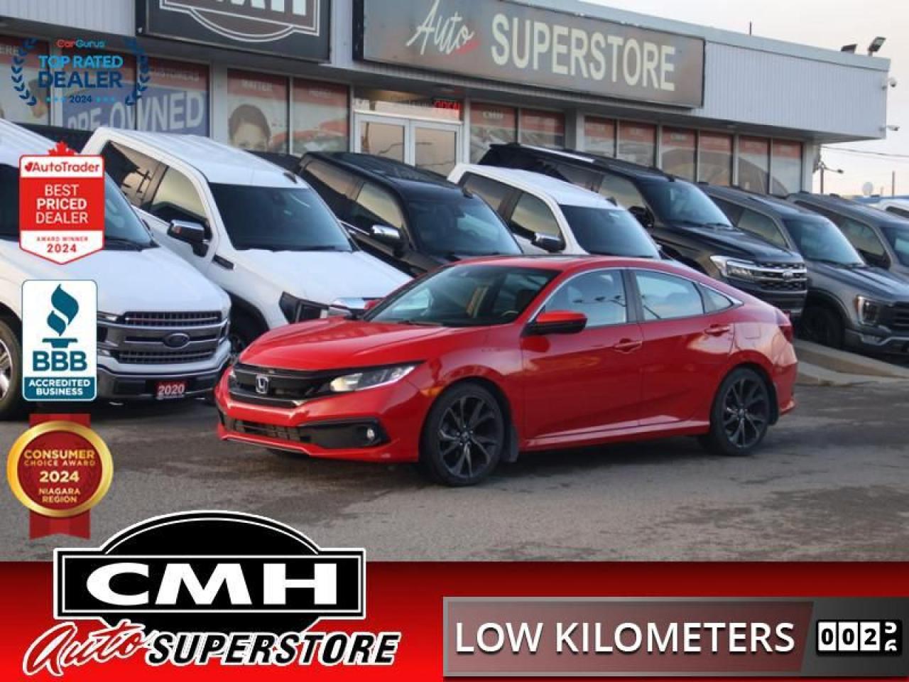 With harmonious power, excellent handling capability, plus it's engaging driving dynamic, this 2019 Honda Civic is a highly compelling choice in the eco-friendly compact car segment. Regardless of your style preference or driving habits, this impressive Honda Civic will perfectly suit your wants and needs. The Civic offers the right amount of cargo space, an aggressive exterior design with sporty and sleek body lines, plus a comfortable and ergonomic interior layout that works well with all family sizes. This Civic easily makes a bold statement without saying a word! This low mileage sedan has just 31,951 kms. It's red in colour and is major accident free based on the CARFAX Report . It has an automatic transmission and is powered by a 158HP 2.0L 4 Cylinder Engine.