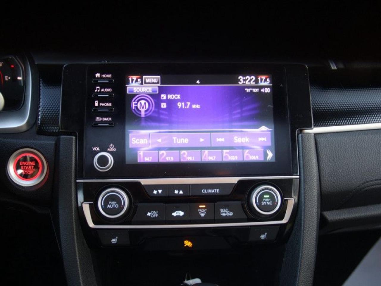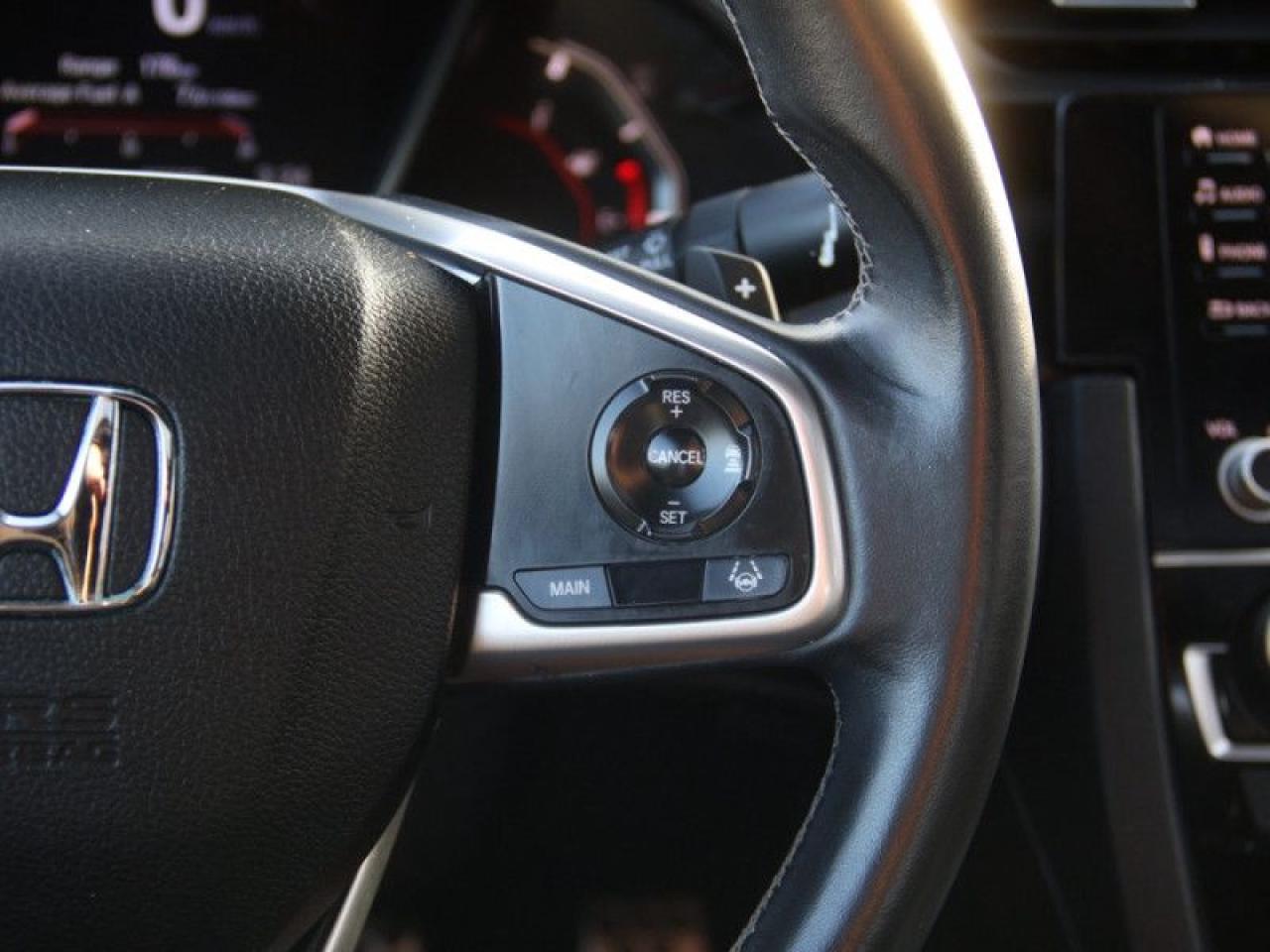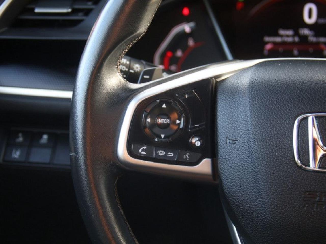 Our Civic Sedan's trim level is Sport CVT. Stepping up to this Sport Civic gets you some great features for luxury and performance with a power moonroof, leather steering wheel, proximity key, aluminum trimmed sport pedals, fog lights, blind spot display, and paddle shifters. Other standard features include collision mitigation with forward collision warning, lane keep assist with road departure mitigation, adaptive cruise control, straight driving assist for slopes, and automatic highbeams. The interior is as comfy and advanced as you need with heated front seats, remote start, Apple CarPlay, Android Auto, Bluetooth, Siri EyesFree, WiFi tethering, steering wheel with cruise and audio controls, multi-angle rearview camera, 7 inch driver information display, and automatic climate control. The exterior has some great style with aluminum wheels, independent suspension, heated power side mirrors, and LED taillamps.