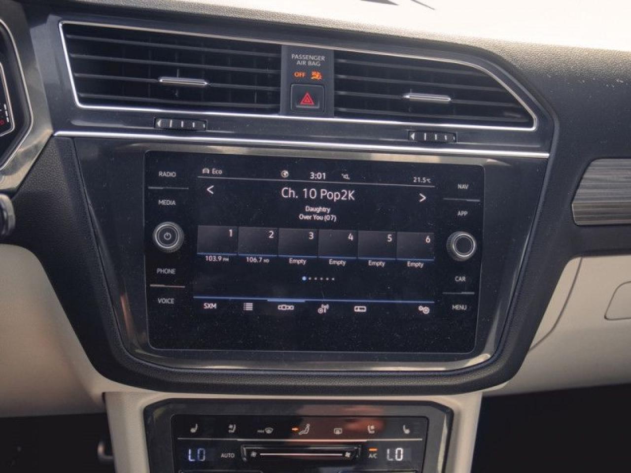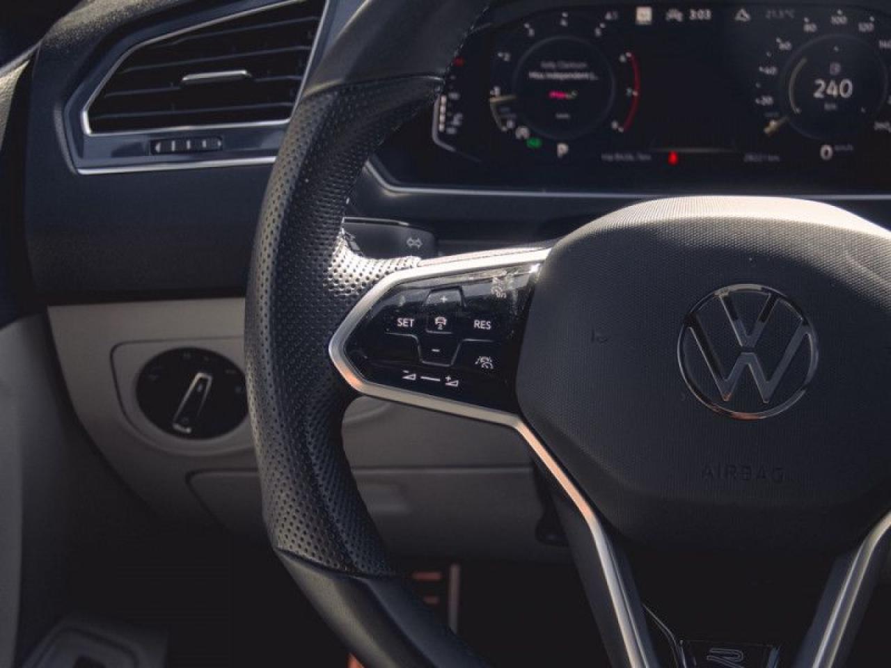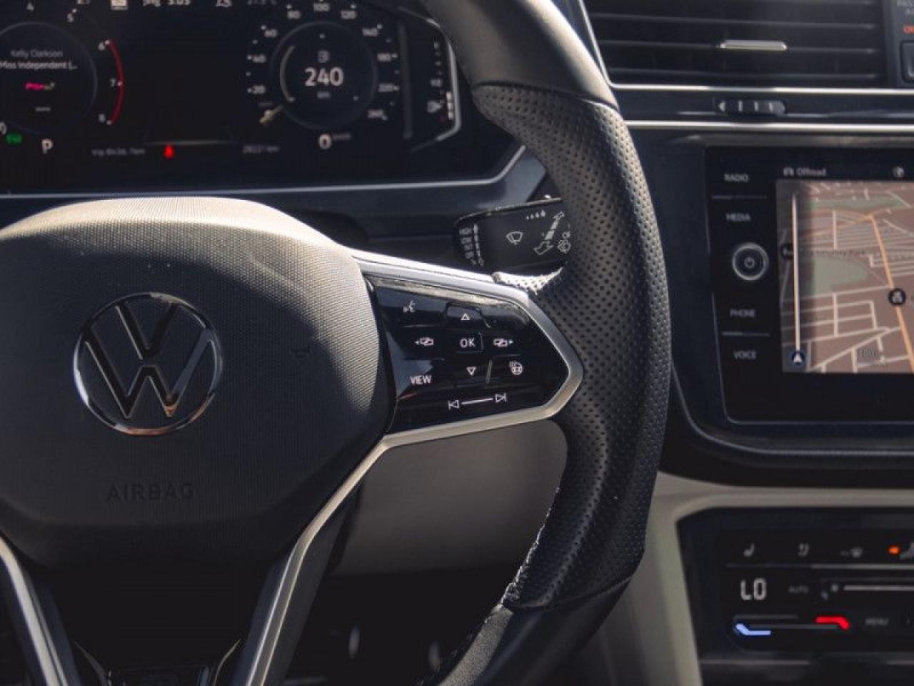Our Tiguan's trim level is Highline R-Line. This range-topping Tiguan Highline R-Line is fully-loaded with ventilated and heated leather-wrapped seats with power adjustment, lumbar support and memory function, a heated leather-wrapped steering wheel, an 8-speaker Fender audio system with a subwoofer, adaptive cruise control, a 360-camera with aerial view, park distance control with automated parking sensors, and remote engine start. Additional features include an express open/close sunroof with tilt and slide functions and a power sunshade, rain detecting wipers with heated jets, a power liftgate, 4G LTE mobile hotspot internet access, and an 8-inch infotainment screen with satellite navigation, wireless Apple CarPlay and Android Auto, and SiriusXM streaming radio. Safety features also include blind spot detection, lane keep assist, lane departure warning, VW Car-Net Safe & Secure, forward and rear collision mitigation, and autonomous emergency braking. This vehicle has been upgraded with the following features: Premium Audio, Cooled Seats, Navigation, 360 Camera, Sunroof, Power Liftgate, Wireless Charging.