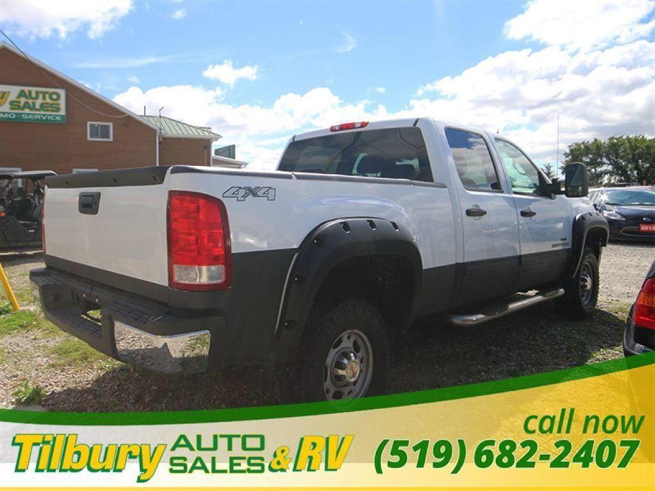 <p><span style=font-size: medium;>2007 GMC Sierra 2500 Crew Cab HD 4x4 Diesel V-8 6.6L engine with plenty of tow and haul power, four-wheel-drive automatic with traction control ,finished in bright white this one comes very well-equipped including air, cruise, tilt, power windows, power locks, power side extended trailer mirrors with LED signal lights, map pocket doors , delay wipers, power outlet, cup holders. Contact Tilbury Auto Sales at 519-682-2407 or visit our lot today at 20600 HWY #42, TILBURY, ONTARIO. N0P 2L0. </span><br /><br /><span style=font-size: medium;>Interior features such as grey cloth 40 20 40 interior bench seat with fold down arm rest reclining seats ,full size rear bench seat witch folds up for extra storage space and stereo AM/FM CD with an auxiliary port along with the keyless entry with panic button and anti-theft system and Onstar system, auto dimming rear view with compass-temp this one does come complete with some extra exterior features like side step bars, fog lights, front tow hooks, boxliner, trailer tow package ,window vent covers, step bumper, locking tailgate, bolt on fender flares. This is a great all-around vehicle whether youre just driving down the road or seeking an off-road adventure or just having to put it to work this one has the pulling and hauling capabilities this is the truck for you with its added accessories see it today. </span><br /><br /><span style=font-size: medium;><strong><span style=font-family: Verdana, sans-serif; background-image: initial; background-position: initial; background-size: initial; background-repeat: initial; background-attachment: initial; background-origin: initial; background-clip: initial;>Call us at 519-682-2407 or visit our lot at 20600 HWY #42, Tilbury, Ontario. Canada.</span></strong></span></p>