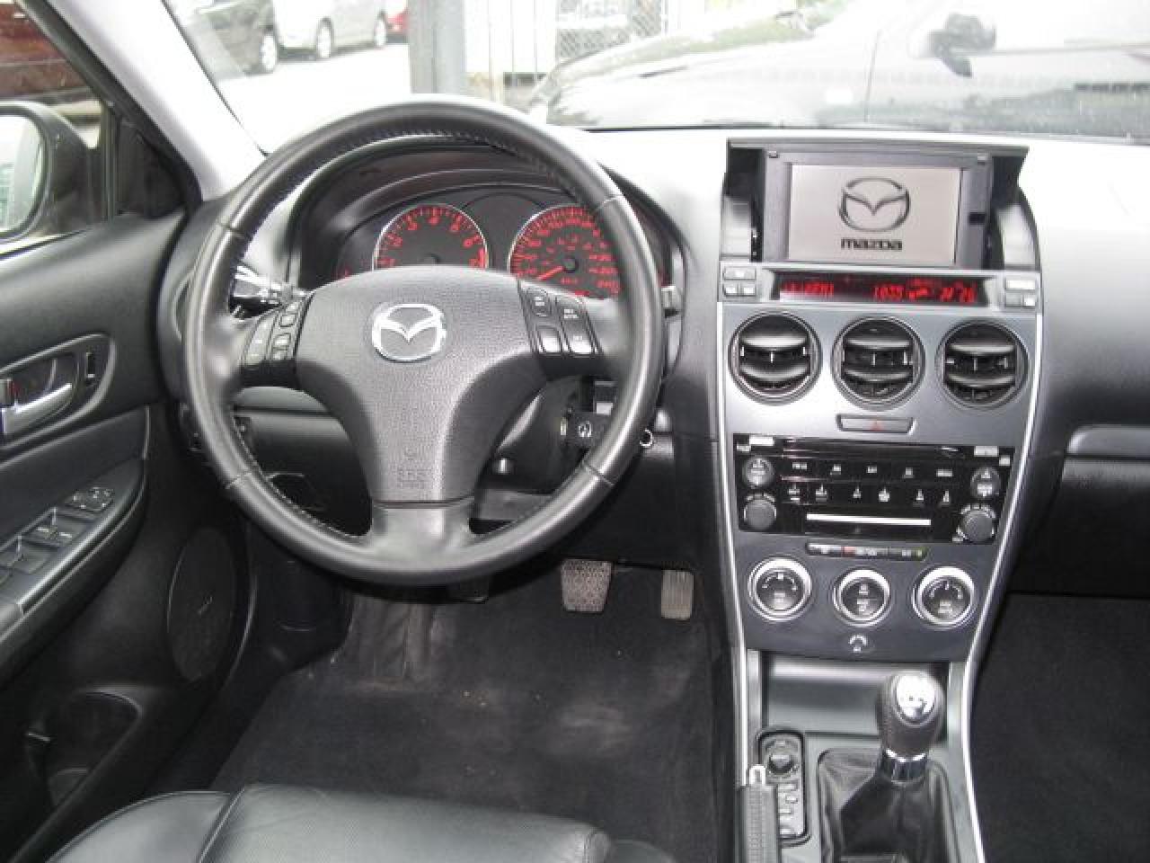 Carproof Clean, 1 owner from Mazda Canada, 5 speed manuel, 3.0L 6cyl., air cond., air bags, ABS, tilt, cruise, AM/FM CD. Fully loaded, p/sunroof, p/heated seats, factory navigation, traction control, keyless entry, r/spoiler and 18"alum rims. Only 69,000 kms. $15,995 or $4000 down $295/mth tax-included. Balance of factory warranty. Mint cond. Sale priced. Grey ext on black leather interior. Call today. Price does not include certification or e-test. (cert & e-test are available for $495 extra)