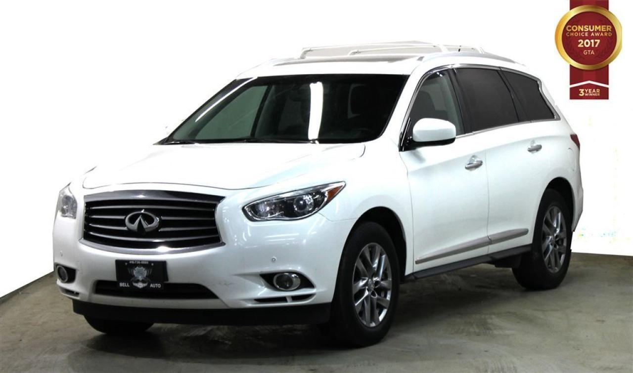 You're going to love the 2013 INFINITI JX35! Offering crisply executed design, generous interior space and a fully capable powertrain! This vehicle has achieved Certified Pre-Owned status, by passing INFINITI's comprehensive certification process. INFINITI prioritized practicality, efficiency, and style by including: a trailer hitch, rear wipers, and the power moon roof opens up the cabin to the natural environment. Under the hood you'll find a 6 cylinder engine with more than 250 horsepower, and all wheel drive keeps this model firmly attached to the road surface. Our knowledgeable sales staff is available to answer any questions that you might have. They'll work with you to find the right vehicle at a price you can afford. Please don't hesitate to give us a call. All vehicle's can be Safety Standards Certificate for an additional $399, if no Safety Standards Certificate then as per OMVIC Regulations the vehicle is deemed to be not drivable, no Safety Standards Certificate