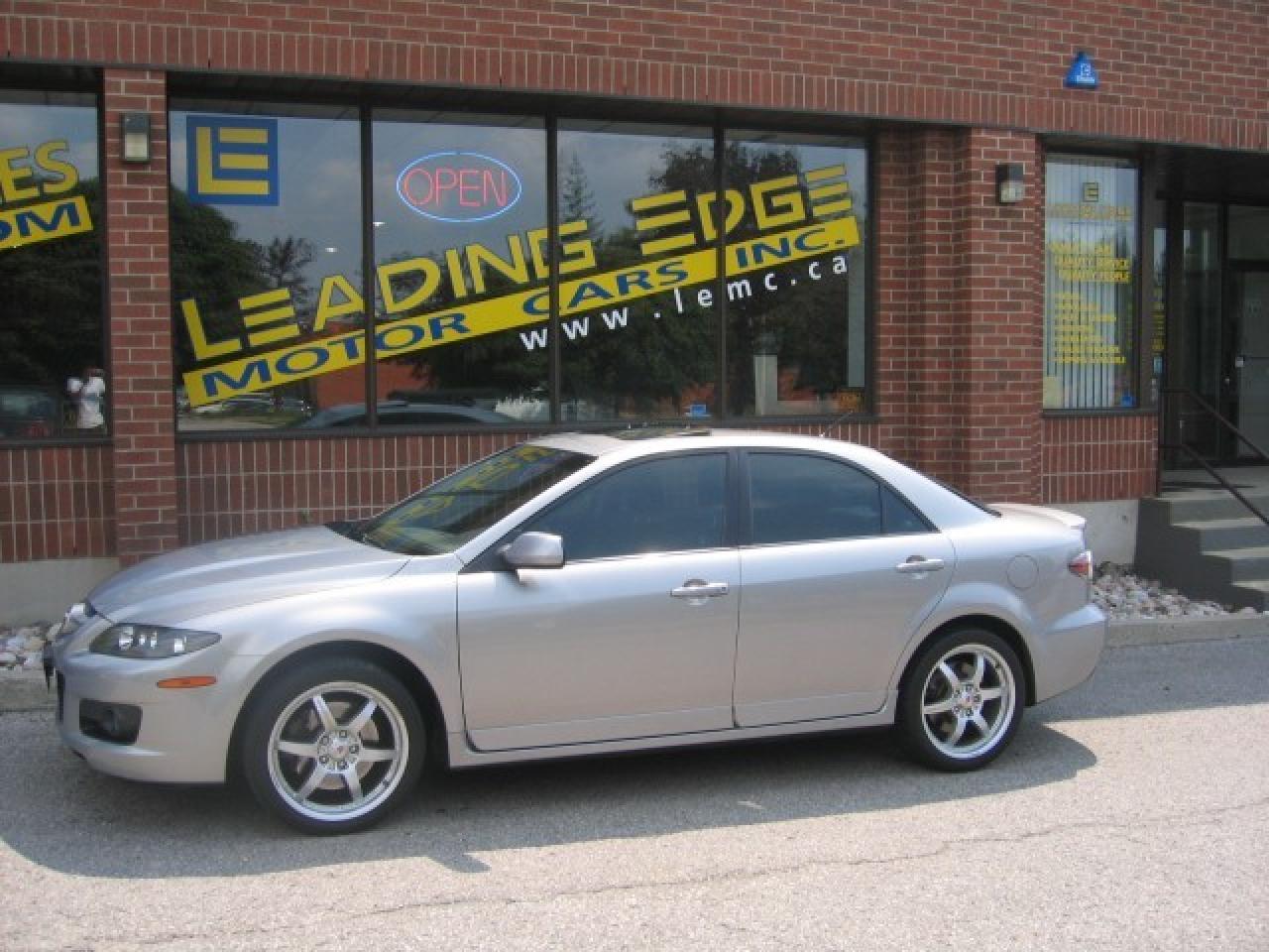 NEW ARRIVAL! THIS GREY ON BLACK BEAUTY LOOKS, RUNS, AND DRIVES ABSOLUTELY PERFECT!! MAZDASPEED6 EQUIPPED WITH ALL POWER OPTIONS, SUNROOF, HEATED LEATHER,18" MOMO CORSE RIMS, 274HORSEPOWER TURBO CHARGED ENGINE AND MORE!!! A MUST SEE AND WONT LAST!!! VISIT LEADING EDGE FOR ALL YOUR VEHICLE NEEDS TODAY.OUR VEHICLES ARE TRADE-INS AT LOCAL NEW CAR DEALERS. EACH ONE IS HAND PICKED AND APPROVED BY THE LEADING EDGE SALES TEAM. FULL HISTORY IS AVAILABLE FOR ALL OUR VEHICLES. YOUR SATISFACTION IS GUARANTEED!!! PLEASE FIND OUT MORE ABOUT US AT WWW.LEMC.CA.
