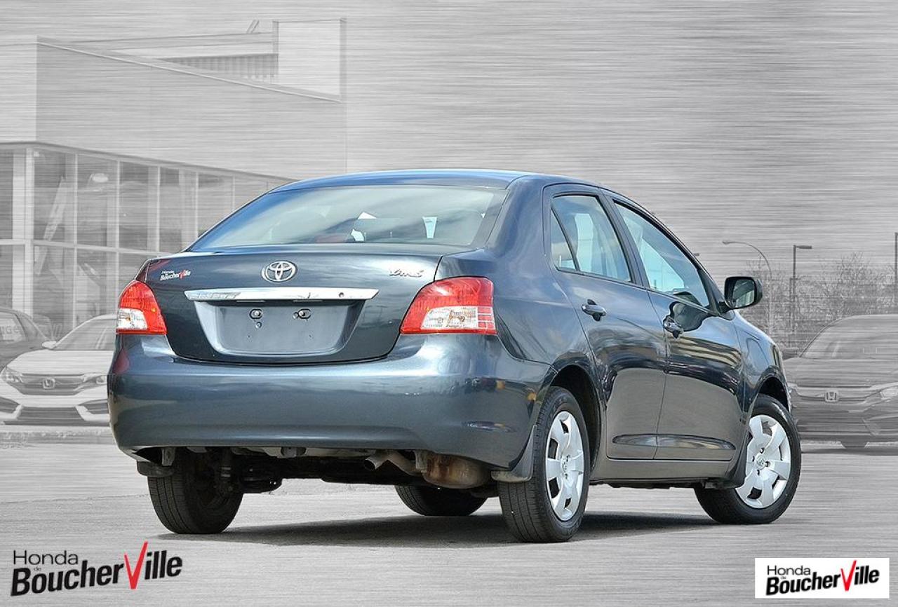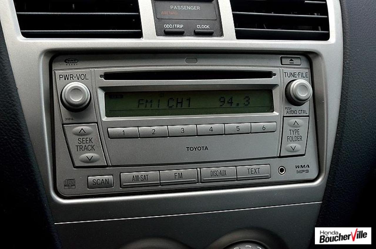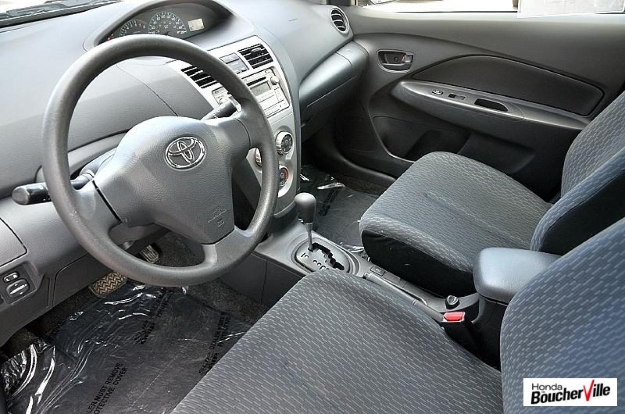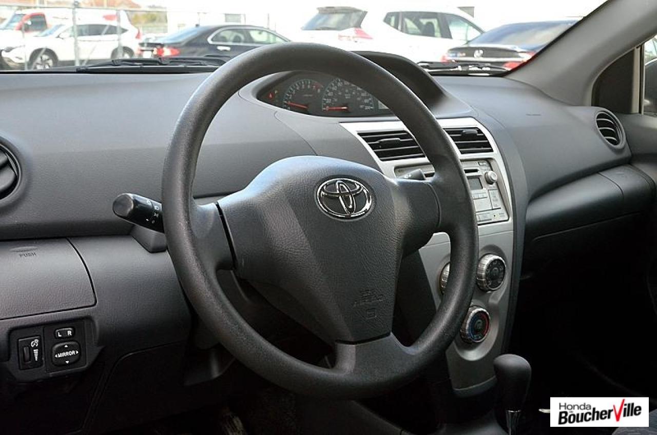 Toyota Yaris Sedan Base 2012\n\nEssuie-glaces intermittents, Anti-démarreur, Freins ABS, Contrôle de stabilité, Coussin gonflable conducteur, Lecteur CD, Lecteur MP3, Portes électriques, Tachymètre, Vitres électriques, Air climatisé, Volant ajustable, Tapis protecteurs, Tout équipé, Radio AM/FM, Direction assistée, Antipatinage, Coussins gonflables, Enjoliveurs de roues, Verrous de sécurité pour enfants, Dégivreur de lunette arrière, Miroirs ajustables de l'intérieur, Sièges baquets, Technologie Bluetooth intégrée\n\n