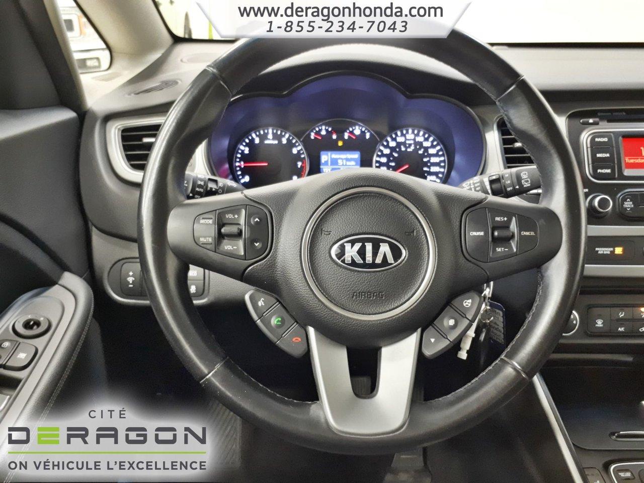 Kia Rondo EX-DEMARREUR A DISTANCE-AIR CLIMATIS?-SIEGE CHAUFF EX-DEMARREUR A DISTANCE-AIR CLIMATIS?-BLUETOOTH-SI?GE CHAUFFANTS 2014Régulateur de vitesse, Essuie-glaces intermittents, Essuie-glace arrière, Anti-démarreur, Freins ABS, Contrôle de stabilité, Coussin gonflable conducteur, Coussins gonflables latéraux, Démarreur à distance, Lecteur CD, Lecteur MP3, Portes électriques, Tachymètre, Vitres électriques, Air climatisé, Commandes audio au volant, Sièges arrières rabattables, Sièges chauffants, Volant ajustable, Tapis protecteurs, Phares haute intensité, Ordinateur de bord, Radio AM/FM, Phares automatiques, Rétroviseur électrique, Direction assistée, Télédéverrouillage, Rétroviseurs chauffants, Coussins gonflables arrière pour la tête, Sièges tissu, Freins à disque, Sièges chauffants - Avant, Rétroviseurs électriques, Jantes en alliage, Antipatinage, Phares antibrouillards, Verrous de sécurité pour enfants, Sièges baquets, Prise Auxiliaire, Technologie Bluetooth intégrée, Climatisation