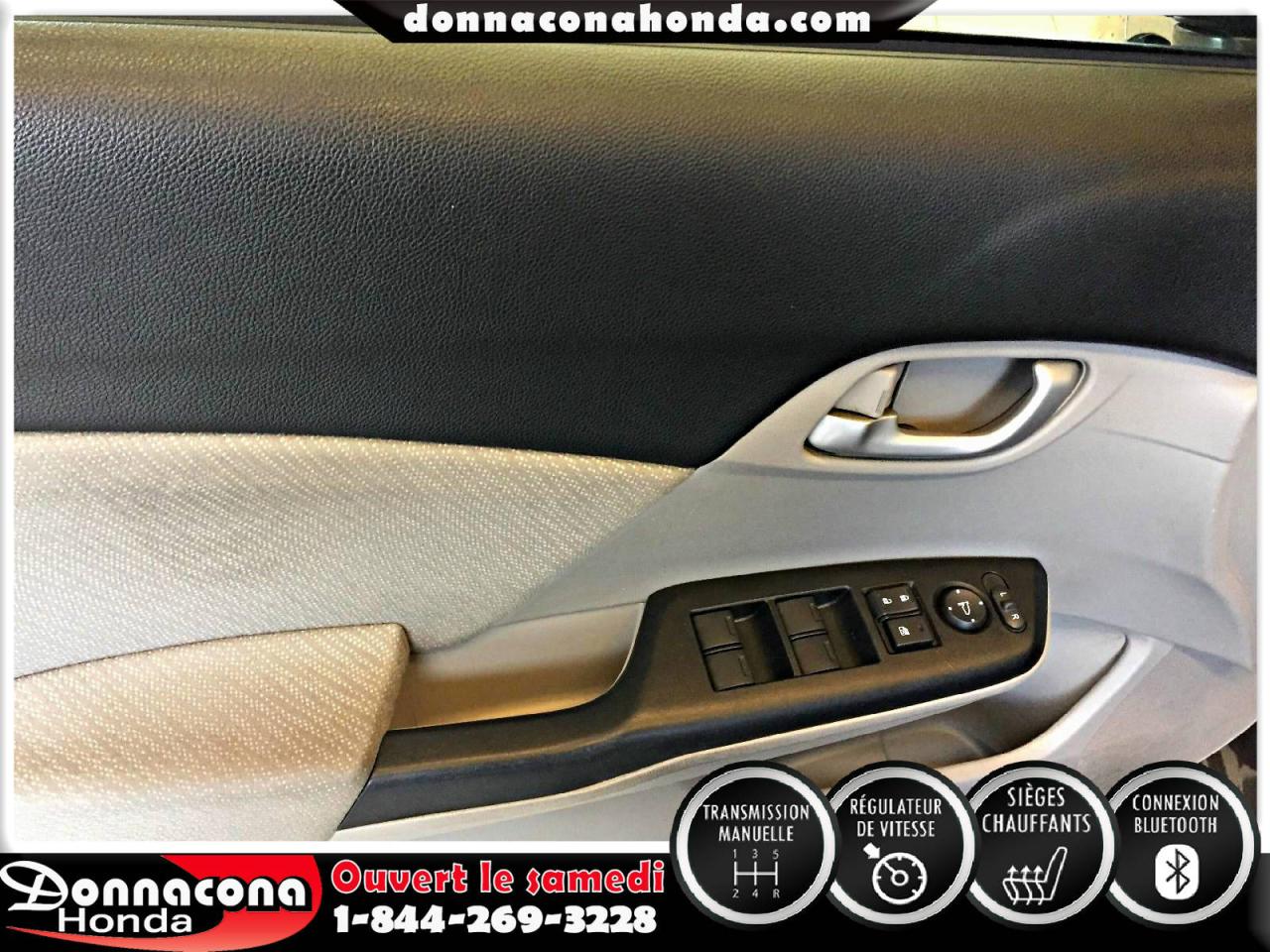 DONNACONA HONDA, HONDA CIVIC LX 2013, TRANSMISSION MANUELLE, RÉGULATEUR DE VITESSE, CONNEXION BLUETHOOT, AIR CLIMATISÉ, SIÈGES CHAUFFANTS, VITRES TEINTÉES, ENJOLIVEURS DE ROUES ET BIEN PLUS ENCORE.