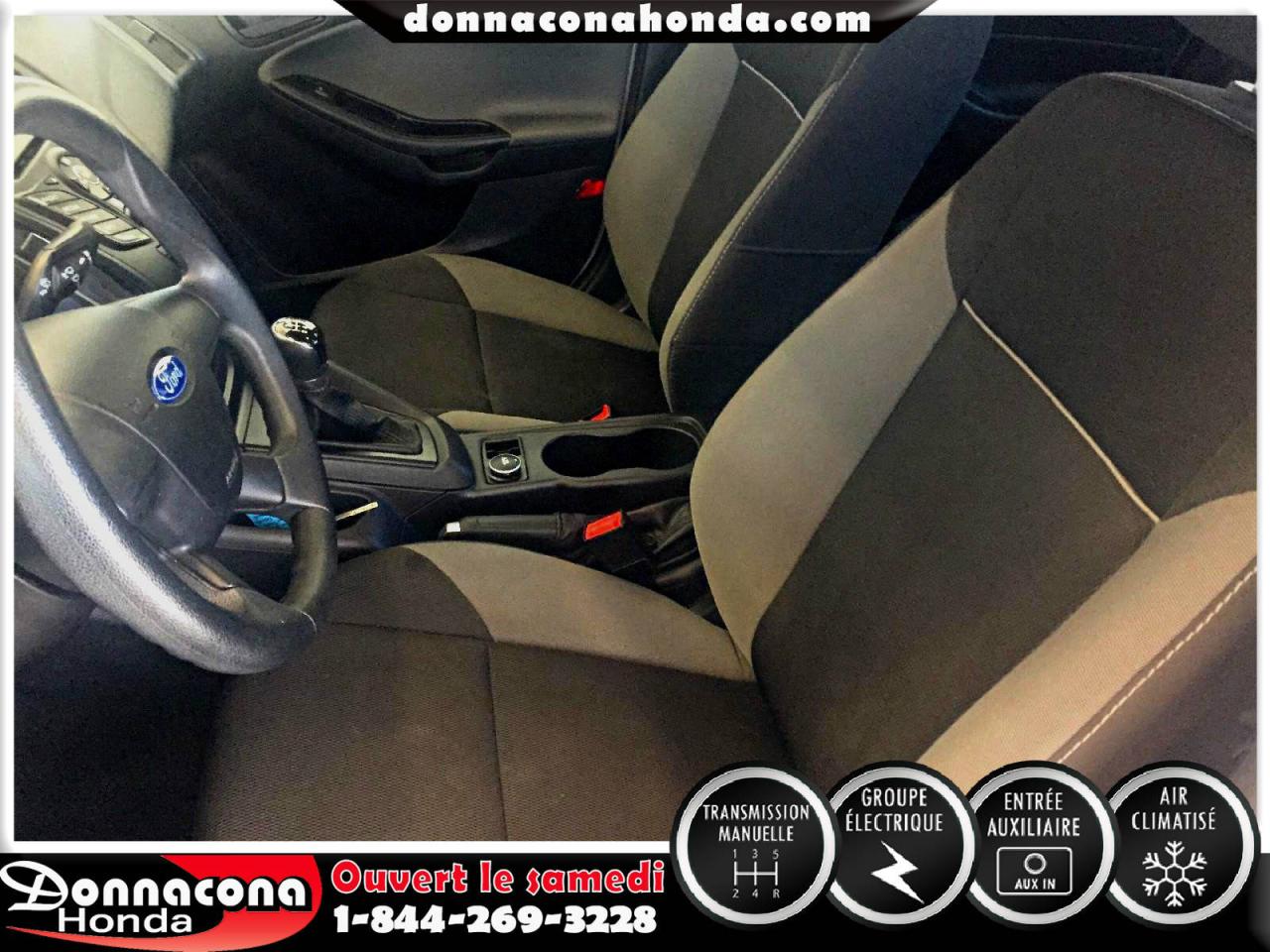 DONNACONA HONDA, FORD FOCUS S 2014, TRANSMISSION MANUELLE, GROUPE ÉLECTRIQUE, TÉLÉDÉVÉREOUILLAGE, ENJOLIVEURS DE ROUES, AIR CLIMATISÉ, VITRES TEINTÉ, LECTEUR MP3 ET BIEN PLUS ENCORE.