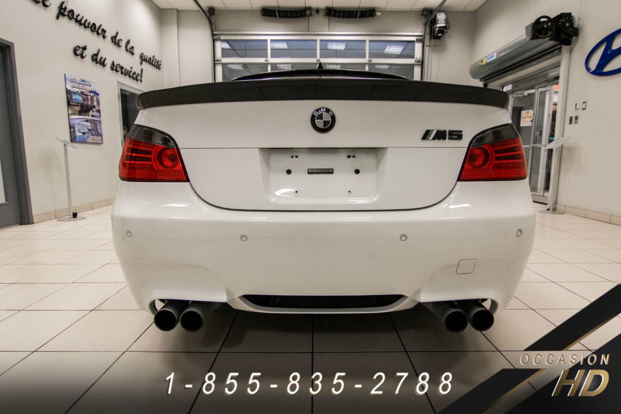 BMW M5 2006 ~ EXCELLENT CONDITION / V10 5.0L. DÉVELOPPANT 500 CHEVAUX ET ATTEIGNANT LES 100 KM EN 4.5 SECONDES! PEINTURE ALPINE WHITE + CARBONE PACK + NAVIGATION + DVD ** CE MONSTRE VOUS OFFRE UNE PUISSANCE PHÉNOMÉNALE, UNE CONDUITE DES PLUS SPORTIVE, UN HABITACLE RAFFINÉ TOUT ÉQUIPÉ,... IL INCLUT TOIT OUVRANT, JANTES 20 POUCES BREYTON, PARK ASSIST, SIÈGES CHAUFFANTS AV/AR, SIÈGES SPORTS À MULTI-RÉGLAGES ET FONCTION MÉMOIRE ET BIEN PLUS!! A VOIR ABSOLUMENT!!