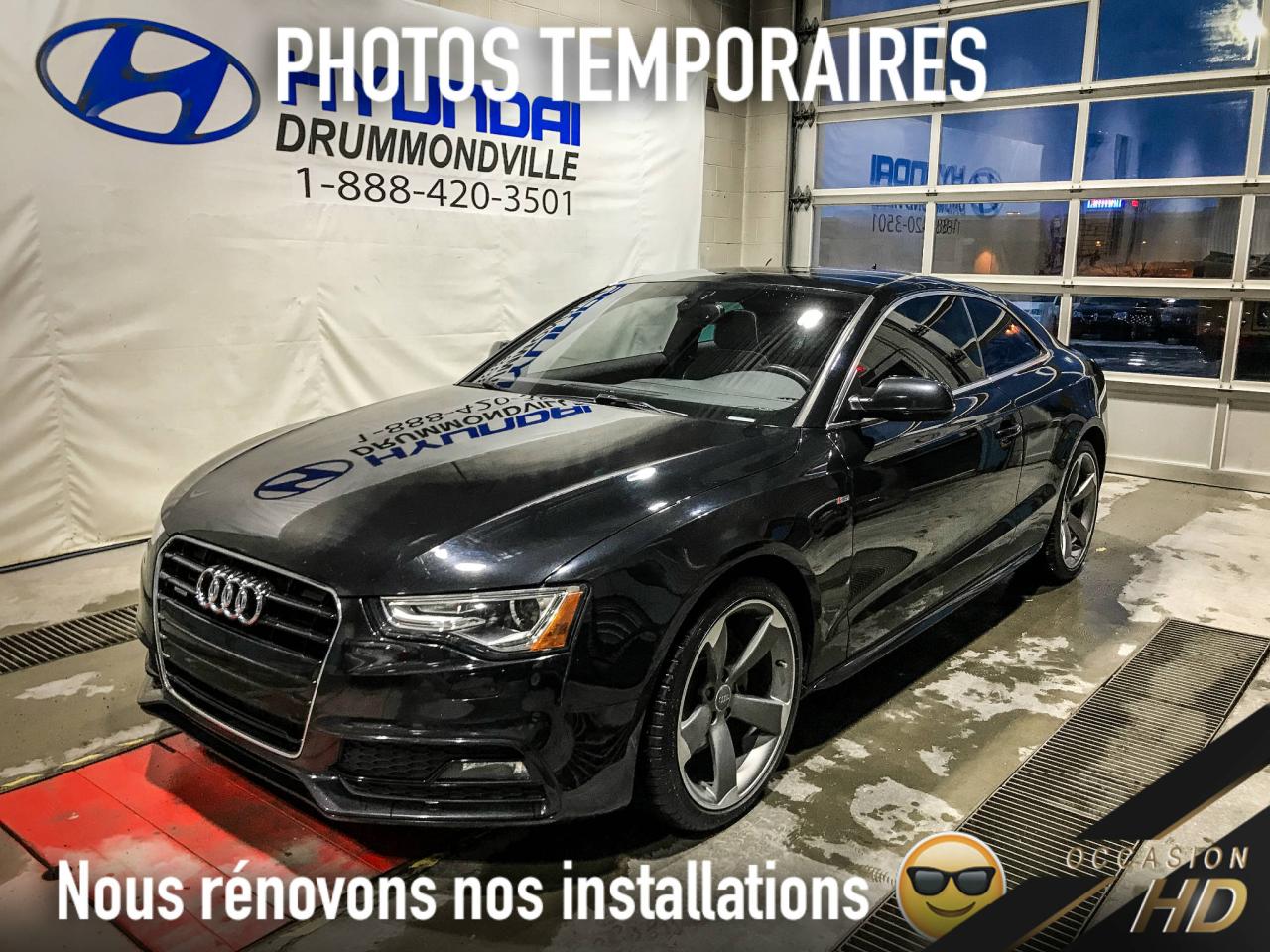 RARE ~ AUDI A5 PROGRESSIV 2014 AUTOMATIQUE ** EXCLUSIVE LINE ** SEULEMENT 40 UNITÉS PRODUITES ** UN PROPRIÉATIRE ** PEINTURE PHANTOM BLACK PEARL, SIÈGES SPORT CHAUFFANTS EN CUIR 2 TON NOIR/ALABASTER WHITE, NAVIGATION, JANTES 19 POUCES TITANIUM, SYSTÈME DE SON BANG&OLUFSEN, AUDI DRIVE SELECT, TOIT PANO ET BIEN PLUS !! CETTE SPORTIVE DE LUXE POSSÈDE UN MOTEUR TURBO DE 2.0 LITRES DÉVELOPPANT 220 CHEVAUX ET 258 LBS DE COUPLE !! ELLE EST ÉQUIPÉ DE LA TRANSMISSION AUTOMATIQUE S-TRONIC AINSI QUE LA TRACTION INTÉGRAL QUATTRO !! ELLE EST RECONNUE POUR SON HABITACLE DE HAUTE QUALITÉ TOUT ÉQUIPÉ, SON DESIGN SPORTIF ET ÉLÉGANT ET CES PERFORMANCES DE CONDUITE SAISISSANTES !! A VOIR ABSOLUMENT !!