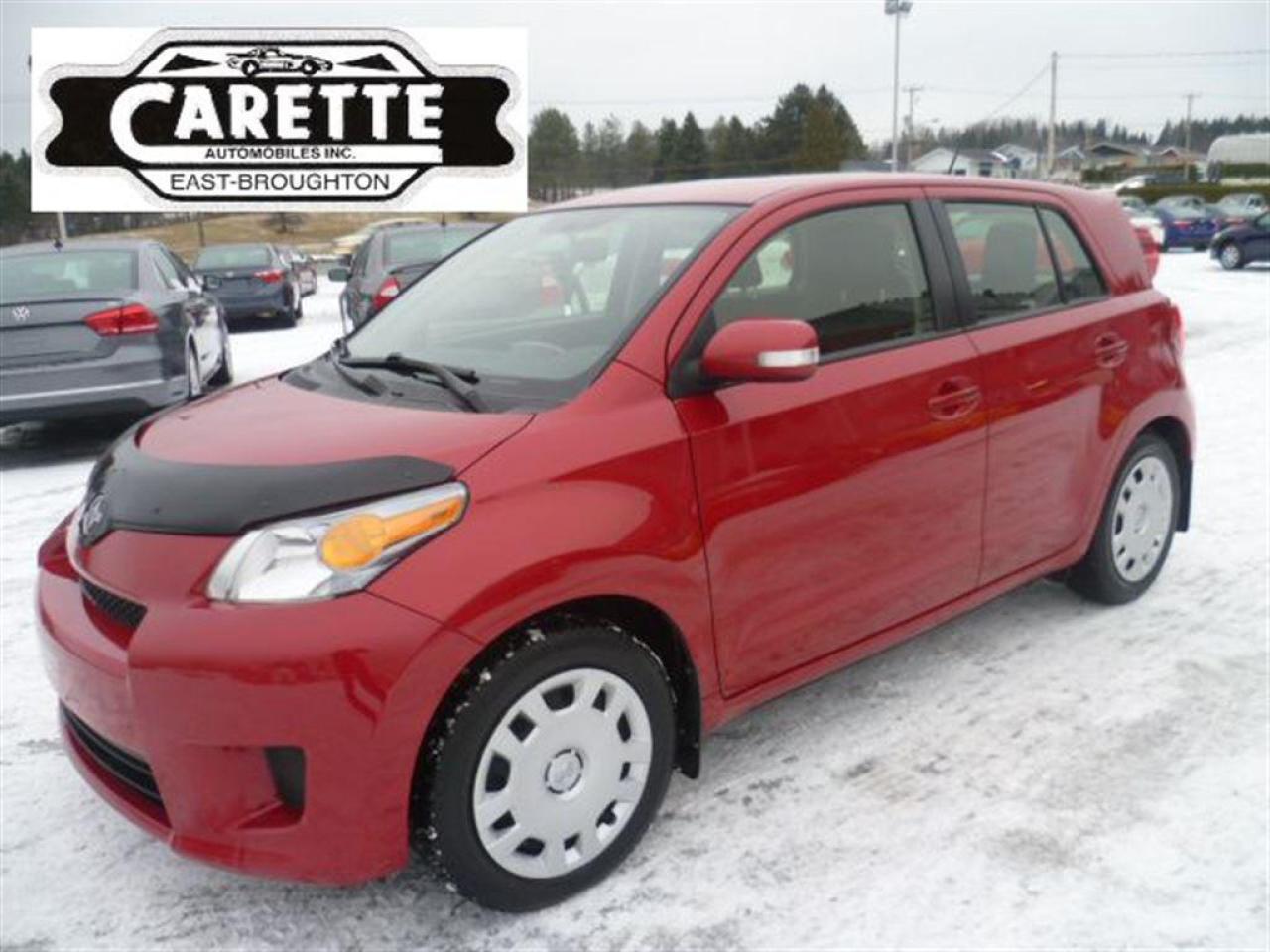 Toyota Scion,Bluetooth,Depuis 27 ans, Carette Automobiles est une entreprise familiale offrant le plus beau choix en Beauce Appalaches avec plus de 150 véhicules en inventaire. Tous vérifiés et garanties à 100%, en grande partie 1 seul propriétaire et jamais accidentés. Un rapport Carproof vous est remis sur demande lors de l'achat. Taux à partir de 4.95%, en plus de la 1er, 2e, 3e et 4e chance au crédit. Venez rencontrer un membre de notre famille pour qui l'honnêteté et le service est une priorité depuis le début. Tout notre inventaire au www.caretteauto.com