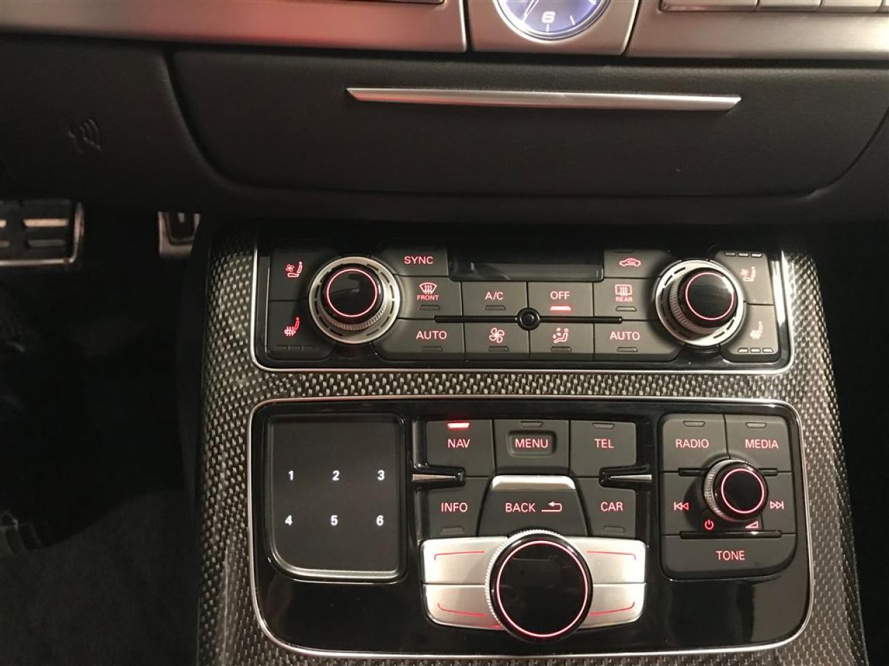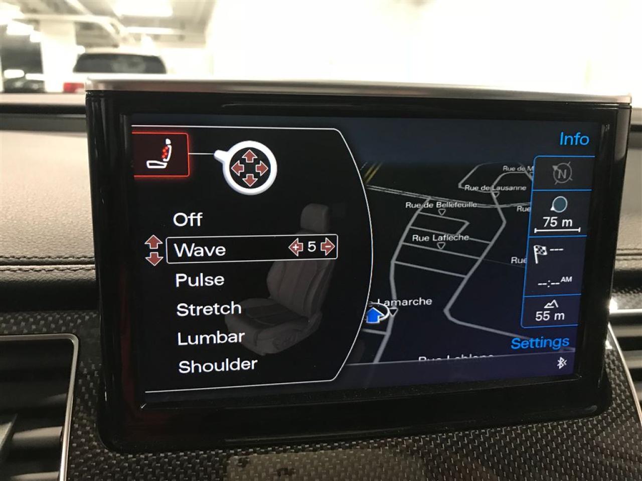 4.0T TWIN TURBO 520HP 0-100 4.0s 21 5-arm 'Structure' alloy wheels LED daytime running lights LED headlights Highbeam assistant Headlight washers Integrated all-weather light function LED tail lights Glass sunroof Power trunk open/close Movement activated trunk open Power assisted doors closing Electrically foldable auto dimming heated exterior mirrors Integrated LED mirror turn signals 4-zone automatic climate control 3-spoke mu-fu heated leather steering wheel w/paddles Valcona leather seat surfaces 18-way power front seats Electric tilt & telescopic steering wheel adjustment 4-way power lumbar support for fr seats Front seats memory Heated front and rear seats Ventilated front seats Massage function for front seats Load-through provision Auto-dimming interior mirror w/compass Audi MMI® Navigation plus Electric sunshade for rear and rear side windows Bose® sound system with 14 speakers SIRIUS® satellite radio Audi MMI® Touch with hand-writing recognition Bluetooth® interface Audi music interface (AMI) Colour driver information system display Homelink Rain & light sensor Advanced key with start button Front & rear parking system Top view camera Cruise control Audi pre-sense rear Audi side assist Audi drive select UPGRADES: Audi head-up display Audi active lane assist Audi pre-sense plus Adaptive cruise control with stop & go function ACURA GATINEAU VOTRE REFERENCE EN MATIERE DE VEHICULE D'OCCASION DE LUXE GATINEAU ACURA YOUR REFERENCE IN LUXURY USED VEHICLES
