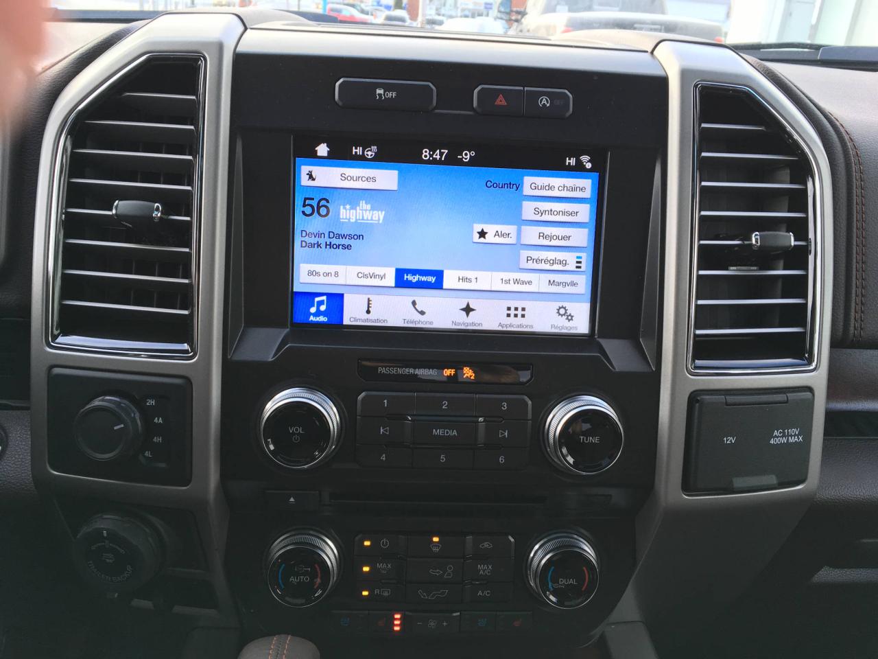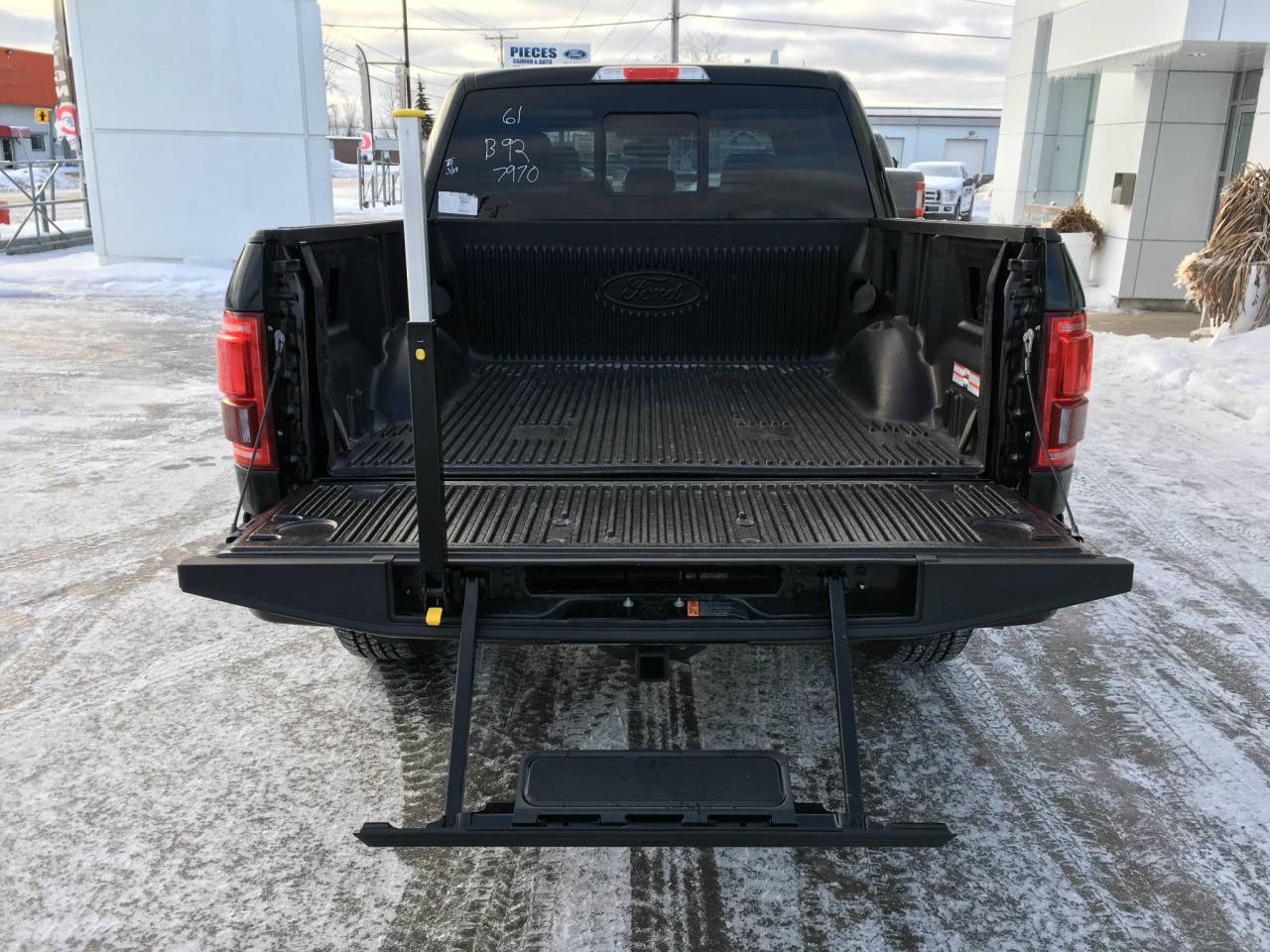 Air climatisé, vitres électriques, portes électriques, caméra de recul, sonar de recul,démarreur a distance, sync3, sync connect, ensemble de remorquage, marche-pieds, marche-pieds hayon, régulateur de vitesse, sièges chauffant et climatisé, sièges arrière chauffant, intérieur en cuir, trailler brake controle, système de navigation, système d'info sur les angles mort, marche-pieds électriques, toit ouvrant panoramique, sièges électriques, bed liner