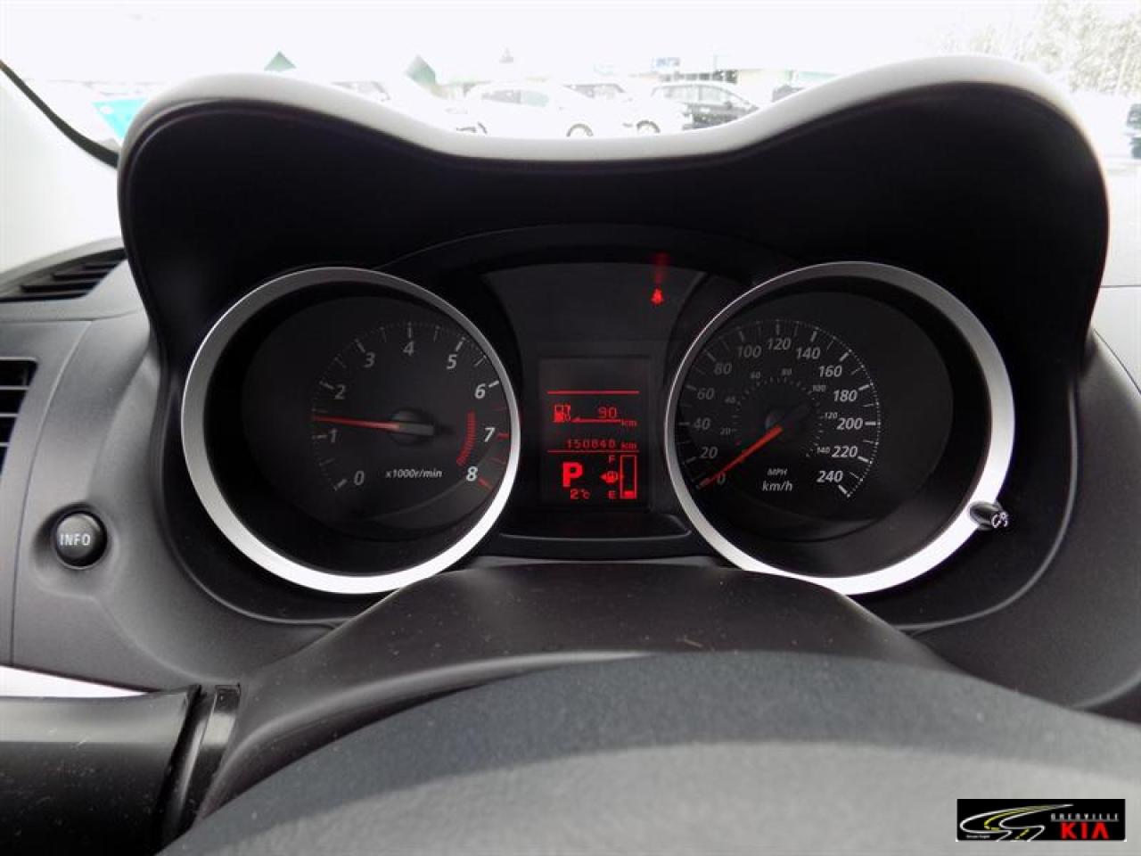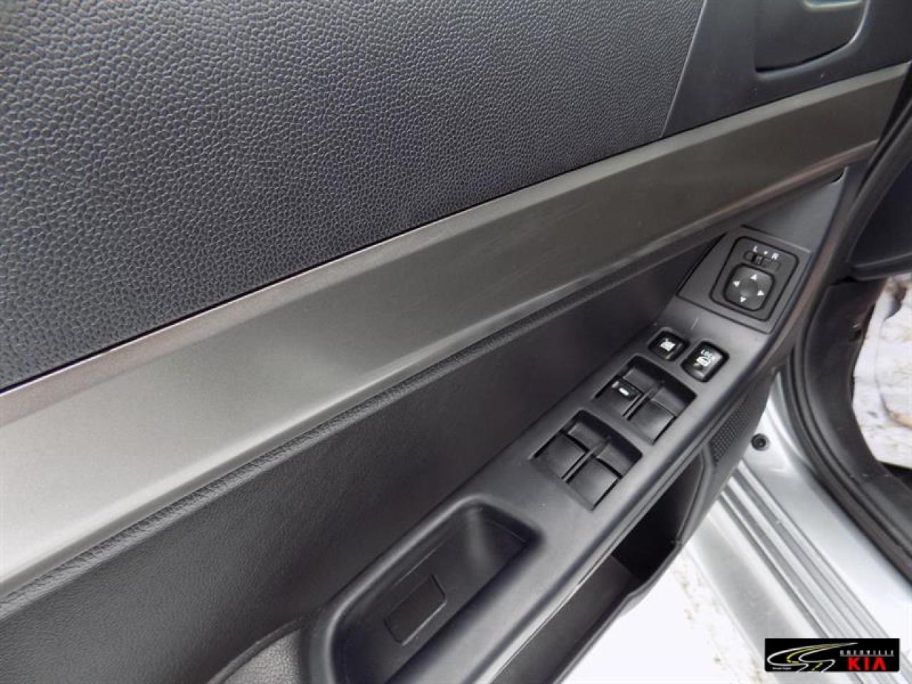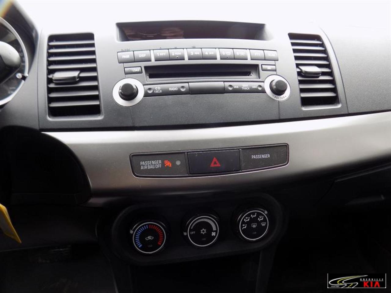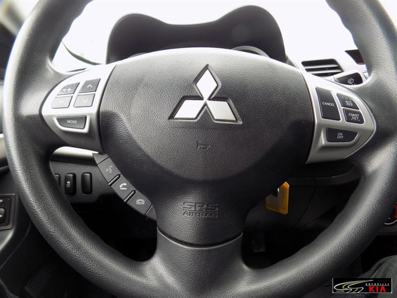 Mitsubishi Lancer SE 2012\n\nRégulateur de vitesse, Servo-direction, Essuie-glaces intermittents, Freins ABS, Contrôle de stabilité, Serrure à sécurité pour enfants, Lecteur CD, Lecteur MP3, Miroirs chauffants, Miroirs électriques, Portes électriques, Sièges électriques, Vitres électriques, Air climatisé, Commandes audio au volant, Lampes de lecture arrière, Sièges chauffants, Volant ajustable, Ordinateur de bord, Radio AM/FM, Phares automatiques, Télédéverrouillage, Système d'alarme, Coussins gonflables arrière pour la tête, Coussins gonflables latéraux pour la tête, Sièges tissu, Antivol, Antipatinage, Sièges baquets\n\n