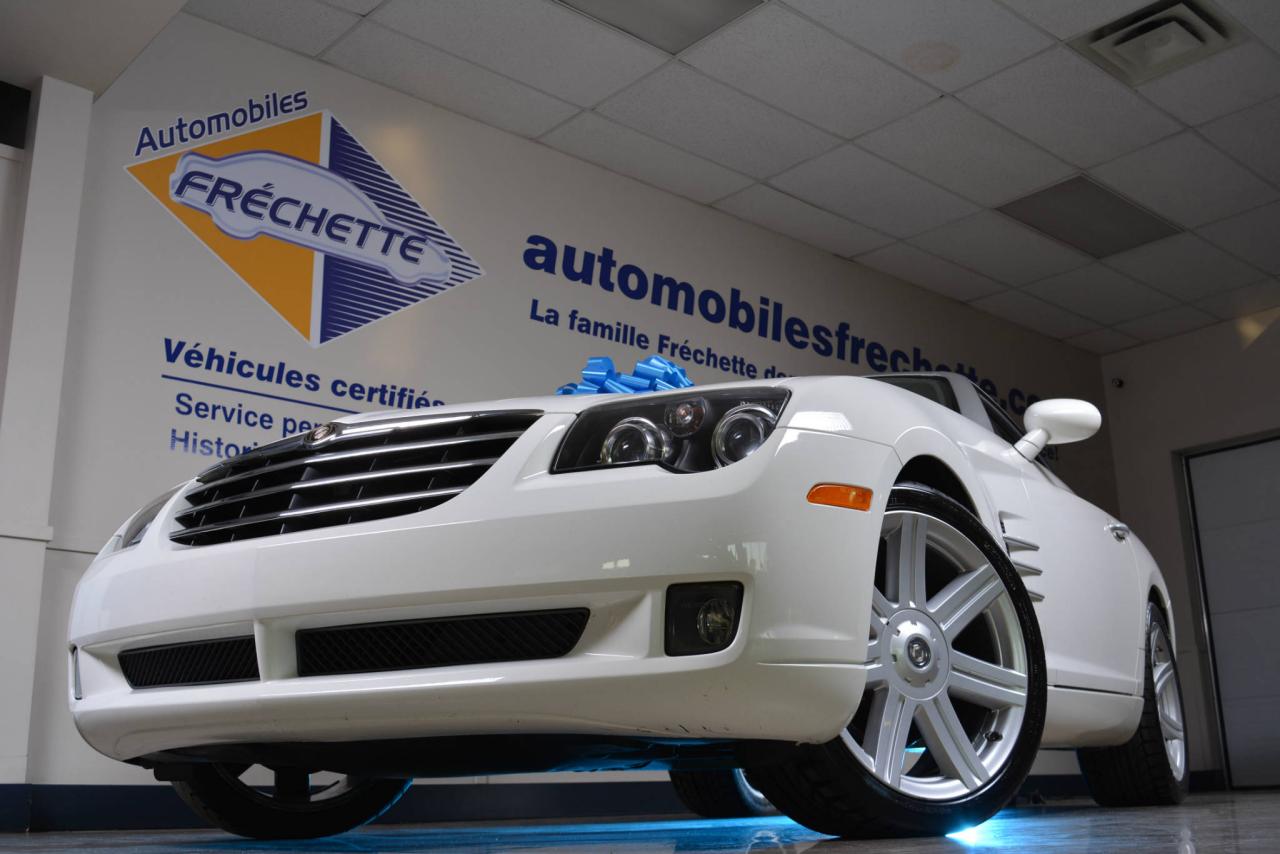 * Inspection complète et esthétique inclus * Crossfire Limited coupé 2 portes * 2 places * Transmission manuelle 6 vitesses * Propulsion arrière * Moteur V6 3.2L * Roues en alliages 18'' avant et 19'' arrière * #Cuir noir# * Sièges électriques chauffants * Rétroviseurs chauffants * Régulateur de vitesse * Climatisation 2 zones * Lecteur CD * Provient d'un client d'Automobiles Fréchette