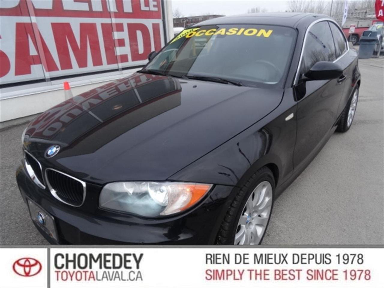 40 ANS D'EXCELLENCE DANS LE SERVICE À LA CLIENTÈLE, LE MEILLEUR RAPPORT QUALITÉ/PRIX ET UNE APPROCHE SANS PRESSION FONT DE CHOMEDEY TOYOTA UNE VALEUR SÛRE POUR L'ACHAT DE VOTRE PROCHAIN VÉHICULE. 2008 BMW 128i. Manuelle, Intérieur en cuir, Toit ouvrant, Jantes en alliage, Phares antibrouillards, Sièges à réglage électrique chauffants, Air climatisé, Régulateur de vitesse, Groupe électrique, Lecteur CD/MP3/AUX/USB, Anti-patinage, Très bien équipé et Propre! Kilométrage vérifié. Garantie supplémentaire disponible. Mécanique et esthétique WOW! Conditions en succursale! Pourquoi acheter toute autre marque quand on peut profiter de la fiabilité de Toyota !!! 40 YEARS OF EXCELLENCE IN CUSTOMER SERVICE, OUR HIGH QUALITY STANDARDS, THE BEST QUALITY/PRICE, AND OUR NO PRESSURE APPROACH, MAKES CHOMEDEY TOYOTA A SURE BET FOR THE PURCHASE OF YOUR NEXT VEHICLE. 2008 BMW 128i. Manual, Leather interior, Sunroof, Alloy wheels, Fog lights, Electric & heated seats, Air conditioning, Cruise Control, PowerGroup, CD/MP3/AUX/USB, Traction control, Very well equipped and Clean! Verified mileage. Additional warranty available. Mechanically and aesthetically WOW! Conditions in store! Why buy any other brand when you can enjoy the incredible reliability of a Toyota !! ***INSPECTION SÉCURITAIRE EN 160 POINTS, INCLUS LE PREMIER PLEIN D'ESSENCE ET LE PROCHAIN CHANGEMENT HUILE À LA LIVRAISON, FINANCEMENT DISPONIBLE SUR APPROBATION BANCAIRE. *** SAFE INSPECTION IN 160 POINTS, INCLUDING THE FIRST FULL FUEL AND THE NEXT CHANGE OIL TO DELIVERY, FINANCING AVAILABLE ON BANK APPROVAL.