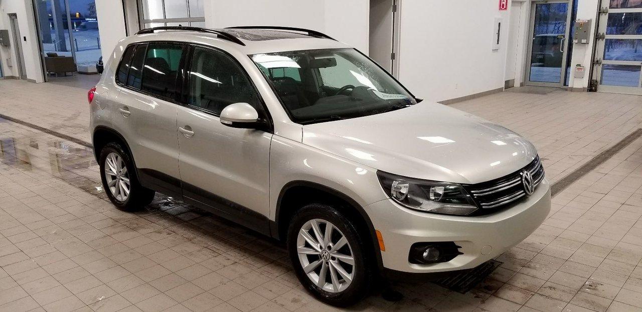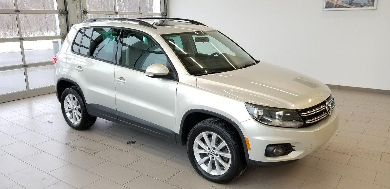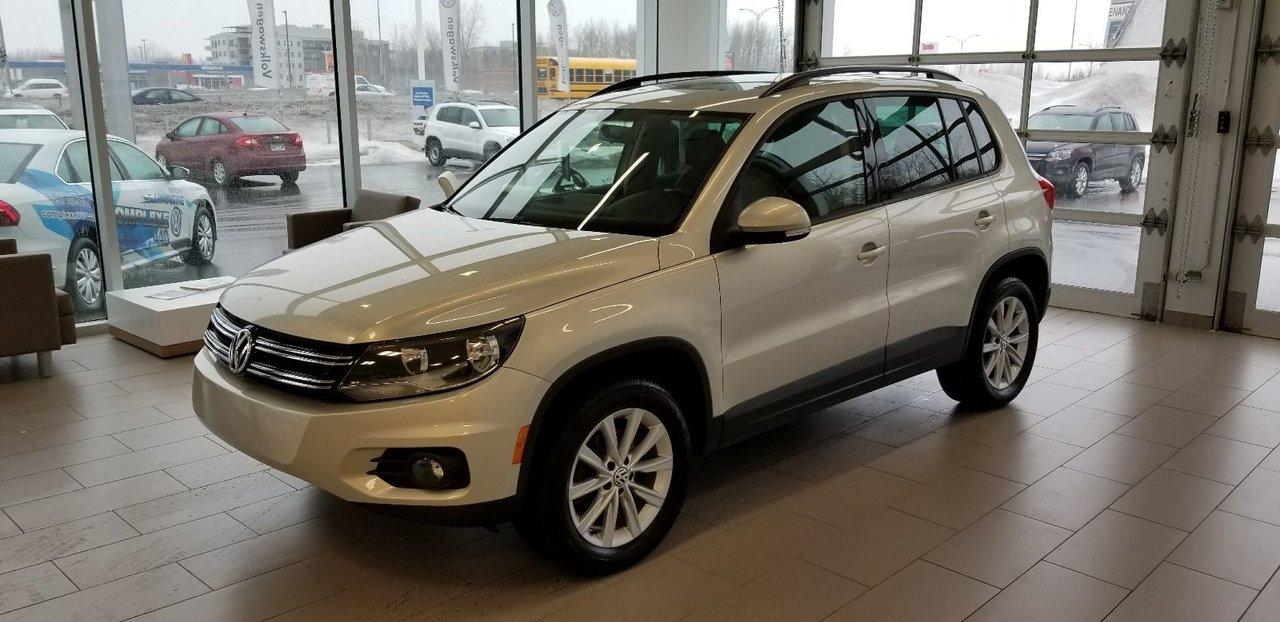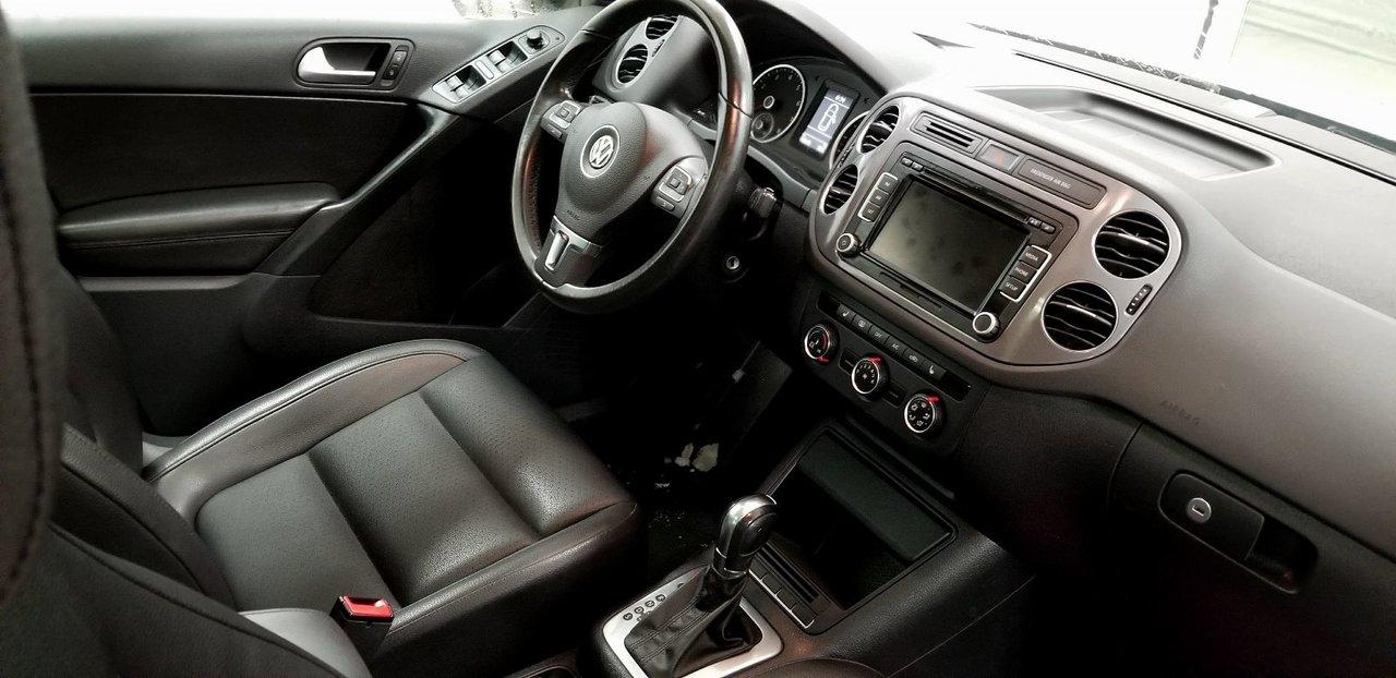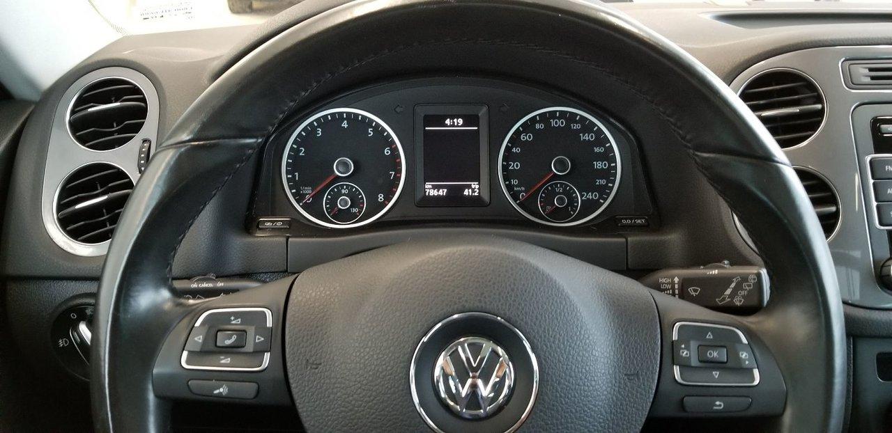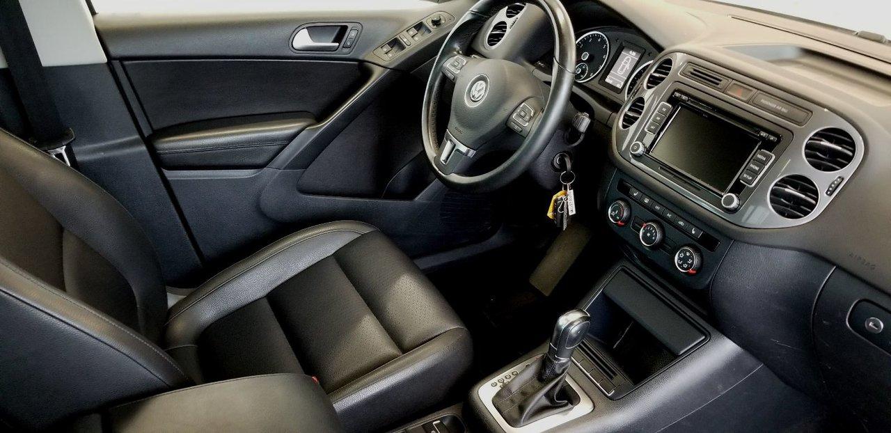 Volkswagen Tiguan Comfortline 4Motion 2013Régulateur de vitesse, Toit ouvrant, Essuie-glaces intermittents, Essuie-glace arrière, Anti-démarreur, Freins ABS, Contrôle de stabilité, Coussin gonflable conducteur, Coussins gonflables latéraux, Lecteur CD, Chargeur de CD, Lecteur MP3, 6 Haut-parleurs, Portes électriques, Tachymètre, Vitres électriques, Air climatisé, Commandes audio au volant, Sièges arrières rabattables, Sièges chauffants, Volant ajustable, Moonroof, Moulures protectrices latérales, Tapis protecteurs, Vitres teintées, Ordinateur de bord, Radio AM/FM, Volant gainé de cuir, Rétroviseur électrique, Direction assistée, Télédéverrouillage, Rétroviseurs chauffants, Banquette arrière divisé, Siège à réglage électrique, Système d\'alarme, Coussins gonflables arrière pour la tête, Freins à disque, Sièges chauffants - Avant, Rétroviseurs électriques, Jantes en alliage, Antipatinage, Phares antibrouillards, Verrous de sécurité pour enfants, Système de surveillance de la pression des pneus, Prise Auxiliaire, Technologie Bluetooth intégrée, Aluminium, Climatisation