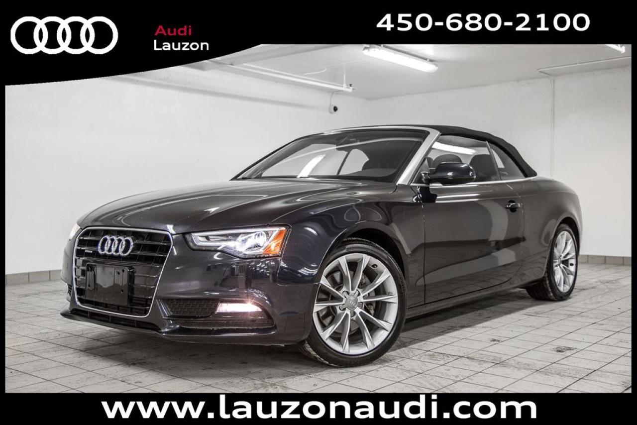 AIDE AU STATIONNEMENT AVEC CAMÉRA DE RECULE- ENSEMBLE SIÈGES COMFORT, SIEGE VENTILE ***MAINTENANT OUVERT LE SAMEDI*** Avec plus de 100 voitures, VUS, 4x4 et camions inspectés et certifiés en inventaire, Audi Lauzon Certifié vous offre le plus grand choix de véhicule d'occasion Audi sur la Rive-Nord et dans les Laurentides. Nous sommes situés Laval, à seulement 10 minutes de Montréal. Tous nos véhicules d'occasions sont minutieusement inspectés et réparés avec soin par nos techniciens certifiés et un rapport CarProof vous est remis sur demande lors de l'achat. *** FINANCEMENT À PARTIR DE 0.9% ***. *** LE MEILLEUR PRIX POUR VOTRE ÉCHANGE *** Notre équipe professionnelle et certifiée saura vous offrir une expérience d'achat personnalisée pour l'achat de votre prochain véhicule d'occasion. Contactez-nous aussi afin de vous informer sur nos promotions en cours. 29-11-2017/80000km,PROLONGATION DE GARANTIE *AUDI CERTIFIÉ* DE 2 ANS ET POSSIBILITÉ DE 160000KM ET FINANCEMENT A PARTIR DE 0.9% DISPONIBLE