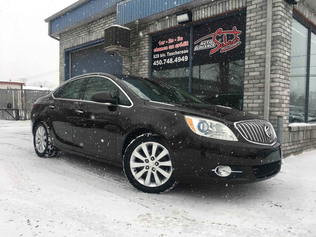 2012 BUICK VERANO COMFORT CUIR TOIT OUVRANT DEMARREUR A DISTANCE EN EXCELLENTE CONDITION MECANIQUE ET ESTHETIQUE!!!! MOKA/BEIGE, 2 SET DE ROUES, FREINS NEUF AUX QUATRES ROUES DISQUES ET PLAQUETTES, 189000KM, JANTES ALUMINIUM, INTERIEUR CUIR, SIEGE ELECTRIQUE, DEMARREUR A DISTANCE, TRANSMISSION AUTOMATIQUE, MOTEUR 2.4 LITRES 4 CYLINDRES, TRACTION AVANT, FOG LIGHT, CRUISE CONTROLE, TECHNOLOGIE BLUETOOTH, GROUPE ELECTRIQUE ET PLUS...A VOIR!!!!! GARANTIE ET INSPECTION INCLUSES, POSSIBILITE D'AJOUTER UNE GARANTIE PROLONGEE ,FINANCEMENT BANCAIRE MAISON 1E 2E 3E CHANCE DE CREDIT DISPONIBLE, AUCUN CAS DE CREDIT REFUSE, www.autoeleganceselect.ca ou www.autoeleganceselect.com ,