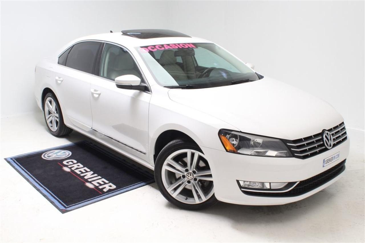 Volkswagen Passat TDI+HIGHLINE+NAV+GARANTIE POUR UNE VOLKSWAGEN DE QUALITE C\'EST CHEZ GRENIER 2015Régulateur de vitesse, Toit ouvrant, Essuie-glaces intermittents, Anti-démarreur, Freins ABS, Contrôle de stabilité, Coussin gonflable conducteur, Coussins gonflables latéraux, Lecteur CD, Lecteur MP3, Siège mémoire, Volant ajustable, Moonroof, Tapis protecteurs, Caméra de recul, Volant gainé de cuir, Phares automatiques, Rétroviseur électrique, Direction assistée, Rétroviseurs chauffants, Siège à réglage électrique, Coussins gonflables arrière pour la tête, Siège conducteur - soutien lombaire, Siège passager - soutien lombaire, Démarrage sans clé, Freins à disque, Sièges chauffants - Avant, Antipatinage, Phares antibrouillards, Verrous de sécurité pour enfants, Système de surveillance de la pression des pneus, Sièges baquets, Technologie Bluetooth intégrée, Entreposage Média sur disque dur, Rétroviseur à atténuation automatique, Aluminium, Climatisation