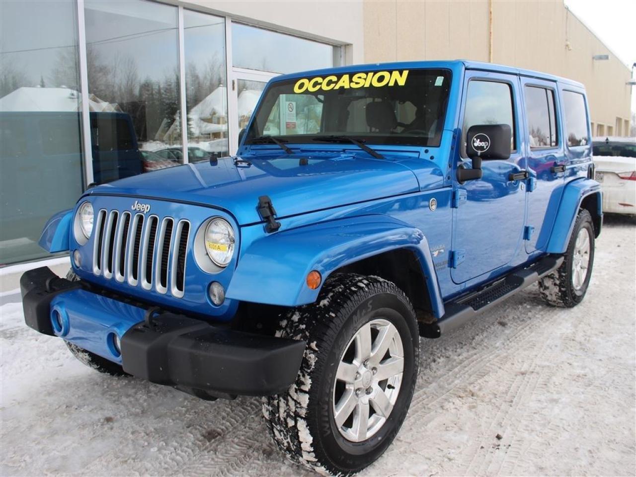 **Rapport d'historique + d'inspection CERTIFIÉ **Véhicule disponible pour une DURÉE LIMITÉE **Programme 100% approuvé et 0$ comptant UNIQUE (financement facile et rapide) **APPROBATION en 10 minutes / 250 plans de financement disponibles **Programme TRANQUILITÉ D'ESPRIT CERTIFIÉ et remise à neuf offert **Prêt pour LIVRAISON IMMÉDIATE **ON REPREND TOUT EN ÉCHANGE : Autos, camions, VTT, motos, motoneiges, bateaux, VR et plus **Jusqu'à 35% DE PLUS que la valeur du marché pour votre échange **LIVRAISON PARTOUT au Québec et au Canada **Informez-vous! + de 500 AUTRES VÉHICULES et camions d'occasion sur place. Plus de 6000 autres disponibles sur demande **WE SPEAK ENGLISH TOO! SO DON'T HESITATE TO CALL US OR TO COME SEE US **Système de navigation **Connexion Bluetooth / Mains libres **Jantes aluminium **Écran tactile 5 po **Climatiseur **Régulateur de vitesse **Télédéverrouillage **Prises de courant 12V **Et beaucoup plus! **Navigation system **Bluetooth connection / Hands-free device **Aluminium Mags **5 inch touch screen **A/C clean system **Cruise control **Remote keyless entry **12V power outlets **And much more! **Certified CarProof report + certified inspection **Vehicle available for a LIMITED TIME **EXCLUSIVE 100% approved credit and $0 cash down Program (easy financing) **BE APPROVED in 10 minutes / 250 financing plans **Ready for FAST DELIVERY **WE TAKE ALL TRADE-INS: cars, trucks, ATVS, snowmobiles, motorcycles, boats, RV and more. **Up to 35% MORE for your trade-in **DELIVERY EVERYWHERE in Quebec and Canada **Contact us! More than 500 OTHER CARS, SUV and trucks available. Nos conseillers certifiés et professionnels sauront vous offrir une expérience dachat personnalisée et conviviale pour lachat de votre nouveau véhicule. Certains accessoires additionnels en sus. Bien que nous ayons pris toutes les mesures raisonnables pour nous assurer de la précision des renseignements fournis, nous ne sommes pas responsables de toute erreur ou omission. Veuillez contre-vérifier les renseignements auprès de lun de nos experts. Dans le cas où un véhicule publié contiendrait des renseignements inexacts à cause d'une erreur typographique, photographique, sur le prix ou autre, le concessionnaire se réserve le droit de refuser ou d'annuler toute demande. Contactez-nous aussi pour en savoir plus sur nos rabais additionnels en concession. VERSIONS DISPONIBLES :Sport, Willys, Sahara, 75e anniv., Rubicon Our certified and professional consultants will offer you a personalized and user-friendly purchasing experience for your new vehicle. Although we have taken all reasonable steps to ensure the accuracy of the information provided, we are not responsible for any errors or omissions. Please check with one of our experts. In the event that a published vehicle contains inaccurate information due to a typographical, photographic, price or other error, the dealer reserves the right to refuse or cancel any request. Contact us to learn more about our additional dealer discounts