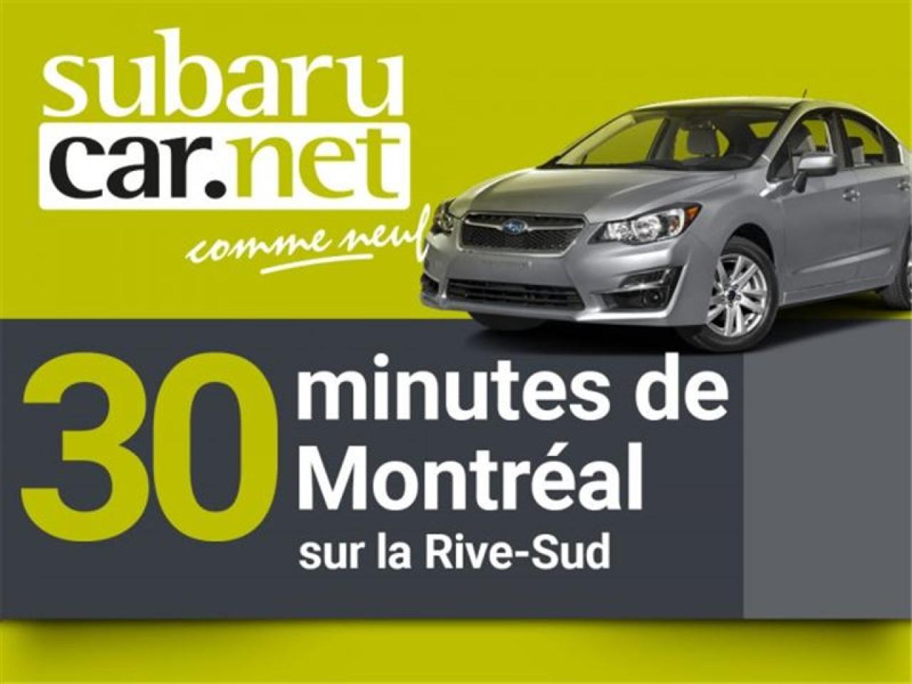 PNEUS HIVER A CLOUS, REGULATEUR DE VITESSE, INTERIEUR CUIR, TOIT OUVRANT, PUSH START, JANTES ALUMINIUM, RADIO SATELLITE, JAMAIS ACCIDENTE... A VOIR !!*SubaruCAR.net est un concessionnaire et centre de service indépendant. Nous ne sommes PAS un centre de service ou un concessionnaire Subaru autorisé et nous ne sommes d'AUCUNE façon affiliés avec le groupe de Société Subaru. Le paiement proposé est pour une durée de 72 mois, au taux de 6,99%, avec un versement comptant initial de $0 ou valeur d'échange équivalente nécessaire. Les frais de crédit total sont de 4418,26$, avec une obligation totale de 24057,11$. Les taxes sont incluses (sujet à l'approbation de votre crédit, certaines conditions s'appliquent).Nous sommes ouverts: du lundi au jeudi de 8h à 21h; le vendredi et samedi de 9h à 17h. Demandez-nous de l'historique du rapport Carproof. SubaruCAR.net est un concessionnaire automobile spécialisé dans la vente et l'entretien de Subaru d'occasion. Tous nos frais d'inspection et de reconditionnement des véhicules sont inclus dans notre prix. Aucun frais caché. Nos algorithmes vous permettent d'avoir le meilleur rapport qualité-prix. Plus de 100 véhicules en inventaire. La plupart de nos véhicules sont certifiés et prêts pour la livraison. Nous livrons partout au pays. Venez voir le véhicule sur notre site internet pour plus de détail: https://subarucar.net. Demandez-nous une évaluation de votre échange nous sommes à la recherche de véhicule pour notre inventaire. Téléphonez pour un financement facile, sans tracas, 1re, 2e et 3e chance au crédit. Aucun cas refusé, financement maison, taux avantageux, livraison rapide. Nous avons plusieurs programmes de garantis pour s'ajuster à vos besoins. We can serve you in English if you want. L'équipement peut varier, voire en concession. Faites affaire avec une entreprise familiale de deuxième génération qui existe depuis 1960. Un Subaru, ça s'achète chez un spécialiste. Nous sommes garage recommandé par CAA Québec depuis 1994. Nous sommes situés à 30 minutes de Montréal sur la rive sud. Contactez-nous au SubaruCAR.net, 300 boul. Richelieu, route 112, Richelieu, Vente@SubaruCAR.net, SMS MMS texto 514.703.7822, Téléphone 1.844.278.2661.