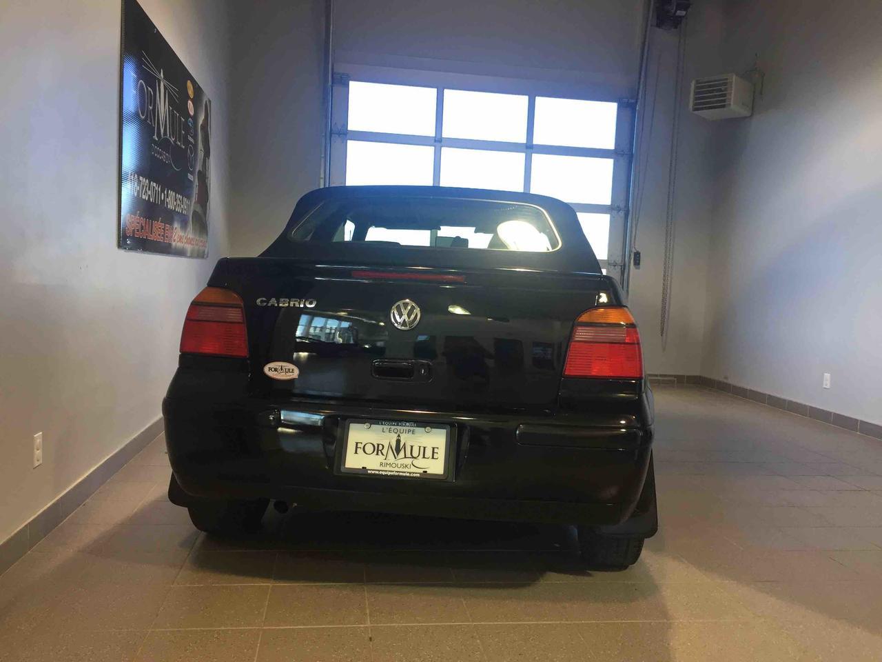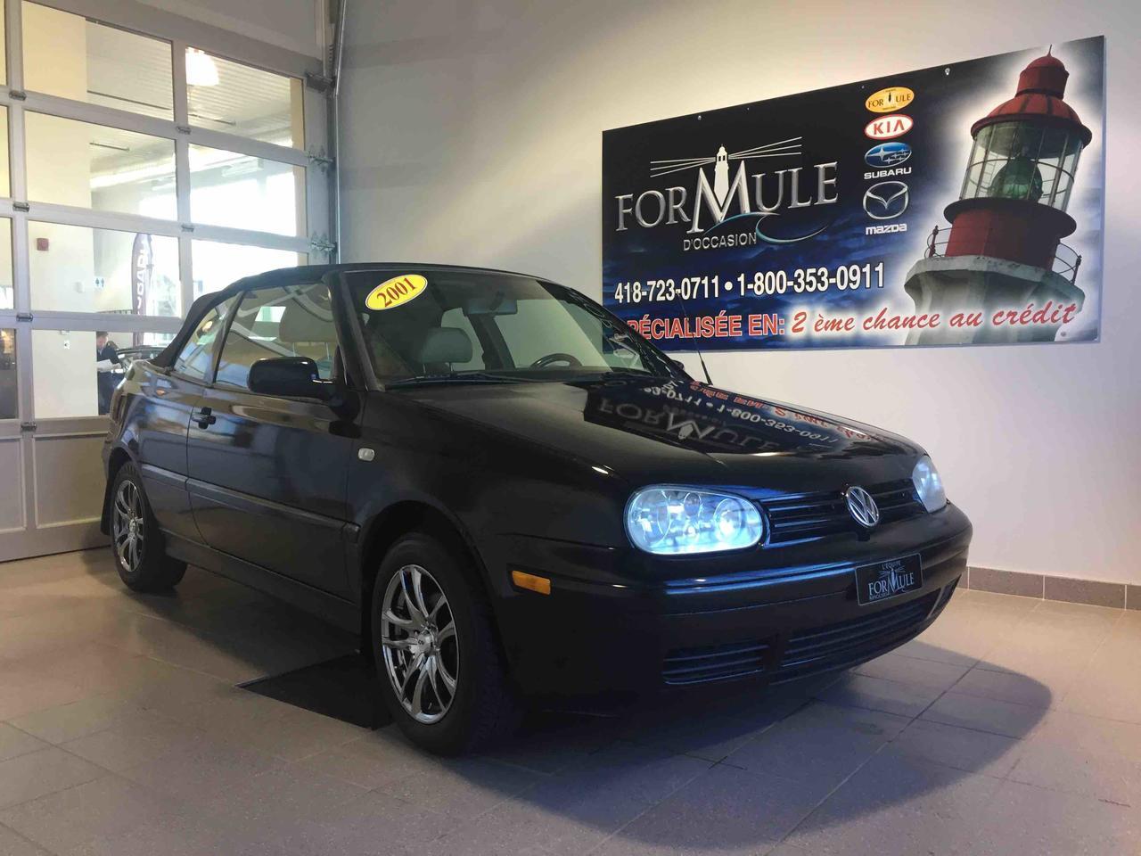 Volkswagen Cabrio GLS 2001\n\nRégulateur de vitesse, Essuie-glaces intermittents, Freins ABS, Coussin gonflable conducteur, Coussins gonflables latéraux, Lecteur cassette, Décapotable, Volant ajustable, Enjoliveurs, Tapis protecteurs, Volant gainé de cuir, Rétroviseur électrique, Direction assistée, Rétroviseurs chauffants, Sièges tissu, Système de protection au capotage, Freins à disque, Sièges chauffants - Avant, Sièges baquets, Climatisation\n\nPOUR LE PLUS GRAND CHOIX À UN SEUL ENDROIT, LE MEGA CENTRE DE L'USAGÉ DANS L'EST DU QUÉBEC. COUVRANT LA GRANDE RÉGION DE RIMOUSKI, MATANE, MONT-JOLI, RIVIÈRE-DU-LOUP, STE-ANNE DES MONTS, MATAPÉDIA,GASPÉSIE... CONTACTEZ-NOUS SANS FRAIS AU 1-877-864-3666 LIVRAISON PARTOUT AU QUÉBEC.