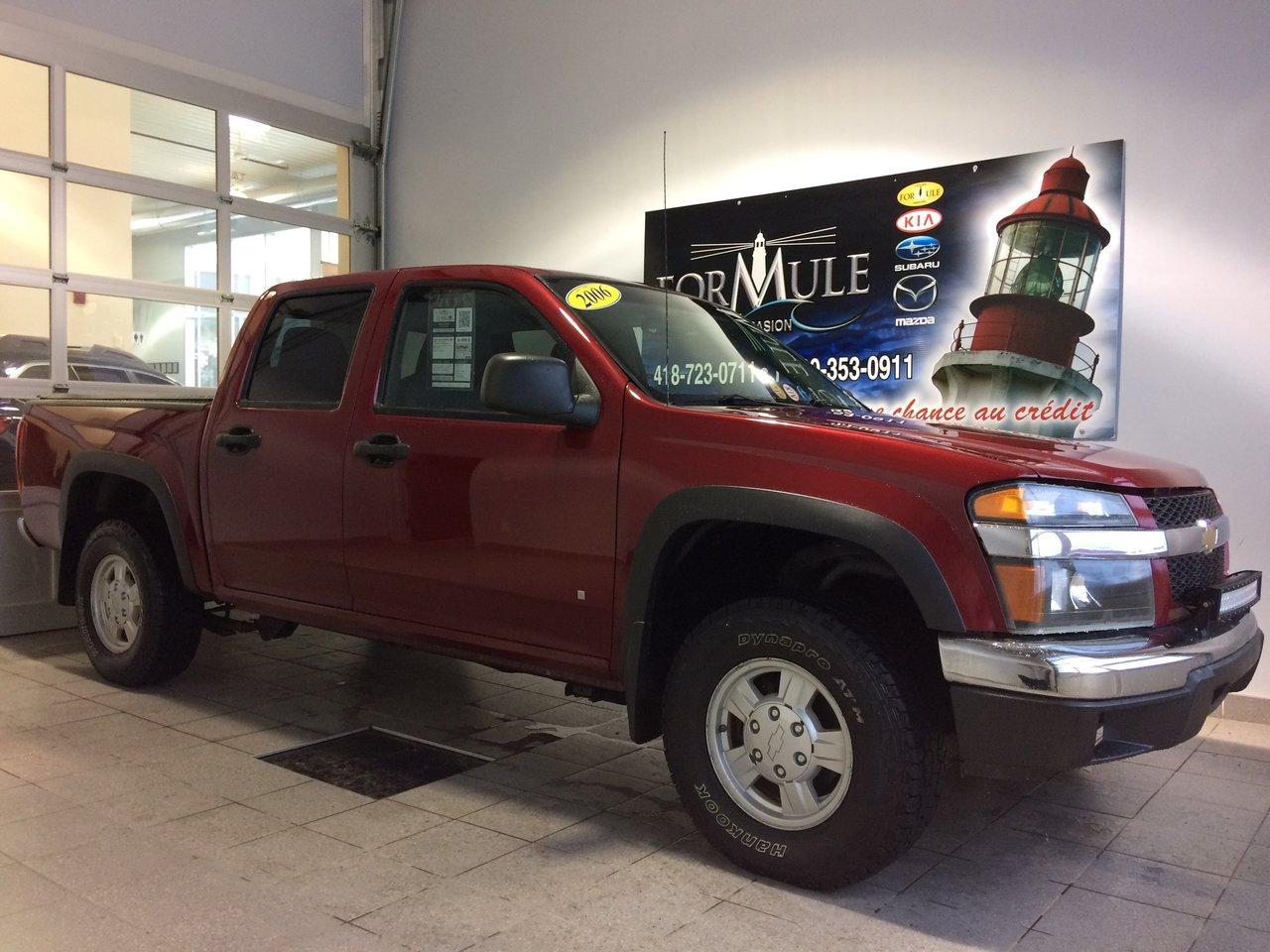 Chevrolet Colorado 2006\n\nRégulateur de vitesse, Essuie-glaces intermittents, Anti-démarreur, Freins ABS, Coussin gonflable conducteur, Lecteur CD, Portes électriques, Vitres électriques, Air climatisé, Lampes de lecture arrière, Volant ajustable, Tapis protecteurs, Attelage remorque, Phares automatiques, Rétroviseur électrique, Direction assistée, Siège conducteur - soutien lombaire, Freins à disque, Verrous de sécurité pour enfants, Climatisation\n\nPOUR LE PLUS GRAND CHOIX À UN SEUL ENDROIT, LE MEGA CENTRE DE L'USAGÉ DANS L'EST DU QUÉBEC. COUVRANT LA GRANDE RÉGION DE RIMOUSKI, MATANE, MONT-JOLI, RIVIÈRE-DU-LOUP, STE-ANNE DES MONTS, MATAPÉDIA,GASPÉSIE... CONTACTEZ-NOUS SANS FRAIS AU 1-877-864-3666 LIVRAISON PARTOUT AU QUÉBEC.