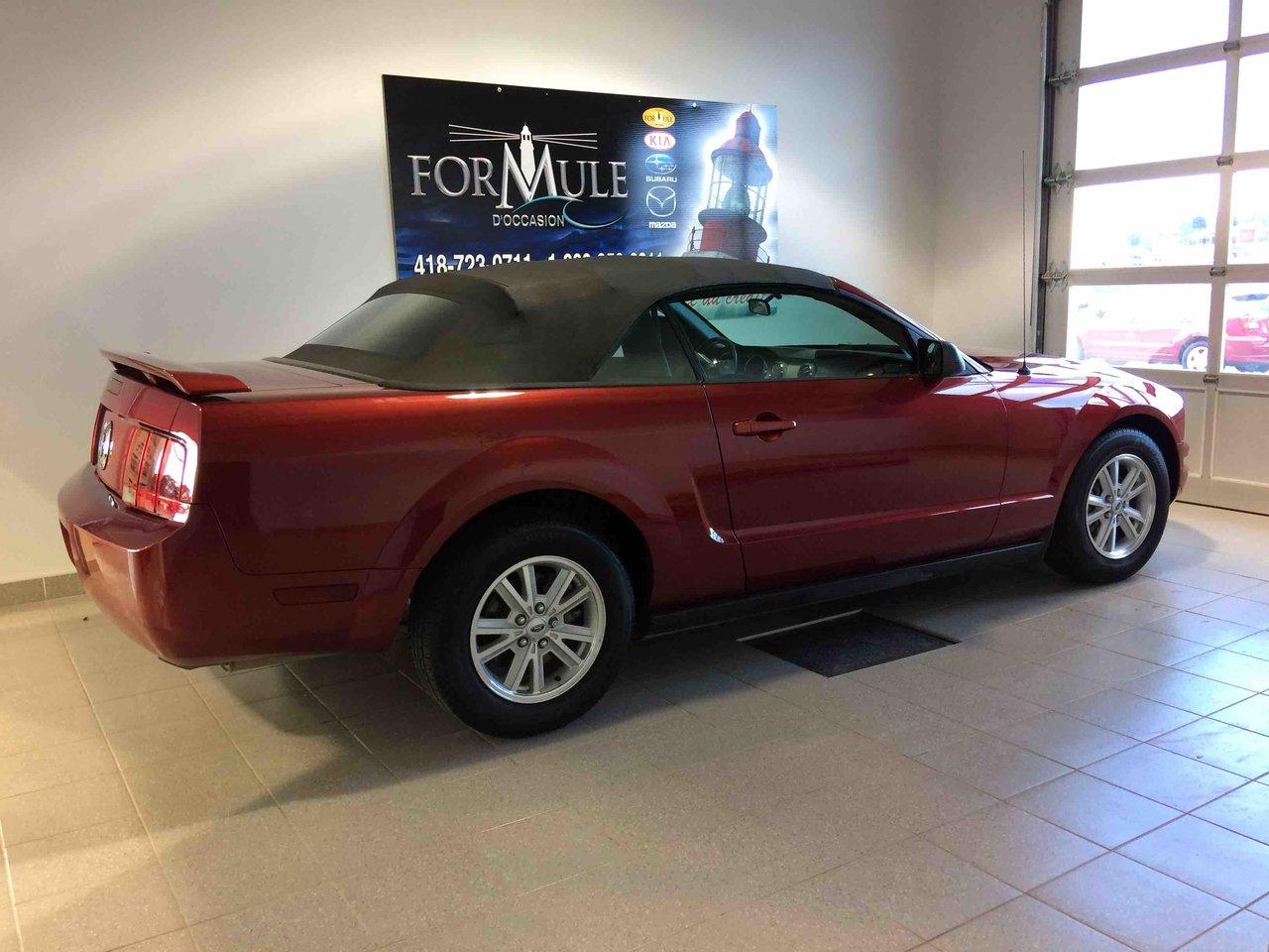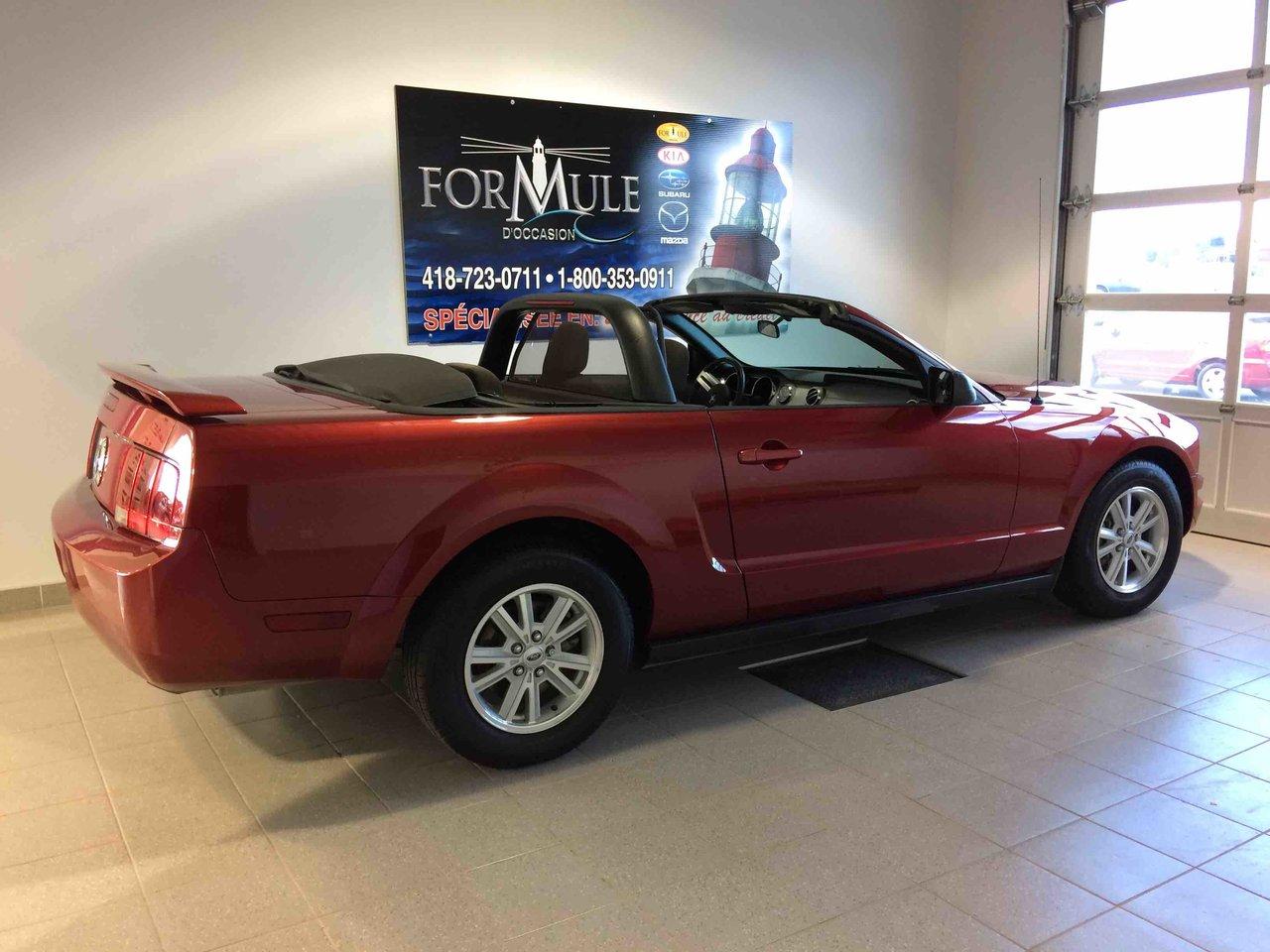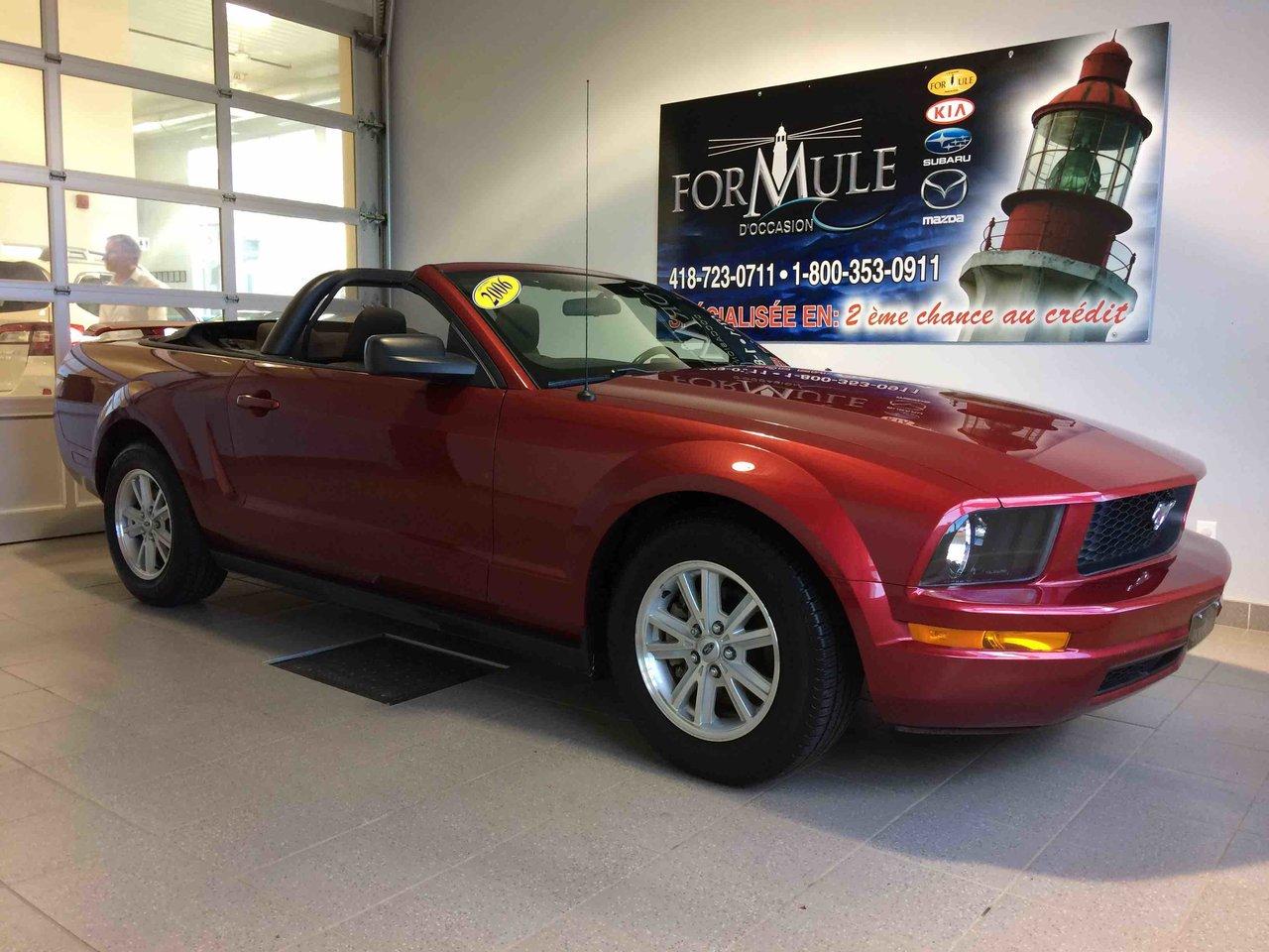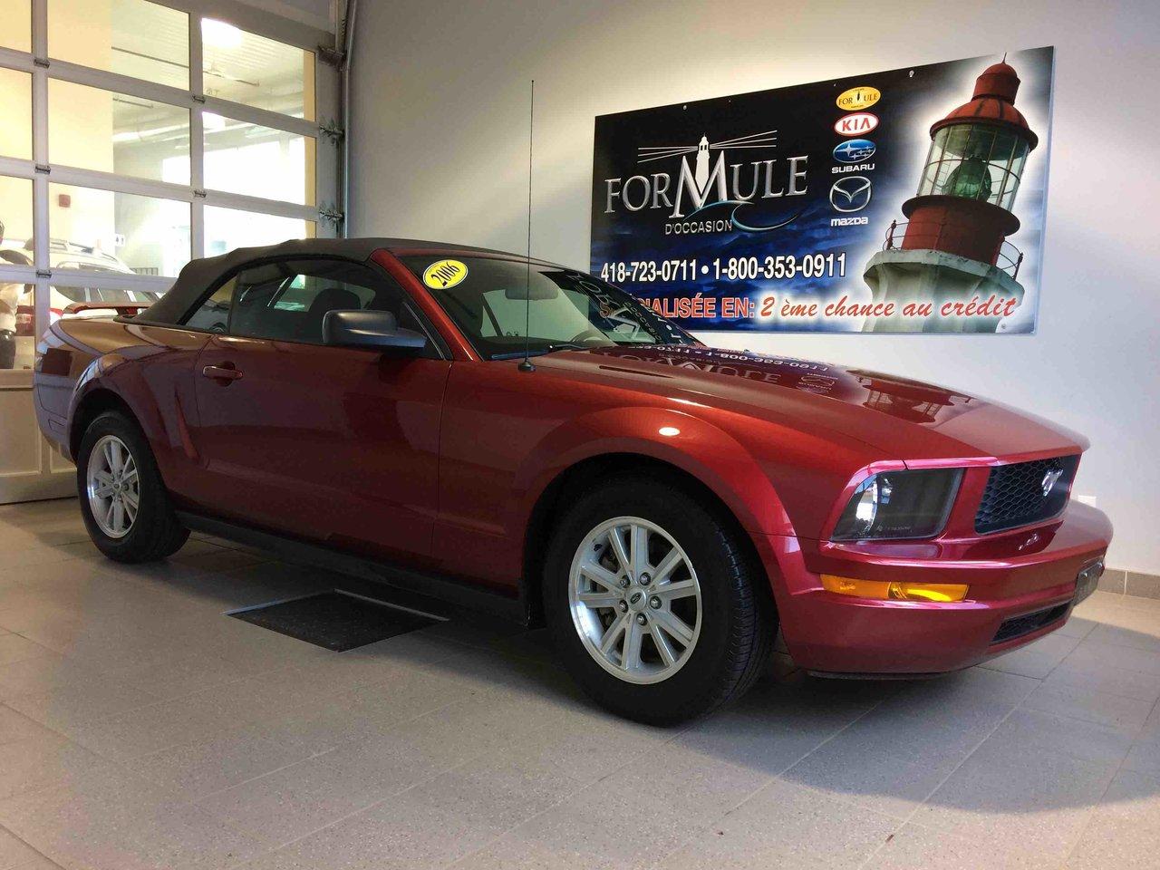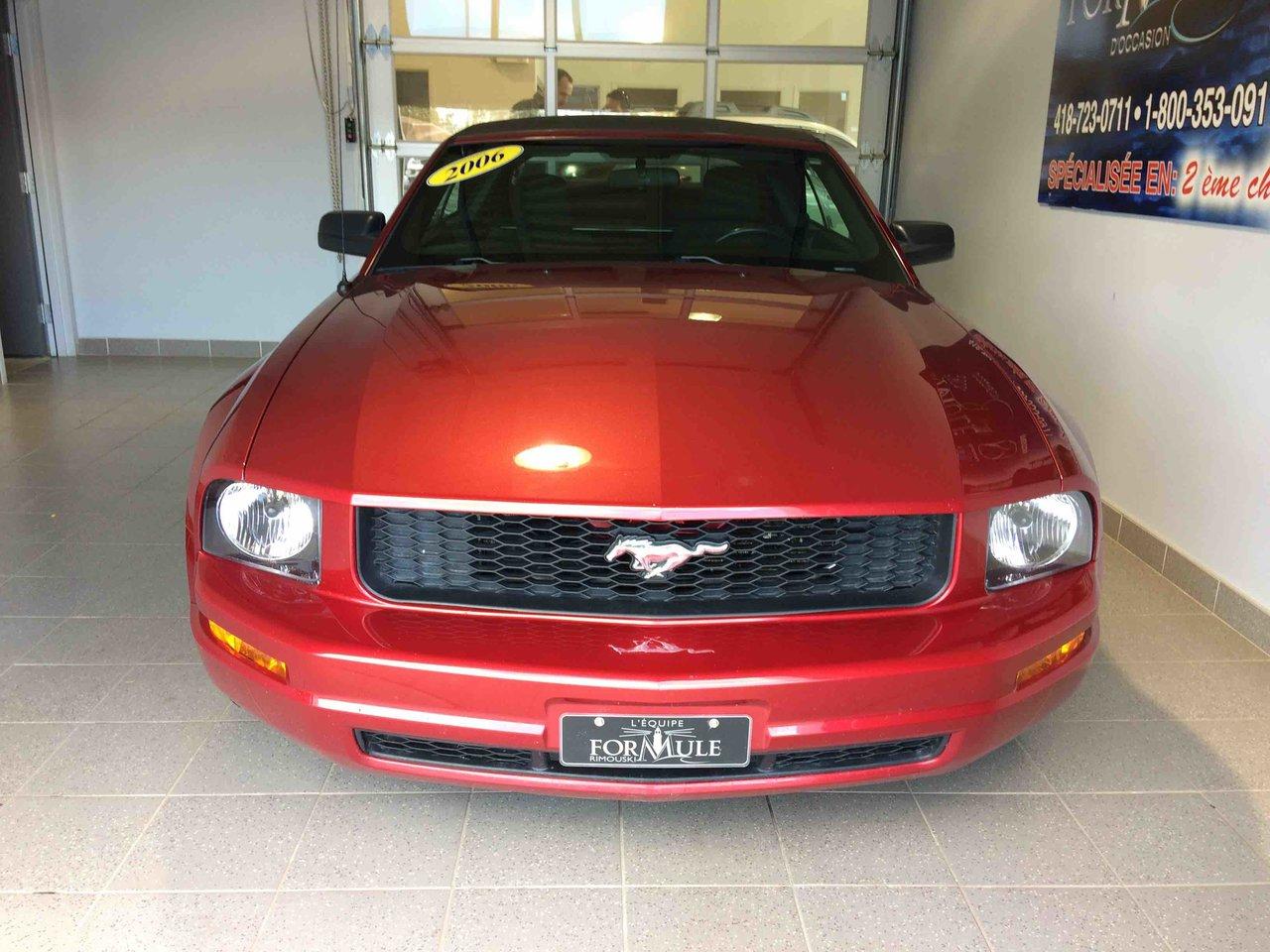 Ford Mustang Décapotable 2006\n\nRégulateur de vitesse, Essuie-glaces intermittents, Anti-démarreur, Coussin gonflable conducteur, Lecteur CD, Décapotable, Volant ajustable, Tapis protecteurs, Rétroviseur électrique, Direction assistée, Siège à réglage électrique, Siège conducteur - soutien lombaire, Freins à disque, Sièges baquets, Aluminium, Climatisation\n\nPOUR LE PLUS GRAND CHOIX À UN SEUL ENDROIT, LE MEGA CENTRE DE L'USAGÉ DANS L'EST DU QUÉBEC. COUVRANT LA GRANDE RÉGION DE RIMOUSKI, MATANE, MONT-JOLI, RIVIÈRE-DU-LOUP, STE-ANNE DES MONTS, MATAPÉDIA,GASPÉSIE... CONTACTEZ-NOUS SANS FRAIS AU 1-877-864-3666 LIVRAISON PARTOUT AU QUÉBEC.