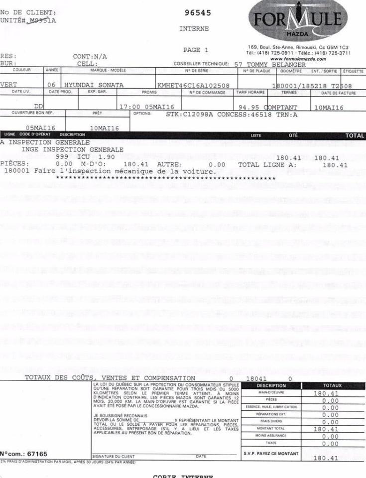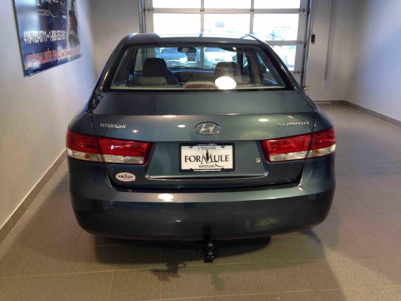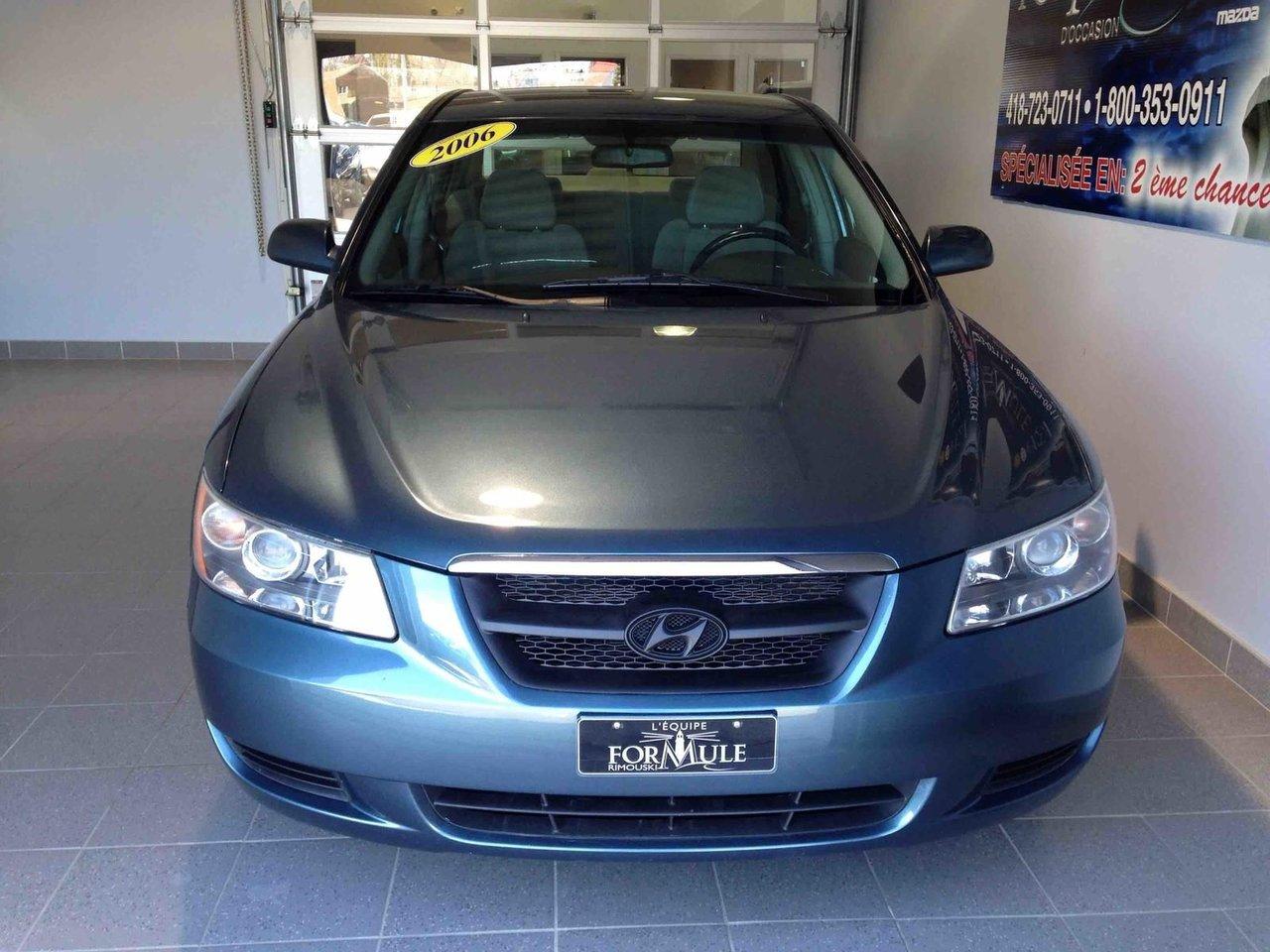 Hyundai Sonata GL 2006\n\nRégulateur de vitesse, Essuie-glaces intermittents, Coussin gonflable conducteur, Coussins gonflables latéraux, Lecteur CD, Lecteur MP3, Lampes de lecture arrière, Volant ajustable, Enjoliveurs, Tapis protecteurs, Volant gainé de cuir, Rétroviseur électrique, Direction assistée, Rétroviseurs chauffants, Coussins gonflables arrière pour la tête, Sièges tissu, Siège conducteur - soutien lombaire, Freins à disque, Sièges baquets, Climatisation\n\nPOUR LE PLUS GRAND CHOIX À UN SEUL ENDROIT, LE MEGA CENTRE DE L'USAGÉ DANS L'EST DU QUÉBEC. COUVRANT LA GRANDE RÉGION DE RIMOUSKI, MATANE, MONT-JOLI, RIVIÈRE-DU-LOUP, STE-ANNE DES MONTS, MATAPÉDIA,GASPÉSIE... CONTACTEZ-NOUS SANS FRAIS AU 1-877-864-3666 LIVRAISON PARTOUT AU QUÉBEC.