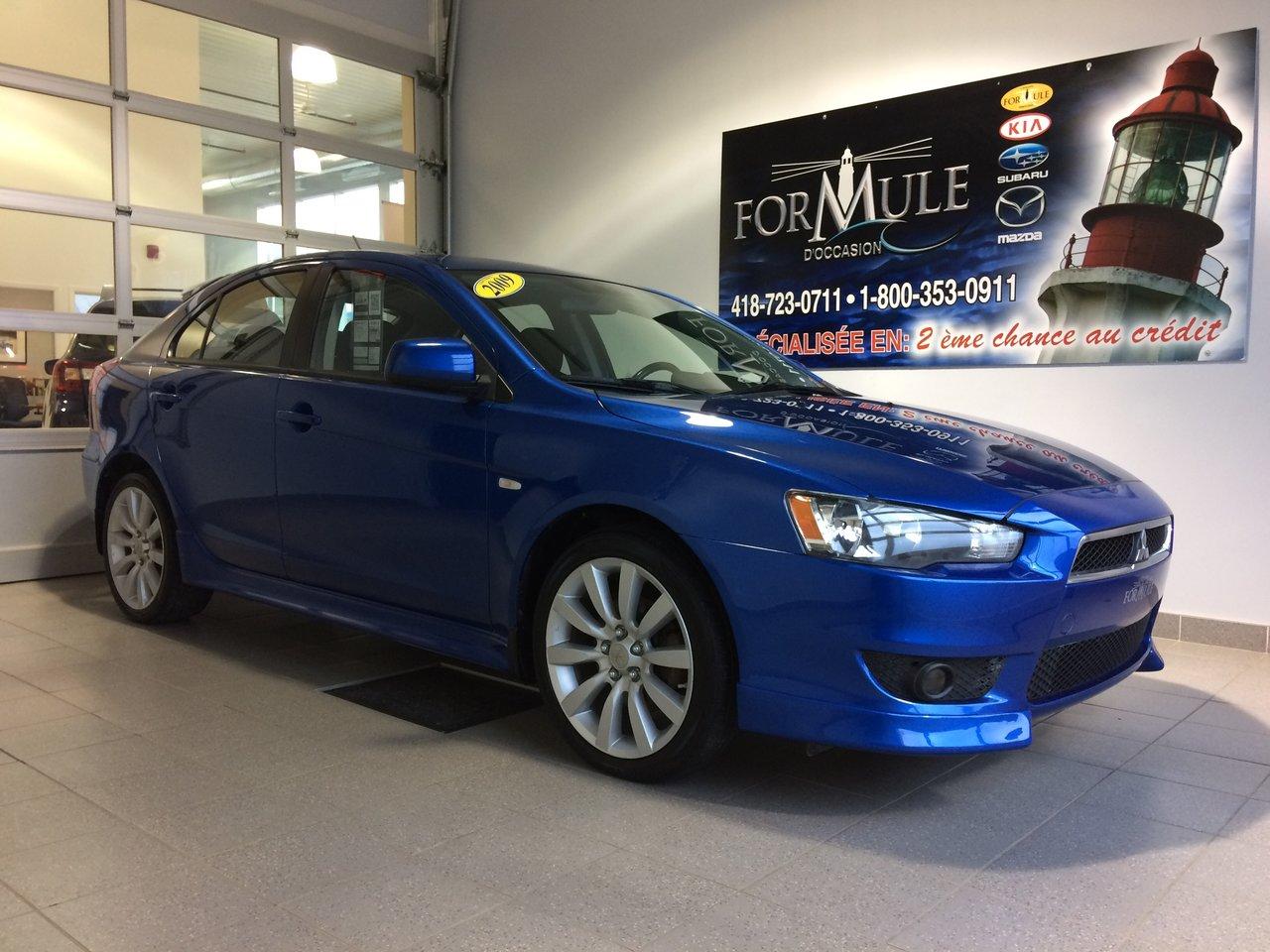 Mitsubishi Lancer GTS 2009\n\nRégulateur de vitesse, Essuie-glaces intermittents, Anti-démarreur, Freins ABS, Coussin gonflable conducteur, Coussins gonflables latéraux, Lecteur CD, Lecteur MP3, Portes électriques, Vitres électriques, Air climatisé, Lampes de lecture arrière, Volant ajustable, Tapis protecteurs, Volant gainé de cuir, Phares automatiques, Rétroviseur électrique, Direction assistée, Coussins gonflables arrière pour la tête, Freins à disque, Antipatinage, Phares antibrouillards, Verrous de sécurité pour enfants, Système de surveillance de la pression des pneus, Sièges baquets, Technologie Bluetooth intégrée, Cache bagages, Aluminium, Climatisation\n\nPOUR LE PLUS GRAND CHOIX À UN SEUL ENDROIT, LE MEGA CENTRE DE L'USAGÉ DANS L'EST DU QUÉBEC. COUVRANT LA GRANDE RÉGION DE RIMOUSKI, MATANE, MONT-JOLI, RIVIÈRE-DU-LOUP, STE-ANNE DES MONTS, MATAPÉDIA,GASPÉSIE... CONTACTEZ-NOUS SANS FRAIS AU 1-877-864-3666 LIVRAISON PARTOUT AU QUÉBEC.