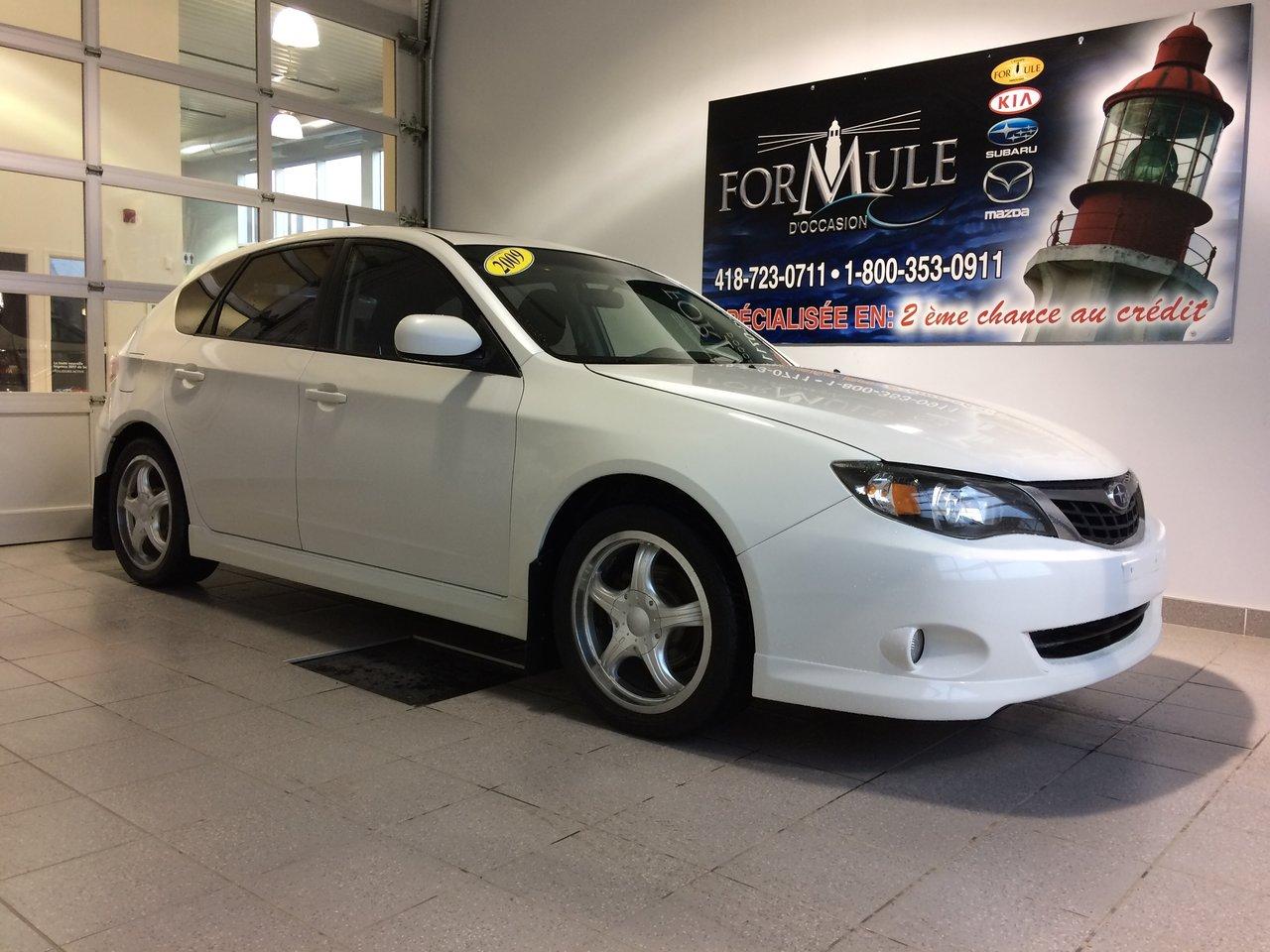 Subaru Impreza 2.5i W/sport Pkg 2009\n\nRégulateur de vitesse, Toit ouvrant, Essuie-glaces intermittents, Anti-démarreur, Freins ABS, Contrôle de stabilité, Coussin gonflable conducteur, Coussins gonflables latéraux, Lecteur CD, Chargeur de CD, Lecteur MP3, Vitres électriques, Air climatisé, Lampes de lecture arrière, Volant ajustable, Moonroof, Tapis protecteurs, Volant gainé de cuir, Phares automatiques, Rétroviseur électrique, Direction assistée, Rétroviseurs chauffants, Sièges tissu, Freins à disque, Sièges chauffants - Avant, Antipatinage, Phares antibrouillards, Verrous de sécurité pour enfants, Sièges baquets, Cache bagages, Aluminium, Climatisation\n\nPOUR LE PLUS GRAND CHOIX À UN SEUL ENDROIT, LE MEGA CENTRE DE L'USAGÉ DANS L'EST DU QUÉBEC. COUVRANT LA GRANDE RÉGION DE RIMOUSKI, MATANE, MONT-JOLI, RIVIÈRE-DU-LOUP, STE-ANNE DES MONTS, MATAPÉDIA,GASPÉSIE... CONTACTEZ-NOUS SANS FRAIS AU 1-877-864-3666 LIVRAISON PARTOUT AU QUÉBEC.