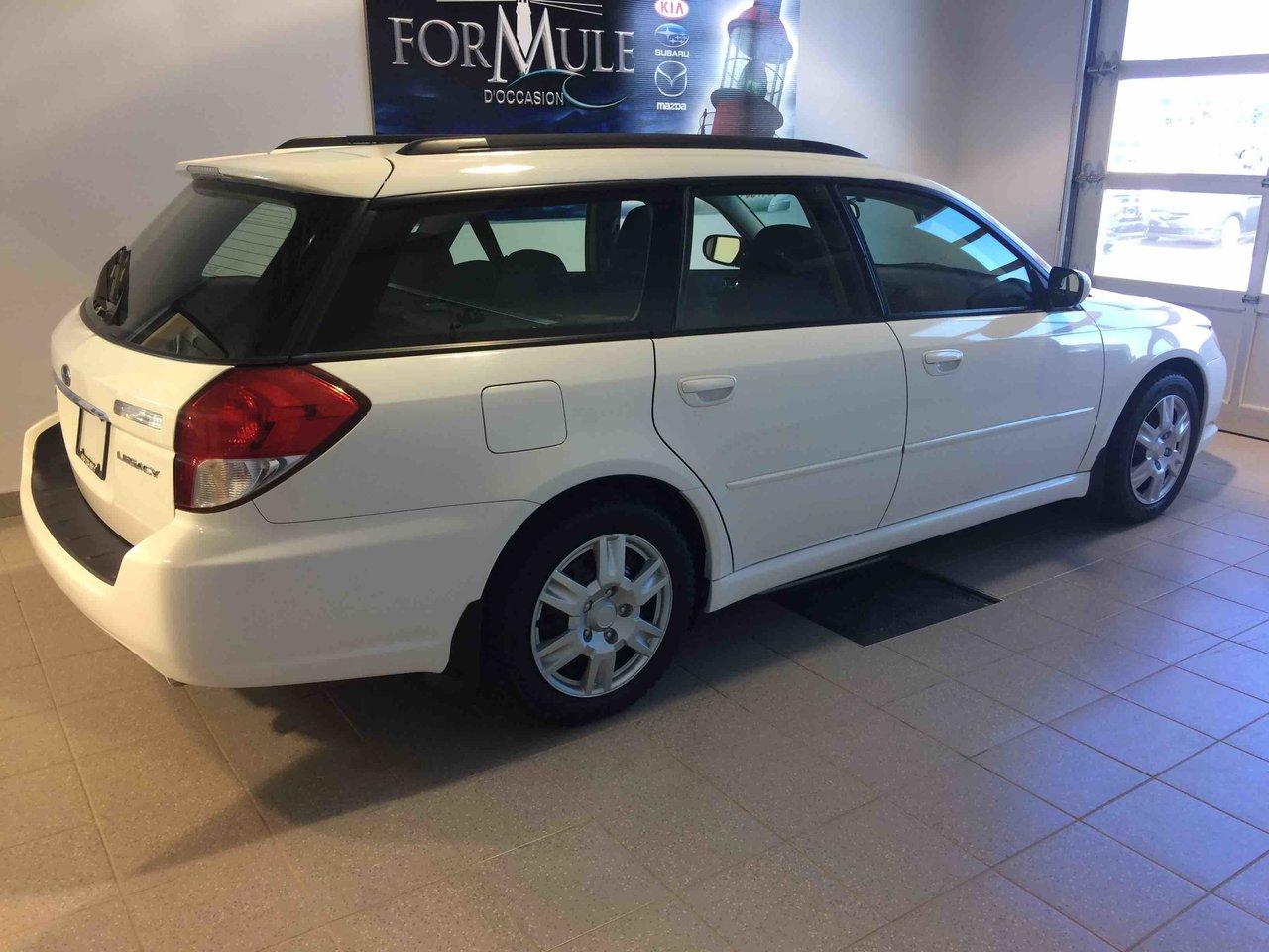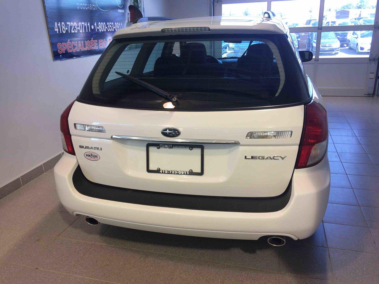 Subaru Legacy 2.5i W/touring Pkg 2009\n\nRégulateur de vitesse, Toit ouvrant, Essuie-glaces intermittents, Anti-démarreur, Freins ABS, Contrôle de stabilité, Coussin gonflable conducteur, Coussins gonflables latéraux, Lecteur CD, Lecteur MP3, Vitres électriques, Air climatisé, Lampes de lecture arrière, Sièges chauffants, Volant ajustable, Moonroof, Tapis protecteurs, Volant gainé de cuir, Phares automatiques, Rétroviseur électrique, Direction assistée, Rétroviseurs chauffants, Siège à réglage électrique, Sièges tissu, Freins à disque, Sièges chauffants - Avant, Antipatinage, Phares antibrouillards, Verrous de sécurité pour enfants, Sièges baquets, Cache bagages, Aluminium, Climatisation\n\nPOUR LE PLUS GRAND CHOIX À UN SEUL ENDROIT, LE MEGA CENTRE DE L'USAGÉ DANS L'EST DU QUÉBEC. COUVRANT LA GRANDE RÉGION DE RIMOUSKI, MATANE, MONT-JOLI, RIVIÈRE-DU-LOUP, STE-ANNE DES MONTS, MATAPÉDIA,GASPÉSIE... CONTACTEZ-NOUS SANS FRAIS AU 1-877-864-3666 LIVRAISON PARTOUT AU QUÉBEC.