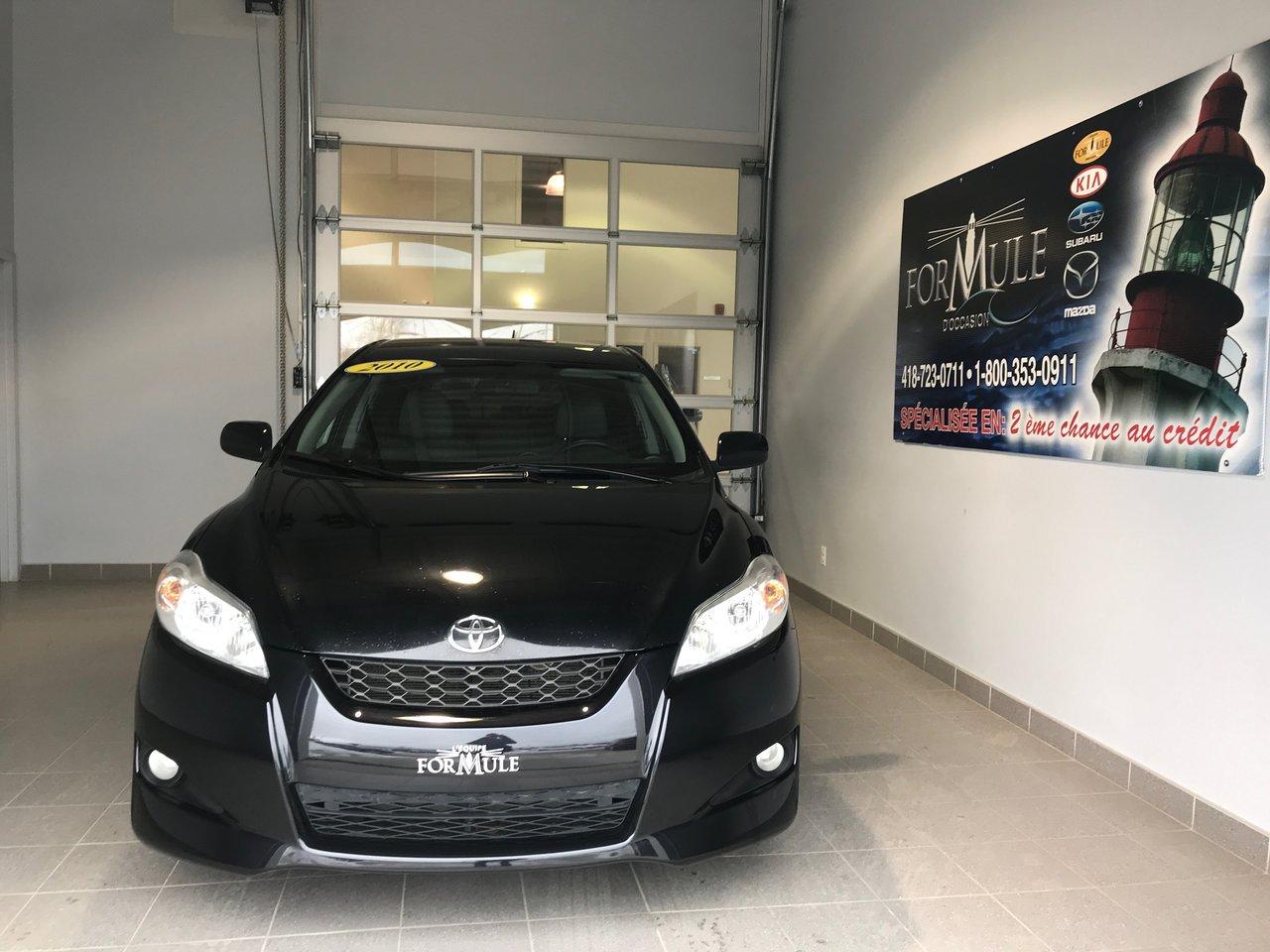 Toyota Matrix Base 2010\n\nEssuie-glaces intermittents, Anti-démarreur, Freins ABS, Coussin gonflable conducteur, Coussins gonflables latéraux, Lecteur CD, Lecteur MP3, Lampes de lecture arrière, Volant ajustable, Enjoliveurs, Tapis protecteurs, Rétroviseur électrique, Direction assistée, Rétroviseurs chauffants, Coussins gonflables arrière pour la tête, Sièges tissu, Freins à disque, Verrous de sécurité pour enfants, Sièges baquets, Cache bagages\n\nPOUR LE PLUS GRAND CHOIX À UN SEUL ENDROIT, LE MEGA CENTRE DE L'USAGÉ DANS L'EST DU QUÉBEC. COUVRANT LA GRANDE RÉGION DE RIMOUSKI, MATANE, MONT-JOLI, RIVIÈRE-DU-LOUP, STE-ANNE DES MONTS, MATAPÉDIA,GASPÉSIE... CONTACTEZ-NOUS SANS FRAIS AU 1-877-864-3666 LIVRAISON PARTOUT AU QUÉBEC.