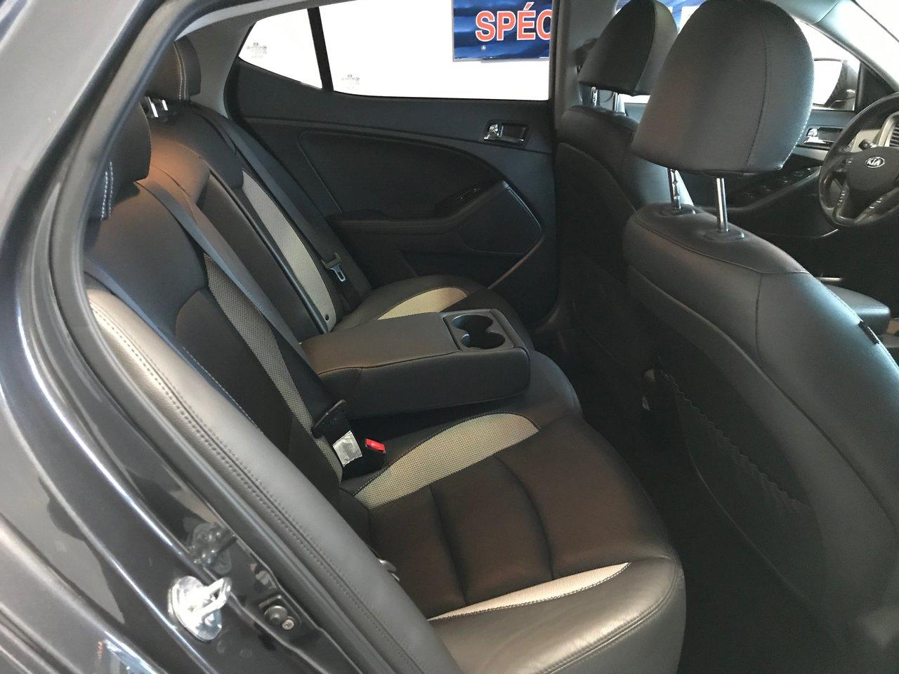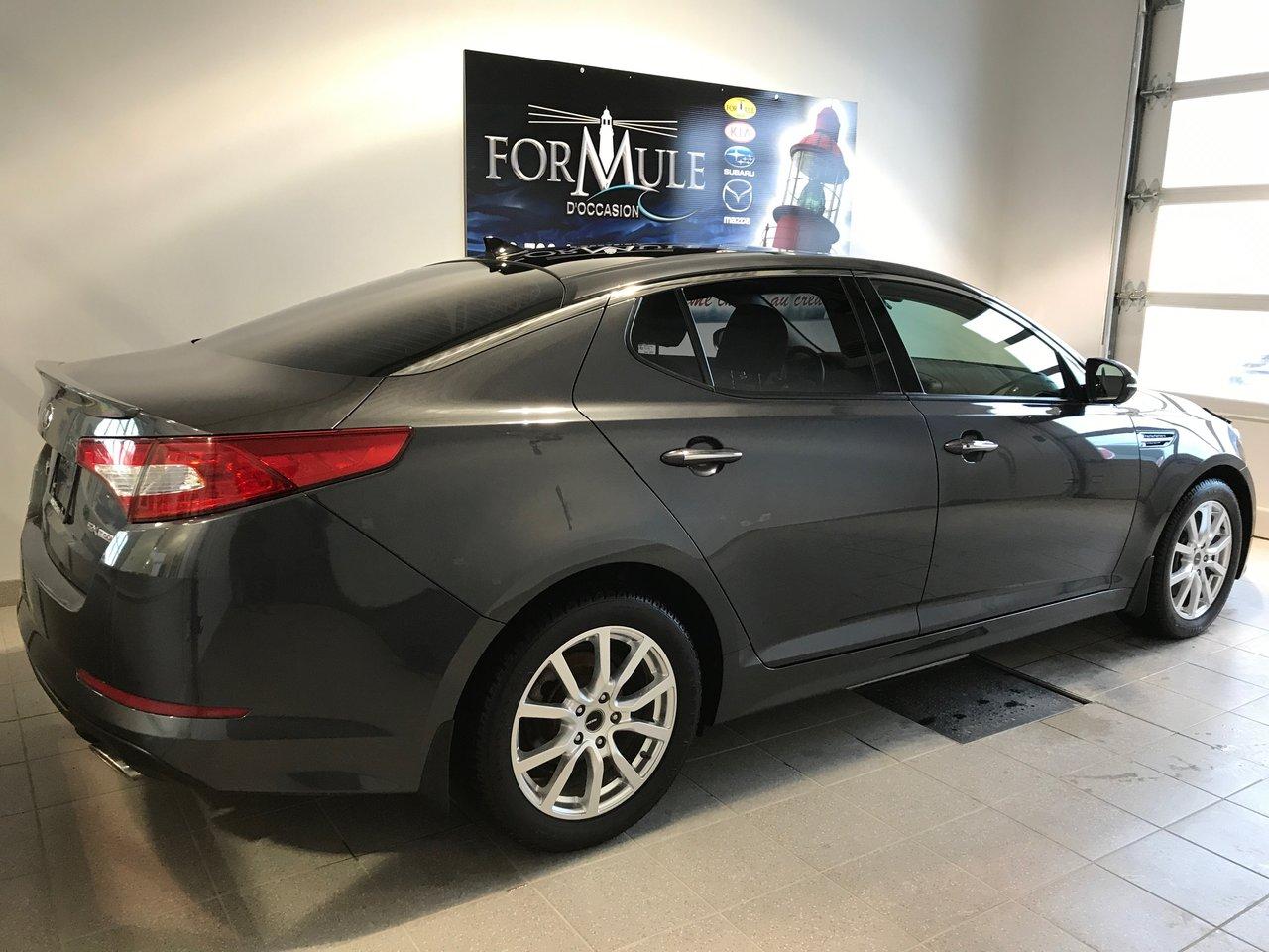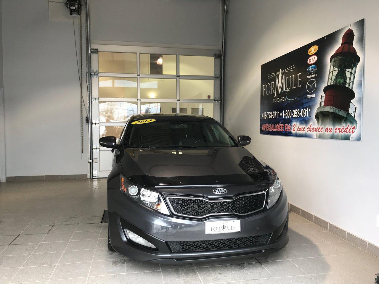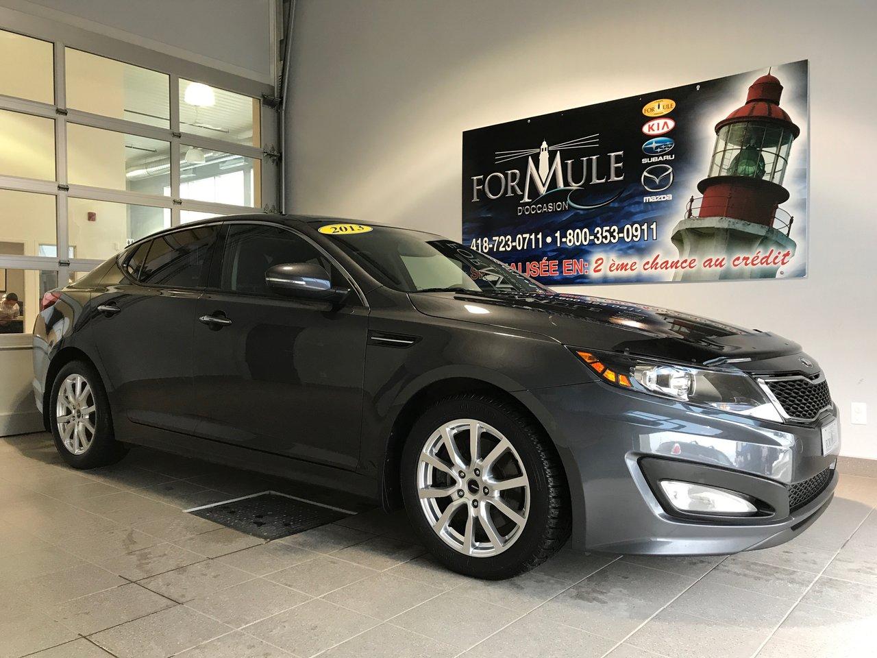 Kia Optima SX 2013\n\nRégulateur de vitesse, Toit ouvrant, Essuie-glaces intermittents, Anti-démarreur, Freins ABS, Contrôle de stabilité, Coussin gonflable conducteur, Coussins gonflables latéraux, Lecteur CD, Lecteur MP3, Portes électriques, Vitres électriques, Air climatisé, Intérieur en cuir, Lampes de lecture arrière, Sièges chauffants, Siège mémoire, Volant ajustable, Moonroof, Caméra de recul, Rétroviseurs, Volant gainé de cuir, Phares automatiques, Rétroviseur électrique, Sièges arrières chauffants, Direction assistée, Rétroviseurs chauffants, Siège à réglage électrique, Coussins gonflables arrière pour la tête, Siège conducteur - soutien lombaire, Siège refroidissant, Démarrage sans clé, Toit panoramique, Freins à disque, Sièges chauffants - Avant, Jantes en alliage, Antipatinage, Phares antibrouillards, Sièges baquets, Technologie Bluetooth intégrée, Aluminium, Climatisation\n\nPOUR LE PLUS GRAND CHOIX À UN SEUL ENDROIT, LE MEGA CENTRE DE L'USAGÉ DANS L'EST DU QUÉBEC. COUVRANT LA GRANDE RÉGION DE RIMOUSKI, MATANE, MONT-JOLI, RIVIÈRE-DU-LOUP, STE-ANNE DES MONTS, MATAPÉDIA,GASPÉSIE... CONTACTEZ-NOUS SANS FRAIS AU 1-877-864-3666 LIVRAISON PARTOUT AU QUÉBEC.