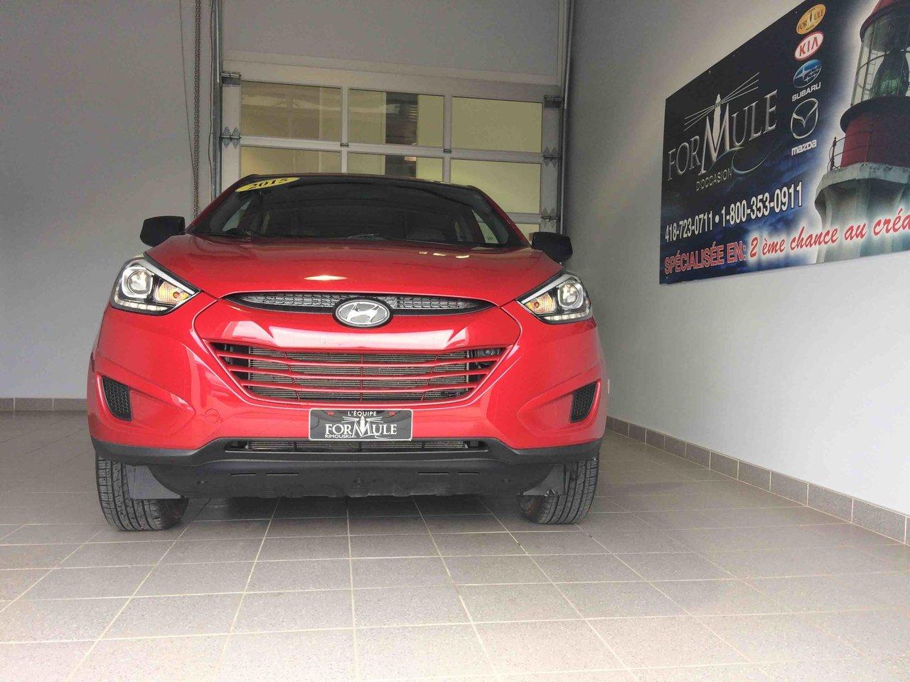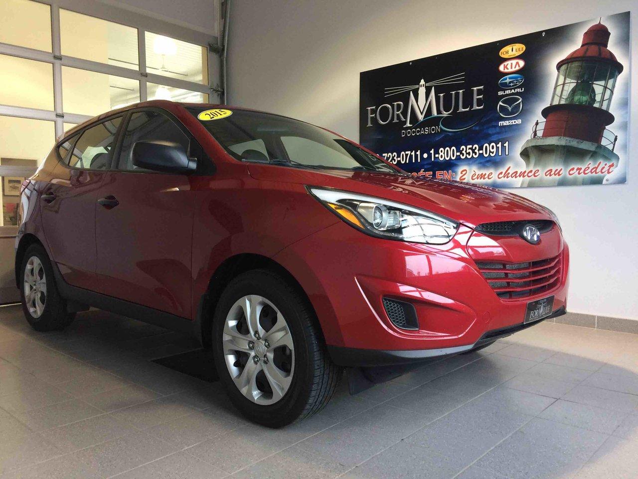 Hyundai Tucson GL 2015\n\nRégulateur de vitesse, Essuie-glaces intermittents, Anti-démarreur, Freins ABS, Contrôle de stabilité, Coussin gonflable conducteur, Coussins gonflables latéraux, Lecteur CD, Lecteur MP3, Portes électriques, Vitres électriques, Air climatisé, Sièges chauffants, Volant ajustable, Enjoliveurs, Tapis protecteurs, Attelage remorque, Phares automatiques, Rétroviseur électrique, Direction assistée, Rétroviseurs chauffants, Coussins gonflables arrière pour la tête, Sièges tissu, Freins à disque, Sièges chauffants - Avant, Antipatinage, Phares antibrouillards, Verrous de sécurité pour enfants, Sièges baquets, Technologie Bluetooth intégrée, Climatisation\n\nPOUR LE PLUS GRAND CHOIX À UN SEUL ENDROIT, LE MEGA CENTRE DE L'USAGÉ DANS L'EST DU QUÉBEC. COUVRANT LA GRANDE RÉGION DE RIMOUSKI, MATANE, MONT-JOLI, RIVIÈRE-DU-LOUP, STE-ANNE DES MONTS, MATAPÉDIA,GASPÉSIE... CONTACTEZ-NOUS SANS FRAIS AU 1-877-864-3666 LIVRAISON PARTOUT AU QUÉBEC.