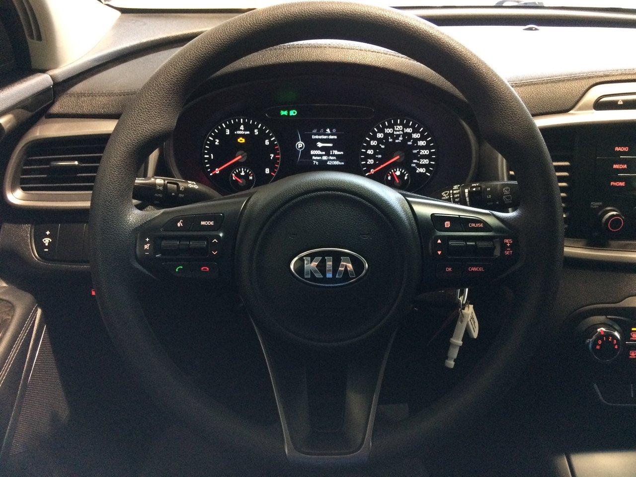 Kia Sorento 2.4l Lx 2016\n\nRégulateur de vitesse, Essuie-glaces intermittents, Anti-démarreur, Freins ABS, Contrôle de stabilité, Coussin gonflable conducteur, Coussins gonflables latéraux, Lecteur CD, Lecteur MP3, Portes électriques, Vitres électriques, Air climatisé, Sièges chauffants, Volant ajustable, Phares automatiques, Rétroviseur électrique, Direction assistée, Rétroviseurs chauffants, Siège à réglage électrique, Coussins gonflables arrière pour la tête, Sièges tissu, Siège conducteur - soutien lombaire, Freins à disque, Sièges chauffants - Avant, Antipatinage, Phares antibrouillards, Verrous de sécurité pour enfants, Sièges baquets, Technologie Bluetooth intégrée, Entreposage Média sur disque dur, Aluminium, Climatisation\n\nPOUR LE PLUS GRAND CHOIX À UN SEUL ENDROIT, LE MEGA CENTRE DE L'USAGÉ DANS L'EST DU QUÉBEC. COUVRANT LA GRANDE RÉGION DE RIMOUSKI, MATANE, MONT-JOLI, RIVIÈRE-DU-LOUP, STE-ANNE DES MONTS, MATAPÉDIA,GASPÉSIE... CONTACTEZ-NOUS SANS FRAIS AU 1-877-864-3666 LIVRAISON PARTOUT AU QUÉBEC.