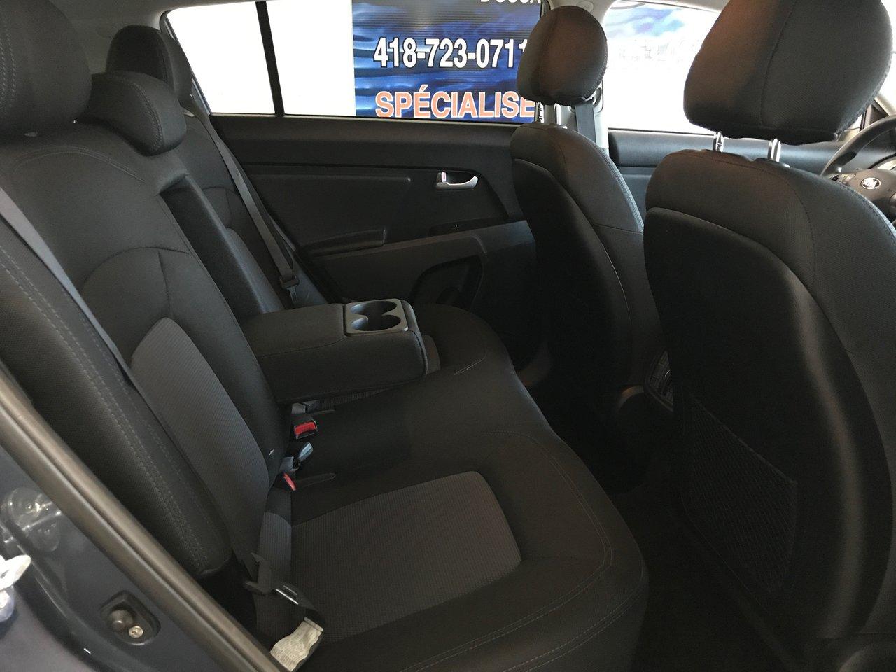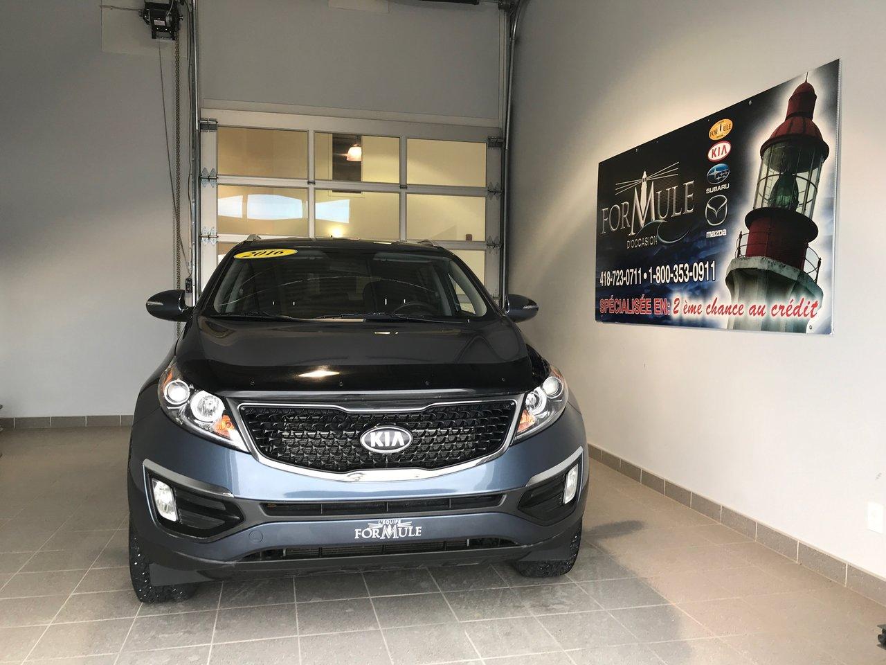 Kia Sportage LX 2016\n\nRégulateur de vitesse, Essuie-glaces intermittents, Anti-démarreur, Freins ABS, Contrôle de stabilité, Coussin gonflable conducteur, Coussins gonflables latéraux, Lecteur CD, Lecteur MP3, Portes électriques, Vitres électriques, Air climatisé, Sièges chauffants, Volant ajustable, Tapis protecteurs, Phares automatiques, Rétroviseur électrique, Direction assistée, Rétroviseurs chauffants, Coussins gonflables arrière pour la tête, Sièges tissu, Freins à disque, Sièges chauffants - Avant, Antipatinage, Phares antibrouillards, Verrous de sécurité pour enfants, Sièges baquets, Technologie Bluetooth intégrée, Aluminium, Climatisation\n\nPOUR LE PLUS GRAND CHOIX À UN SEUL ENDROIT, LE MEGA CENTRE DE L'USAGÉ DANS L'EST DU QUÉBEC. COUVRANT LA GRANDE RÉGION DE RIMOUSKI, MATANE, MONT-JOLI, RIVIÈRE-DU-LOUP, STE-ANNE DES MONTS, MATAPÉDIA,GASPÉSIE... CONTACTEZ-NOUS SANS FRAIS AU 1-877-864-3666 LIVRAISON PARTOUT AU QUÉBEC.