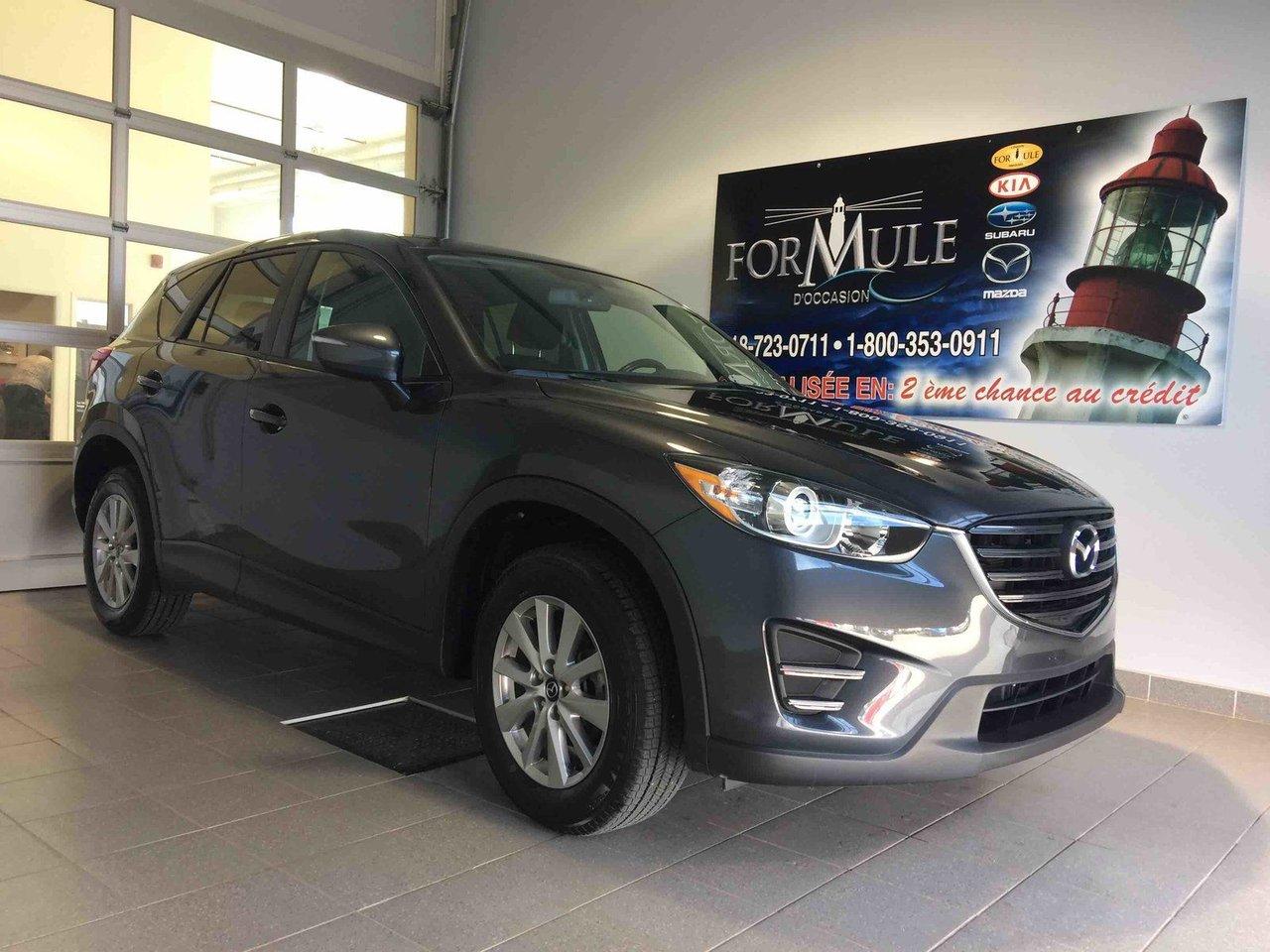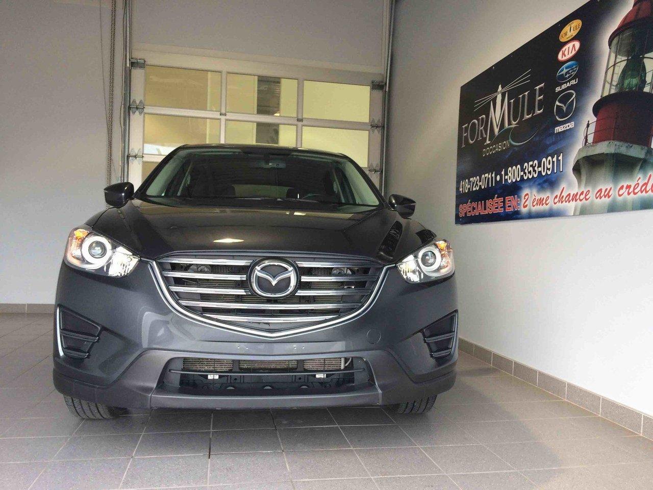 Mazda Cx-5 GX 2016\n\nRégulateur de vitesse, Essuie-glaces intermittents, Anti-démarreur, Freins ABS, Contrôle de stabilité, Coussin gonflable conducteur, Coussins gonflables latéraux, Lecteur CD, Lecteur MP3, Portes électriques, Vitres électriques, Air climatisé, Volant ajustable, Tapis protecteurs, Attelage remorque, Phares automatiques, Rétroviseur électrique, Direction assistée, Rétroviseurs chauffants, Coussins gonflables arrière pour la tête, Sièges tissu, Démarrage sans clé, Freins à disque, Antipatinage, Verrous de sécurité pour enfants, Système de surveillance de la pression des pneus, Sièges baquets, Technologie Bluetooth intégrée, Aluminium, Climatisation\n\nPOUR LE PLUS GRAND CHOIX À UN SEUL ENDROIT, LE MEGA CENTRE DE L'USAGÉ DANS L'EST DU QUÉBEC. COUVRANT LA GRANDE RÉGION DE RIMOUSKI, MATANE, MONT-JOLI, RIVIÈRE-DU-LOUP, STE-ANNE DES MONTS, MATAPÉDIA,GASPÉSIE... CONTACTEZ-NOUS SANS FRAIS AU 1-877-864-3666 LIVRAISON PARTOUT AU QUÉBEC.