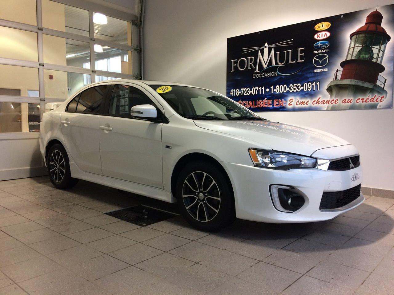 Mitsubishi Lancer 2016\n\nRégulateur de vitesse, Toit ouvrant, Essuie-glaces intermittents, Anti-démarreur, Freins ABS, Contrôle de stabilité, Coussin gonflable conducteur, Coussins gonflables latéraux, Lecteur CD, Lecteur MP3, Portes électriques, Vitres électriques, Air climatisé, Sièges chauffants, Volant ajustable, Tapis protecteurs, Phares automatiques, Rétroviseur électrique, Direction assistée, Rétroviseurs chauffants, Coussins gonflables arrière pour la tête, Sièges tissu, Freins à disque, Sièges chauffants - Avant, Antipatinage, Verrous de sécurité pour enfants, Système de surveillance de la pression des pneus, Sièges baquets, Technologie Bluetooth intégrée, Climatisation\n\nPOUR LE PLUS GRAND CHOIX À UN SEUL ENDROIT, LE MEGA CENTRE DE L'USAGÉ DANS L'EST DU QUÉBEC. COUVRANT LA GRANDE RÉGION DE RIMOUSKI, MATANE, MONT-JOLI, RIVIÈRE-DU-LOUP, STE-ANNE DES MONTS, MATAPÉDIA,GASPÉSIE... CONTACTEZ-NOUS SANS FRAIS AU 1-877-864-3666 LIVRAISON PARTOUT AU QUÉBEC.