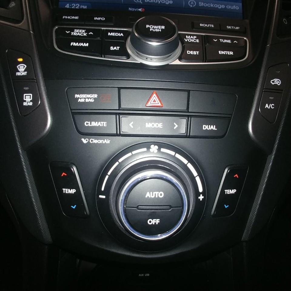 Hyundai Santa Fe Limited 2.0 T 2013Régulateur de vitesse, Essuie-glaces intermittents, Anti-démarreur, Freins ABS, Contrôle de stabilité, Coussins gonflables latéraux, Lecteur CD, Lecteur MP3, Lampes de lecture arrière, Volant ajustable, Tapis protecteurs, Volant gainé de cuir, Phares automatiques, Rétroviseur électrique, Sièges arrières chauffants, Direction assistée, Rétroviseurs chauffants, Siège à réglage électrique, Coussins gonflables arrière pour la tête, Siège conducteur - soutien lombaire, Démarrage sans clé, Freins à disque, Sièges chauffants - Avant, Antipatinage, Phares antibrouillards, Verrous de sécurité pour enfants, Sièges baquets, Technologie Bluetooth intégrée, Climatisation arrière, Aluminium, Climatisation, Volant chauffant