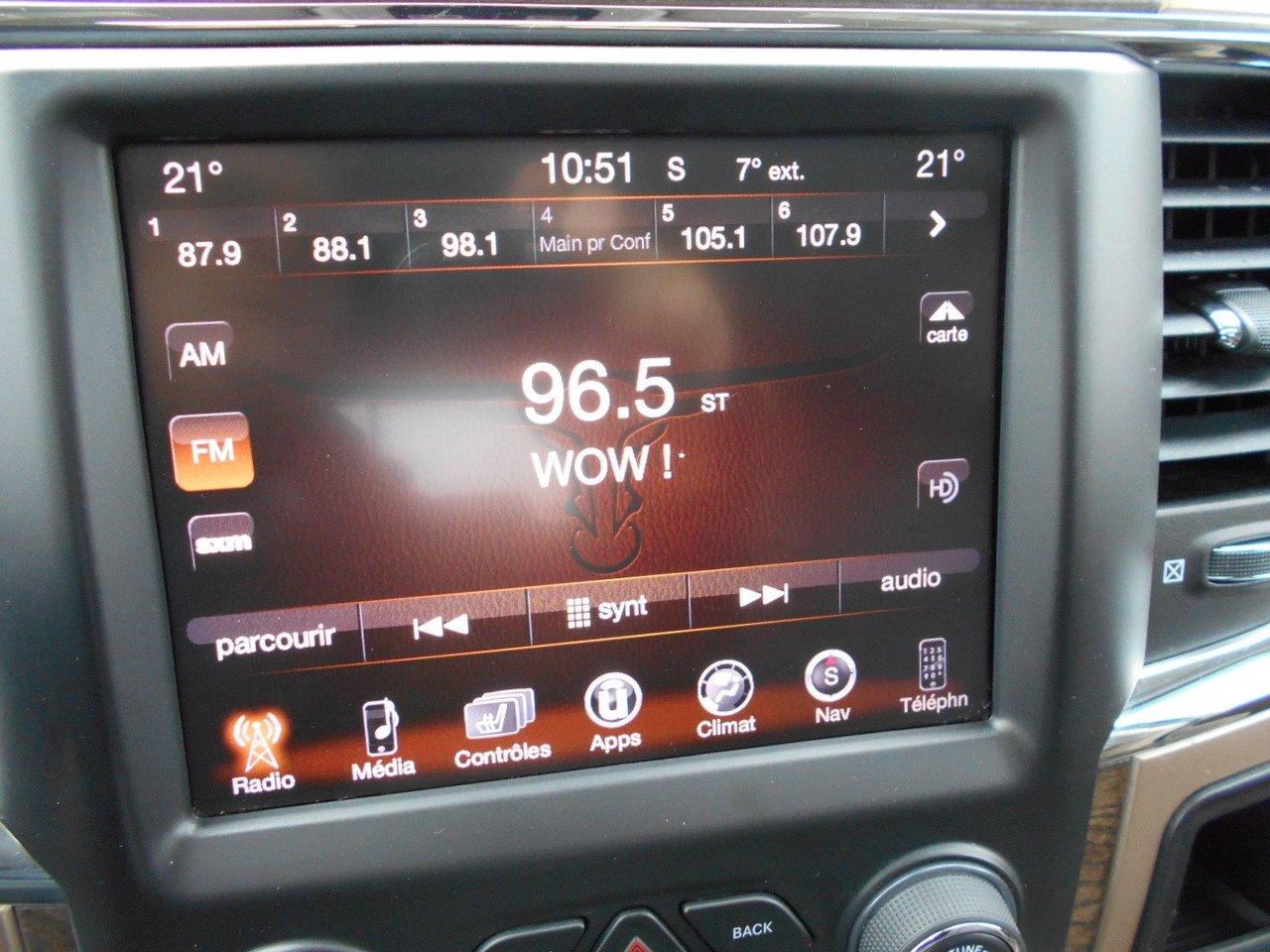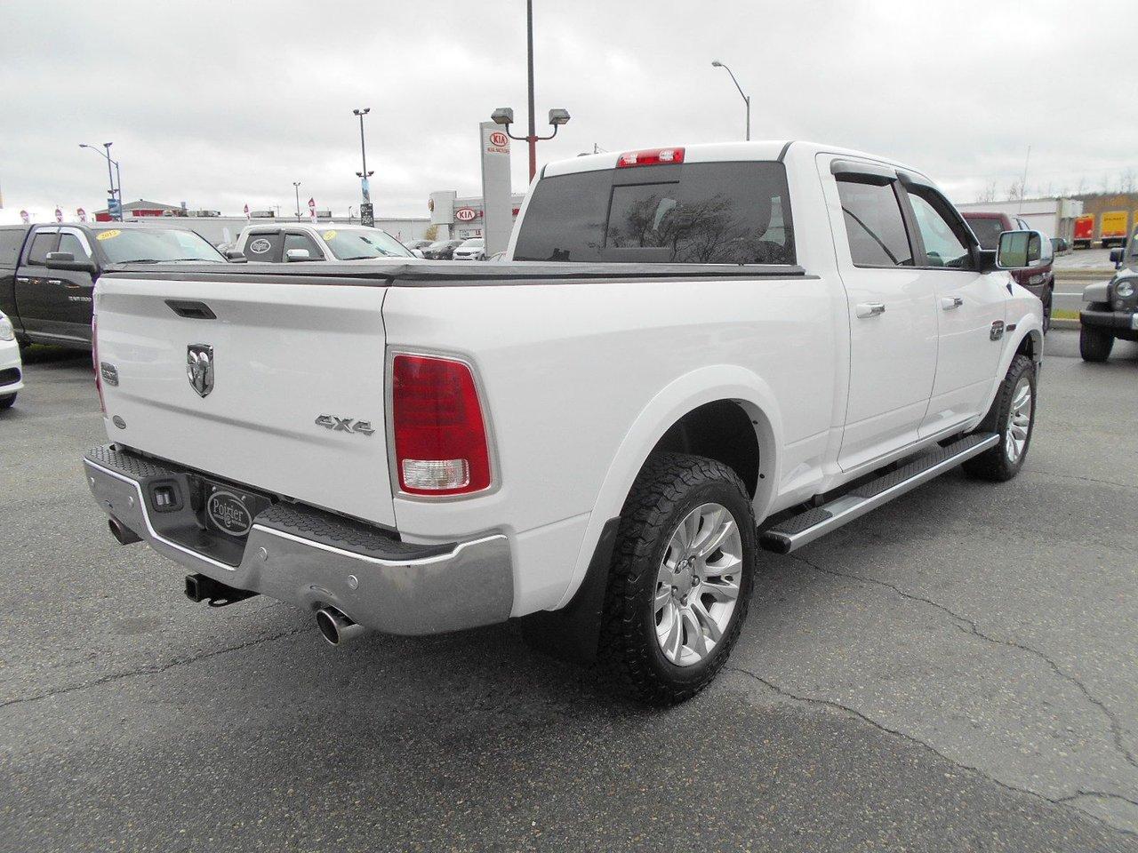 RAM 1500 Longhorn LUXE AVEC ?CONOMIE 2016Régulateur de vitesse, Toit ouvrant, Essuie-glaces intermittents, Anti-démarreur, Freins ABS, Contrôle de stabilité, Coussin gonflable conducteur, Coussins gonflables latéraux, Démarreur à distance, Lecteur MP3, 6 Haut-parleurs, 8 Haut-parleurs, Portes électriques, Tachymètre, Vitres électriques, Air climatisé, Intérieur en cuir, Climatisation deux zones, Commandes audio au volant, Sièges arrières rabattables, Sièges chauffants, Siège mémoire, Volant ajustable, Marchepieds, Tapis protecteurs, Vitres teintées, Doublure de caisse, Attelage remorque, Phares haute intensité, Ordinateur de bord, Tout équipé, Caméra de recul, Radio AM/FM, Pédales ajustables, Rétroviseurs, Volant gainé de cuir, Phares automatiques, Rétroviseur électrique, Sièges arrières chauffants, Direction assistée, Télédéverrouillage, Rétroviseurs chauffants, Banquette arrière divisé, Siège à réglage électrique, Système d\'alarme, Coussins gonflables arrière pour la tête, Siège conducteur - soutien lombaire, Siège passager - soutien lombaire, Siège refroidissant, Essuie-glace détecteur de pluie, Démarrage sans clé, Freins à disque, Sièges chauffants - Avant, Rétroviseurs électriques, Jantes en alliage, Antipatinage, Phares antibrouillards, Verrous de sécurité pour enfants, Système de surveillance de la pression des pneus, Sièges baquets, Prise Auxiliaire, Technologie Bluetooth intégrée, Port USB, Climatiseur automatique, Aide au stationnement (capteurs), Roue de secours - Temporaire, Rétroviseur à atténuation automatique, Aluminium, Climatisation, Volant chauffant