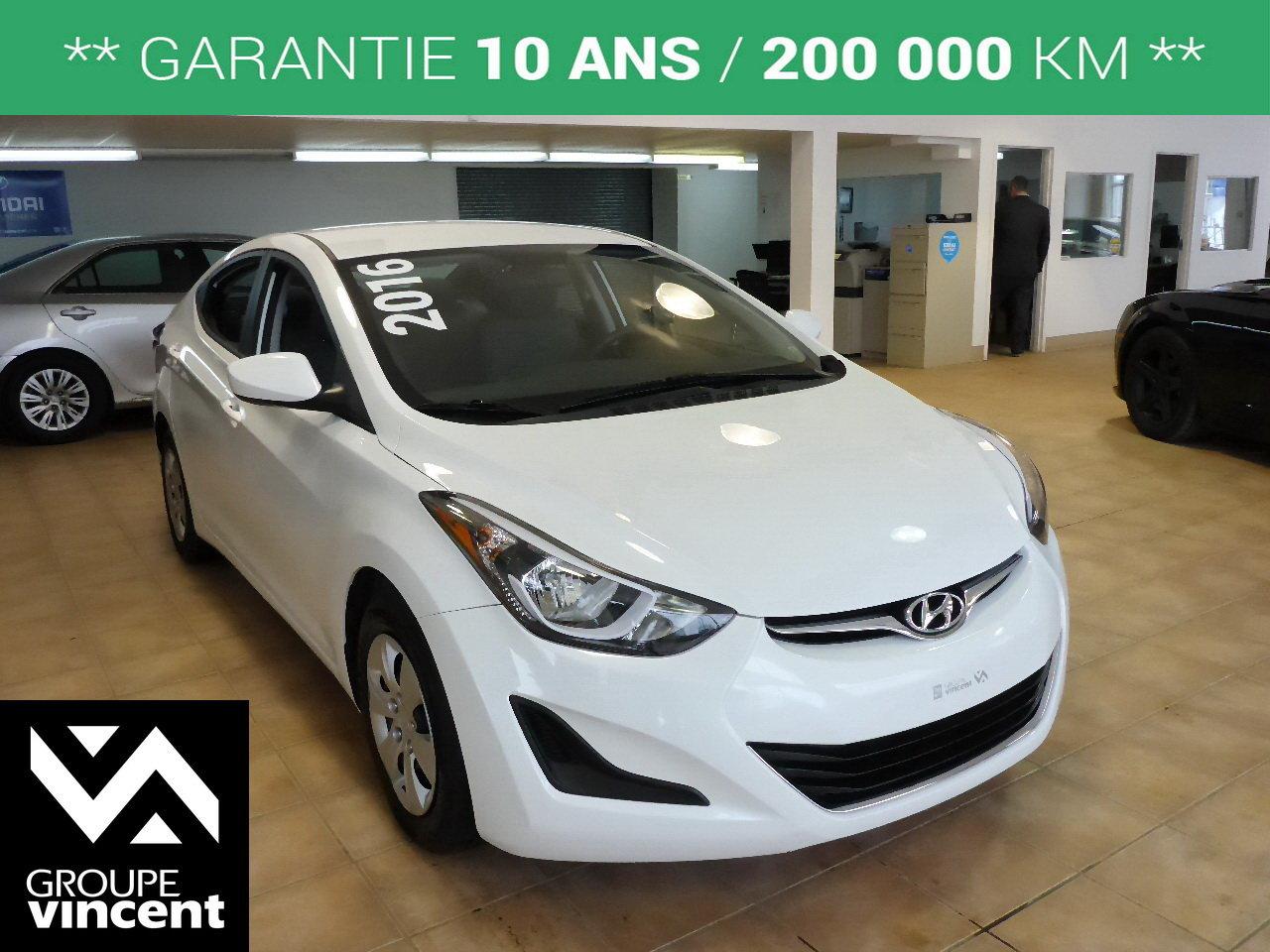 Hyundai Elantra LE**CLIMATISEUR** Fiable et ?conomique ! 2016Essuie-glaces intermittents, Anti-démarreur, Freins ABS, Contrôle de stabilité, Coussin gonflable conducteur, Coussins gonflables latéraux, Lecteur CD, Lecteur MP3, 6 Haut-parleurs, Portes électriques, Tachymètre, Vitres électriques, Air climatisé, Sièges arrières rabattables, Volant ajustable, Tapis protecteurs, Radio AM/FM, Rétroviseur électrique, Direction assistée, Rétroviseurs chauffants, Banquette arrière divisé, Système d\'alarme, Coussins gonflables arrière pour la tête, Sièges tissu, Freins à disque, Rétroviseurs électriques, Antipatinage, Verrous de sécurité pour enfants, Sièges baquets, Prise Auxiliaire, Port USB