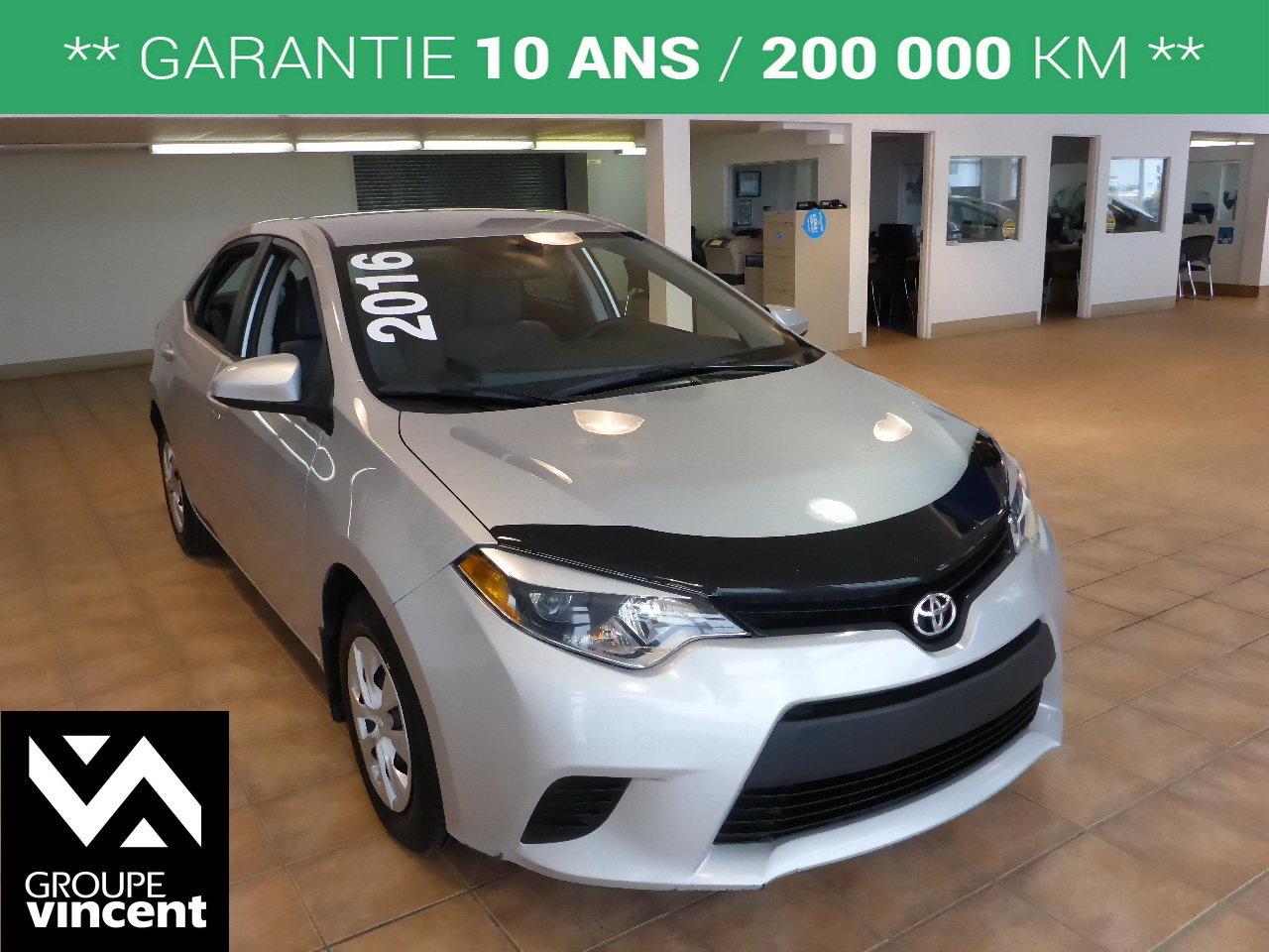 Toyota Corolla CE**CLIMATISEUR** Fiabilit? l?gendaire ! 2016Essuie-glaces intermittents, Anti-démarreur, Freins ABS, Contrôle de stabilité, Coussin gonflable conducteur, Coussins gonflables latéraux, Lecteur CD, Lecteur MP3, Portes électriques, Tachymètre, Vitres électriques, Air climatisé, Commandes audio au volant, Sièges arrières rabattables, Volant ajustable, Tapis protecteurs, Radio AM/FM, Rétroviseur électrique, Direction assistée, Rétroviseurs chauffants, Banquette arrière divisé, Coussins gonflables arrière pour la tête, Rétroviseurs électriques, Antipatinage, Verrous de sécurité pour enfants, Sièges baquets, Prise Auxiliaire, Technologie Bluetooth intégrée, Port USB