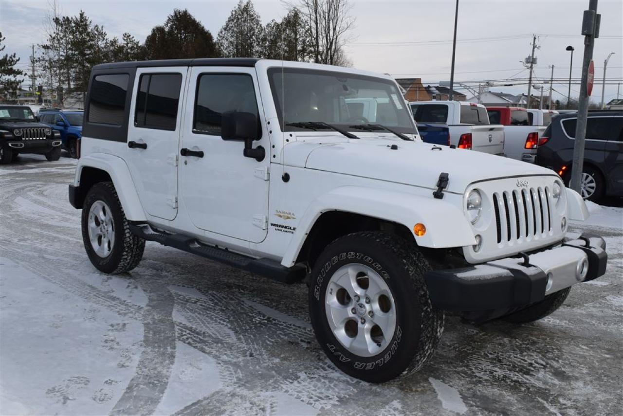2015 Jeep Wrangler Sahara Unlimited, 4x4, d'occasion, très propre,2 toits, Navigation, Bluetooth, Automatique, Démarreur à distance, Balance de Garantie du manufacturier, Auto, à vendre Chez Élite Chrysler Jeep Dodge Ram, le plus grand choix en inventaire. À Sherbrooke en Estrie Possibilité de Livraison partout au Québec !!!!!! Pour plus de détails, pour un essai routier ou même l'achat, Communiquer avec l'un de nos conseillers en vente sans frais au 1-888-647-5468. Financement sur place. (1ère et 2ième Chance)