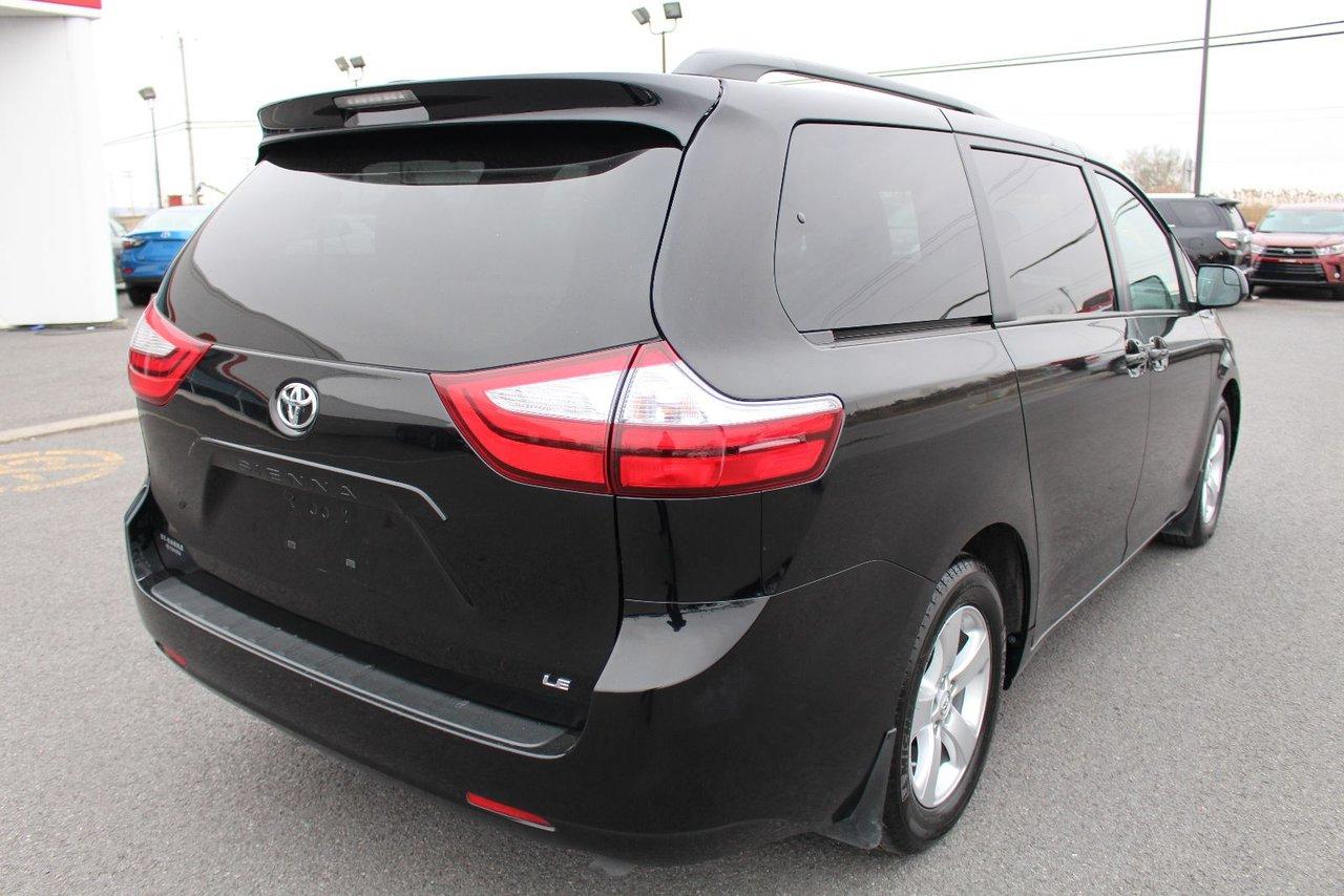 Toyota Sienna Le V6 8passagers Bluetooth Caméra Recul Siège 2016\n\nRégulateur de vitesse, Essuie-glaces intermittents, Essuie-glace arrière, Anti-démarreur, Freins ABS, Contrôle de stabilité, Coussin gonflable conducteur, Coussins gonflables latéraux, Lecteur CD, Lecteur MP3, 6 Haut-parleurs, Portes électriques, Tachymètre, Vitres électriques, Air climatisé, Climatisation deux zones, Commandes audio au volant, Sièges arrières rabattables, Sièges chauffants, Volant ajustable, Tapis protecteurs, Caméra de recul, Radio AM/FM, Rétroviseurs, Phares automatiques, Rétroviseur électrique, Direction assistée, Télédéverrouillage, Sièges de troisième rangée, Rétroviseurs chauffants, Banquette arrière divisé, Siège à réglage électrique, Coussins gonflables arrière pour la tête, Sièges tissu, Siège conducteur - soutien lombaire, Freins à disque, Sièges chauffants - Avant, Rétroviseurs électriques, Jantes en alliage, Antipatinage, Verrous de sécurité pour enfants, Système de surveillance de la pression des pneus, Sièges baquets, Prise Auxiliaire, Technologie Bluetooth intégrée, Port USB, Climatiseur automatique, Climatisation arrière, Rétroviseur à atténuation automatique, Aluminium, Climatisation\n\nTOYOTA SIENNA LE 2016 V6 3.5L 8 PASSAGERS BLUETOOTH, CONTROLES AUDIO AU VOLANT, GROUPE ÉLECTRIQUE, CLIMATISEUR, RÉGULATEUR DE VITESSE, MIROIRS CHAUFFANT, CAMÉRA DE RECUL. JAMAIS ACCIDENTÉ, FICHE D'ENTRETIEN COMPLÈTE. INSPECTION AVEC RAPPORT DE CONDITION POUR TOUT NOS VÉHICULES USAGÉS. CARPROOF ACCESSIBLE DIRECTEMENT VIA NOS ANNONCES. GARANTIE PROLONGÉE DISPONIBLE. LA MEILLEUR ALLOCATION POUR VOTRE ÉCHANGE. TOUTES LES MARQUES DISPONIBLES. ÉCONOMISEZ PLUS AVEC ST-BASILE TOYOTA, VOTRE CONCESSIONAIRE DE LA RIVE-SUD DE MONTRÉAL. FINANCEMENT FACILE ET CRÉDIT SUR PLACE. 2e CHANCE AU CRÉDIT DISPONIBLE. SITUÉ EN ABORD DE LA ROUTE 116, ENTRE BELOEIL ET ST-BRUNO, VENEZ NOUS VOIR OU VISITEZ LE: WWW.STBASILETOYOTA.COM