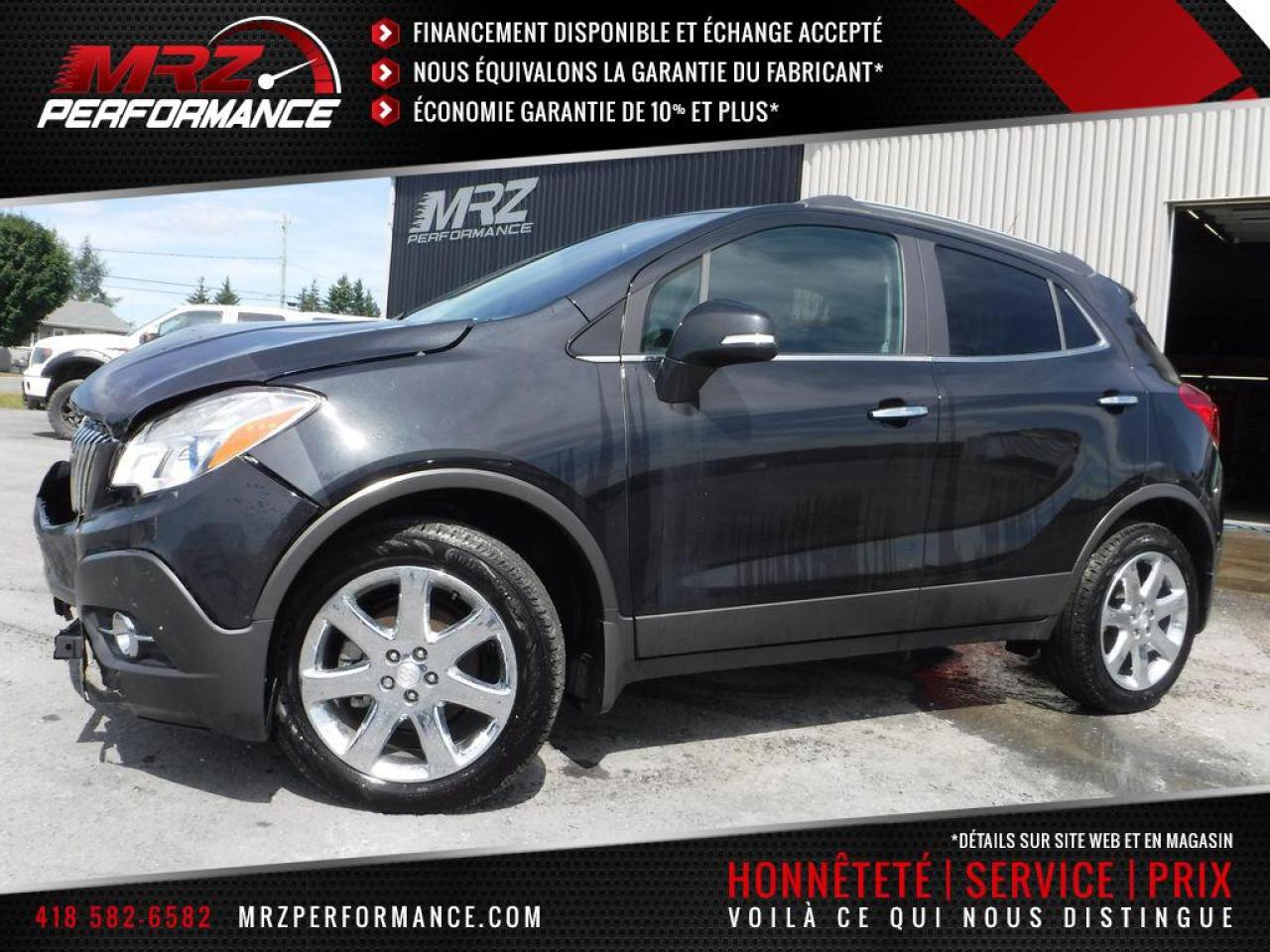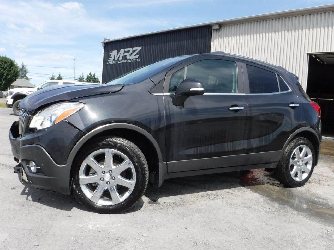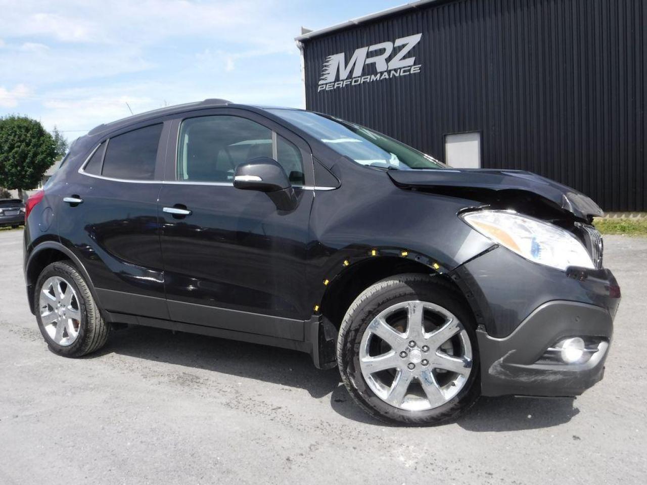 ** VÉHICULE EN RÉPARATION, DISPONIBLE SOUS PEU** DISPONIBILITÉ ET PRIX A CONFIRMER LORS DE LA MISE EN VENTE A L'ÉTAT RÉPARÉ ** Buick Encore Edition Premium AWD 2016 Noir métallique avec intérieur en cuir noir - Tout équipé avec le Cuir, Toit, GPS et j'en passe!! Flambant neuf avec Seulement 1904 km au compteur!! Impossible de trouver meilleur qualité prix chez la concurrence!! Beau petit vus de luxe à ne pas manquer. Faites vite ils s'envolent comme des petits pains chauds!! Encore une fois les plus beaux véhicules sont chez Automobiles Mrz!!! - * Visitez le WWW.MRZPERFORMANCE.COM pour tous les détails et beaucoup plus de photos! * - Beau Look! Moteur 4 Cyl ECOTEC de 1.4l turbo avec transmission automatique à 6 rapports, Vraiment très économique!! - Traction intégrale ( AWD ) - État neuf!! Seulement 1904 km! Full équip : Superbe Mags 18'' chrome avec Pneus Continental flambants neufs!! - Intérieur en cuir noir - Sièges électriques et chauffants - Caméra de recul - Volant chauffant - Toit ouvrant - Miroirs électriques et chauffants - Lecteur CD/MP3 - Commandes au volant - Prise 12V/120V - Prise USB - Bluetooth - Cruise control - Vitres électriques - Système audio BOSE avec sub - Fog lights - Intellink - Wiper intermittent - 1X Clé intelligente avec démarreur OEM - ONSTAR - Radio XM - A/C dual zones - Automatique avec mode manuel - Rack toit - Vitres teintées - Aileron - Blind spot alert - Système navigation GPS avec grosse écran tactile - Cache bagage - Collision alert - Lane départ - Garde boue - Sensor de recul - Chauffe moteur - ETC!! - Véhicule accidenté légèrement, réparé par des professionnels et inspecté par la SAAQ. LIVRÉ AVEC NOTRE NOUVEAU PROGRAMME DE GARANTIE - Nous sommes fier de notre travail et CE VÉHICULE SERA IMPECCABLE à tout point de vue!! - Reconstruit/Rebuilt title - Véhicule Canadien - CONDITION SHOWROOM!!! FLAMBANT NEUF AVEC SEULEMENT 1904 KM AU COMPTEUR!! Une véritable aubaine signée Automobiles Mrz!! Valeur neuf de plus de 40 000$ sur la feuille de vitre GM!! Faites-vite, ce véhicule ne restera pas longtemps dans notre cour!! ** PLUSIEURS AUTRES PETITS VUS ET CAMIONETTES EN STOCK!! Pour plus d'information allez visiter notre site internet! - N'hésitez pas à nous rejoindre avec vos questions. Automobiles MRZ, la référence dans l'accidenté léger au Québec! WE SPEAK ENGLISH PLEASE CONTACT US - MRZ IS THE VEHICLE CAR EXPORT - USA - AFRICA - MIDDLE EAST - EUROPE - MRZ EST LE SPÉCIALISTE EN EXPORTATION et IMPORTATION DE VÉHICULES - USA - AFRIQUE - EUROPE - PROCHE ORIENT Visitez-nous aussi sur Facebook! Merci!
