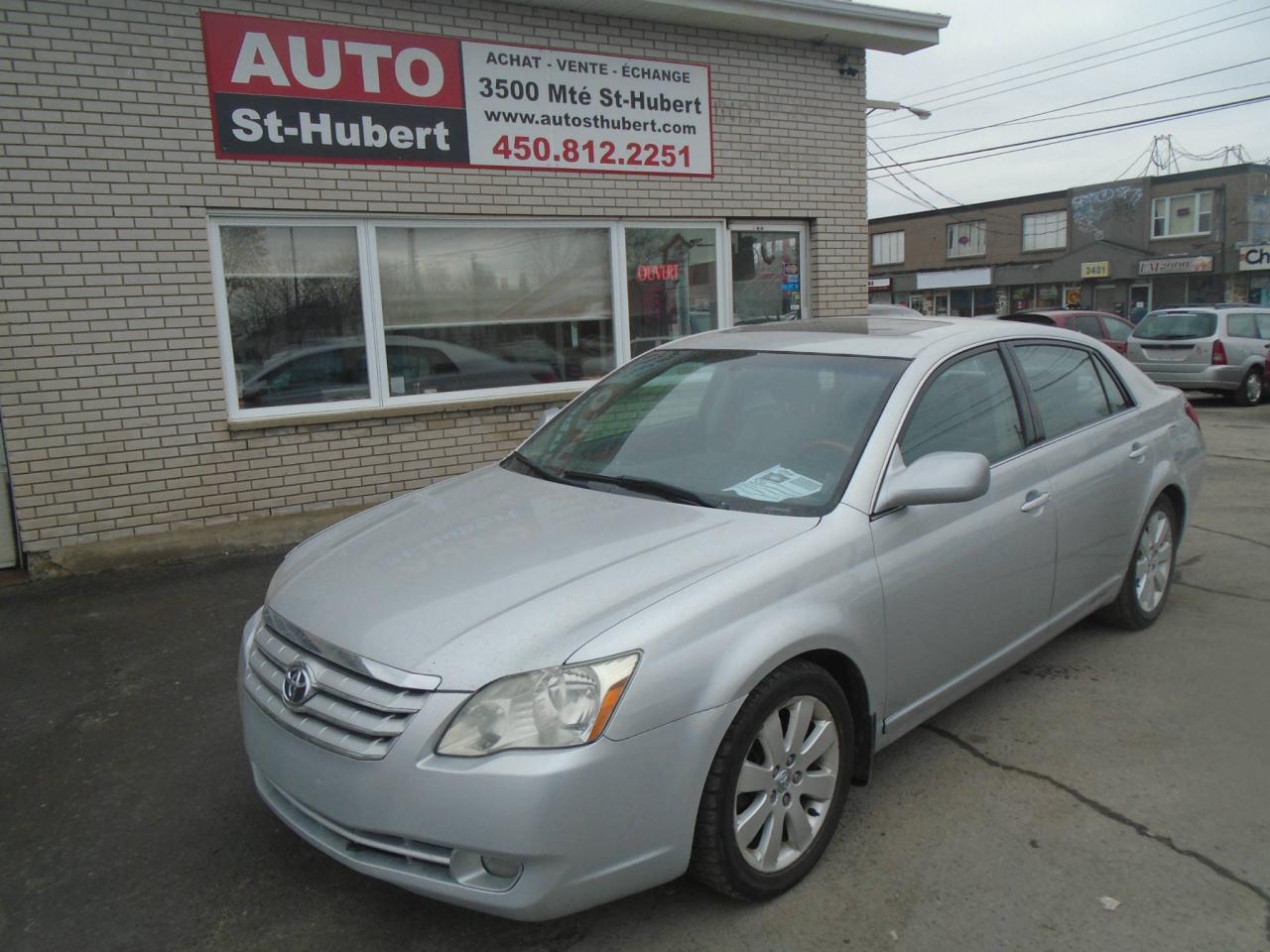 VÉHICULE SITUÉ AU 3500 MONTÉE ST-HUBERT, SAINT-HUBERT, J3Y4J5, 450-812-2251. TOYOTA AVALON XLS LIMITED 2006, TRANSMISSION AUTOMATIQUE, 198 000 KM, MOTEUR V6 DE 3.5L FIABLE ET ROBUSTE. VÉHICULE LUXUEUX TOUT ÉQUIPÉ AVEC GROUPE ÉLECTRIQUES COMPLET, AIR CLIMATISÉ ET CHAUFFAGE AUTOMATIQUE A DEUX ZONES, NAVIGATION/GPS, TOIT OUVRANT, INTÉRIEUR EN CUIR, CRUISE CONTROL, VOLANT MULTIFONCTIONS ET INCLINABLE, ÉCRAN CENTRALE MULTIFONCTIONS AVEC RADIO AM/FM/CD, SIÈGES AVANTS A RÉGLAGE ÉLECTRIQUE AVEC MÉMOIRE DE POSITION, ORDINATEUR DE BORD, DÉMARREUR A DISTANCE, BIEN CHAUSSÉ SUR 4 BONS PNEUS MONTÉS SUR MAGS D'ORIGINE , PHARES ANTIBROUILLARD, VITRES TEINTÉS ET BIEN PLUS!!