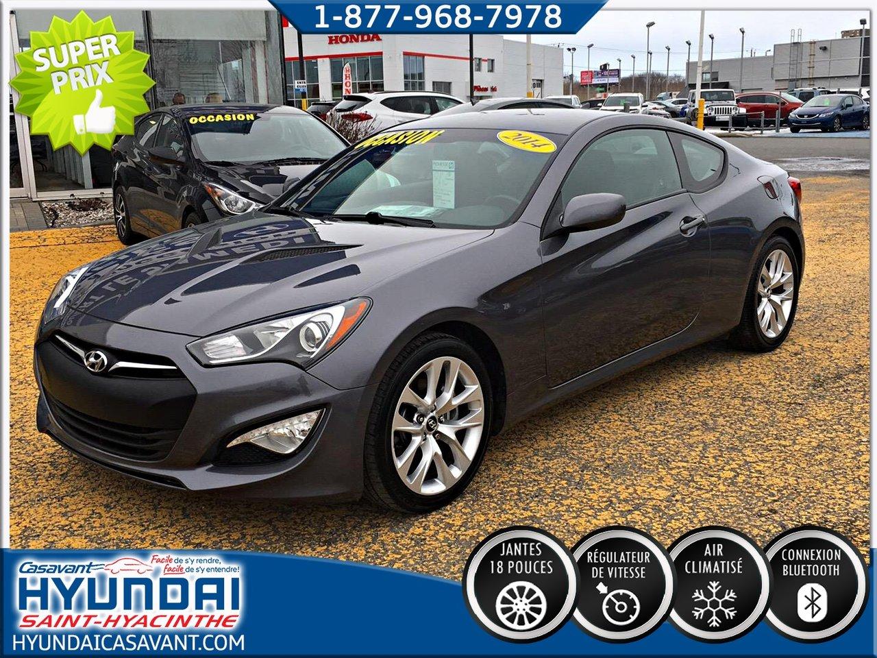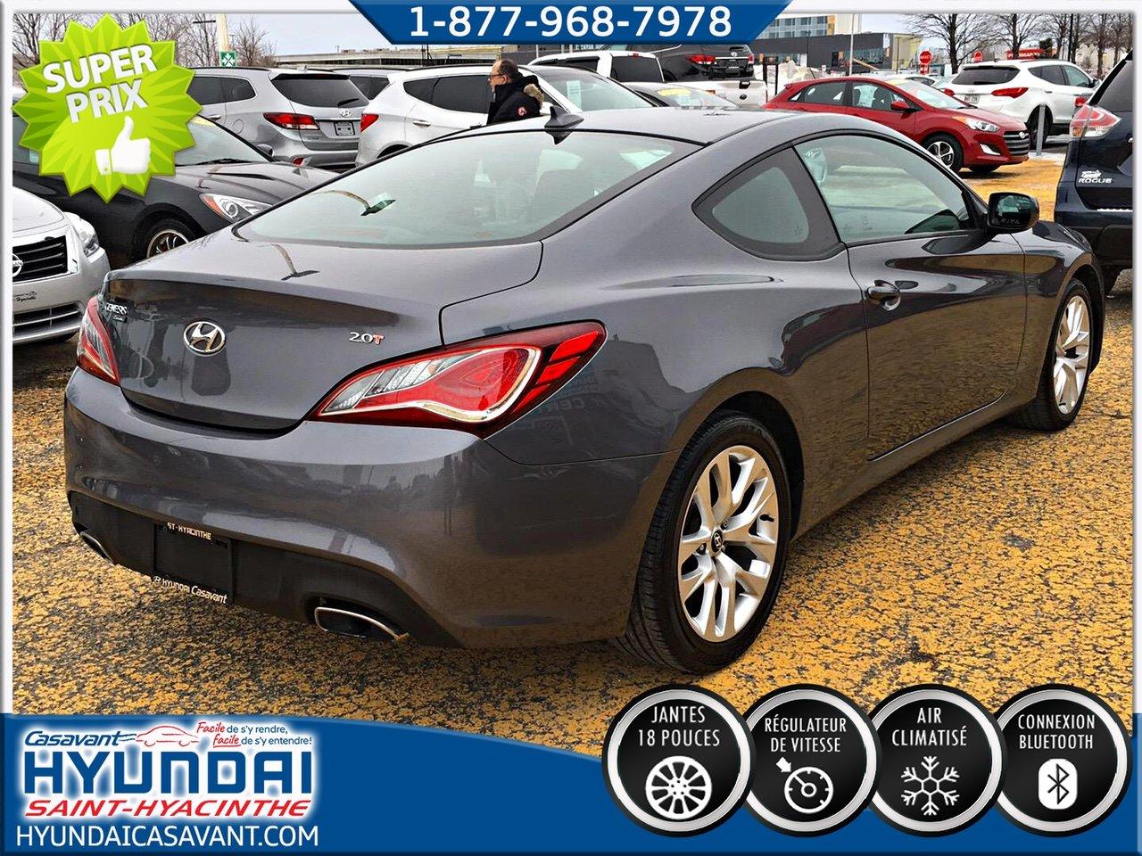 Hyundai Genesis Coup? 2.0 L turbo ** Super belle voiture ** Jamais accident?, un seul propri?taire 2014Régulateur de vitesse, Essuie-glaces intermittents, Freins ABS, Contrôle de stabilité, Coussin gonflable conducteur, Coussins gonflables latéraux, Lecteur CD, Lecteur MP3, Portes électriques, Vitres électriques, Air climatisé, Commandes audio au volant, Sièges chauffants, Volant ajustable, Tapis protecteurs, Ordinateur de bord, Tout équipé, Volant gainé de cuir, Direction assistée, Télédéverrouillage, Rétroviseurs chauffants, Freins à disque, Rétroviseurs électriques, Jantes en alliage, Antipatinage, Phares antibrouillards, Sièges baquets, Prise Auxiliaire, Port USB