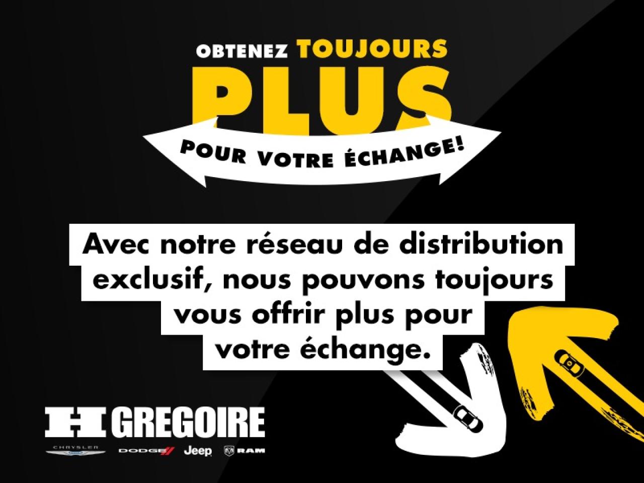Vaste inventaire de vehicules d'occasion au meilleur prix du marche. Recevez le MAXIMUM pour votre vehicule d'echange! Financement avec taux d'interet imbattable! Ouvert 7 jours. Pour plus d'informations sur cette voiture, passez nous voir ou visitez https://www.hgregoirechrysler.com/fr-stk/2904Z