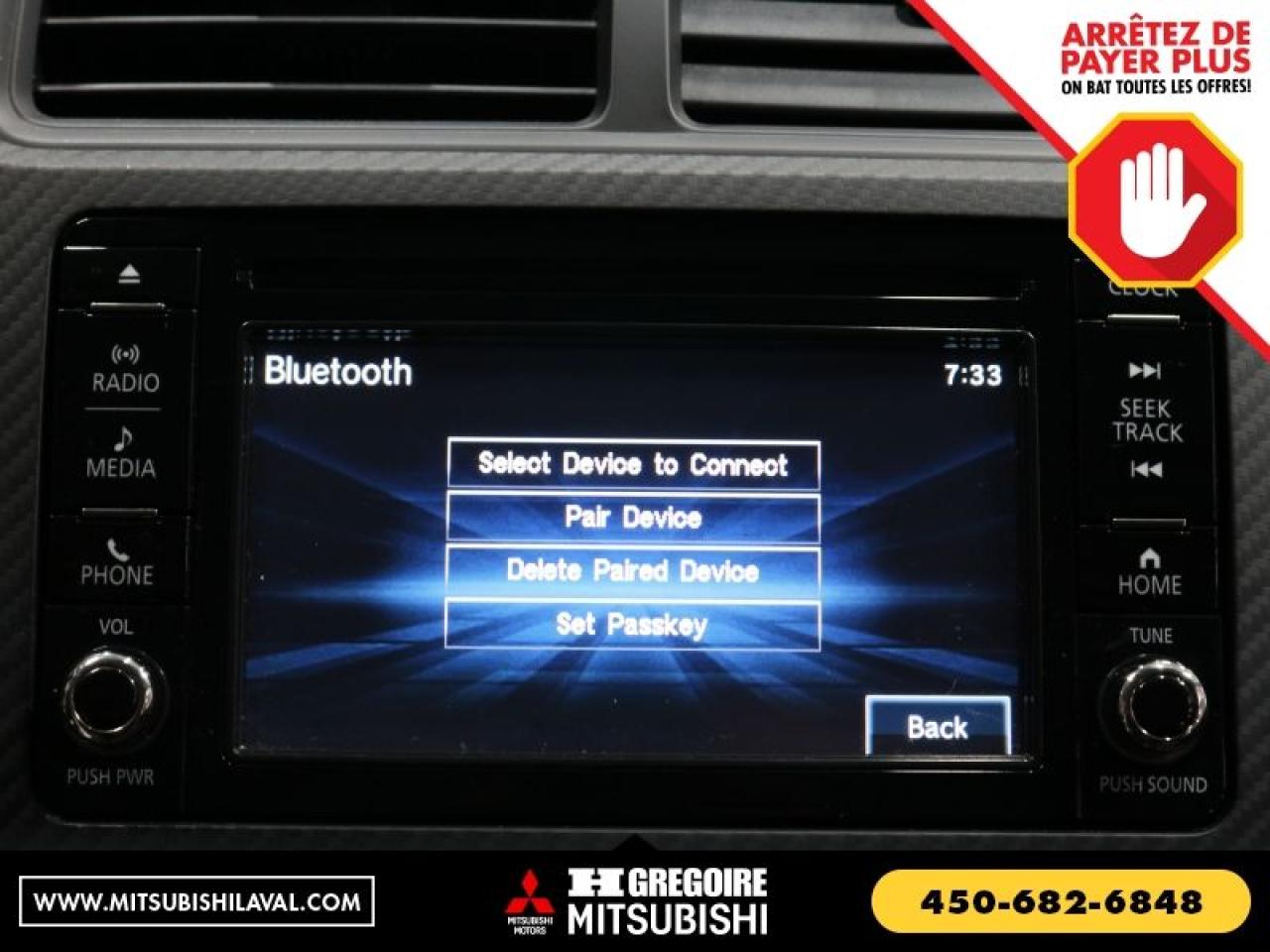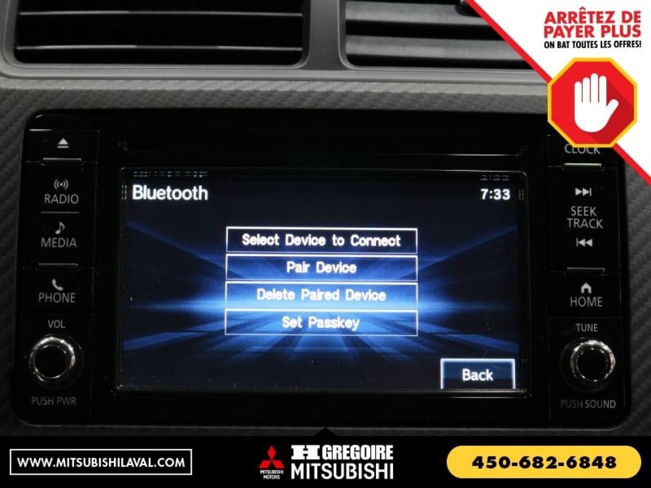 CERTIFIE Vaste inventaire de vehicules d'occasion au meilleur prix du marche. Recevez le MAXIMUM pour votre vehicule d'echange! Financement avec taux d'interet imbattable! Ouvert 7 jours. Pour plus d'informations sur cette voiture, passez nous voir ou visitez https://mitsubishilaval.com/fr-stk/MU0203